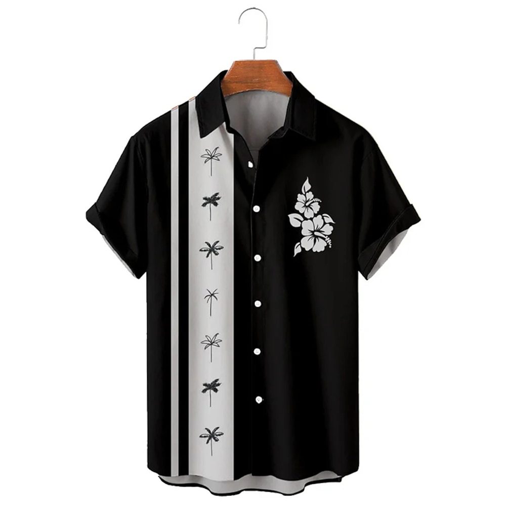 Baju bowling pria, baju kasual musim panas pola cetak lengan pendek liburan Harian