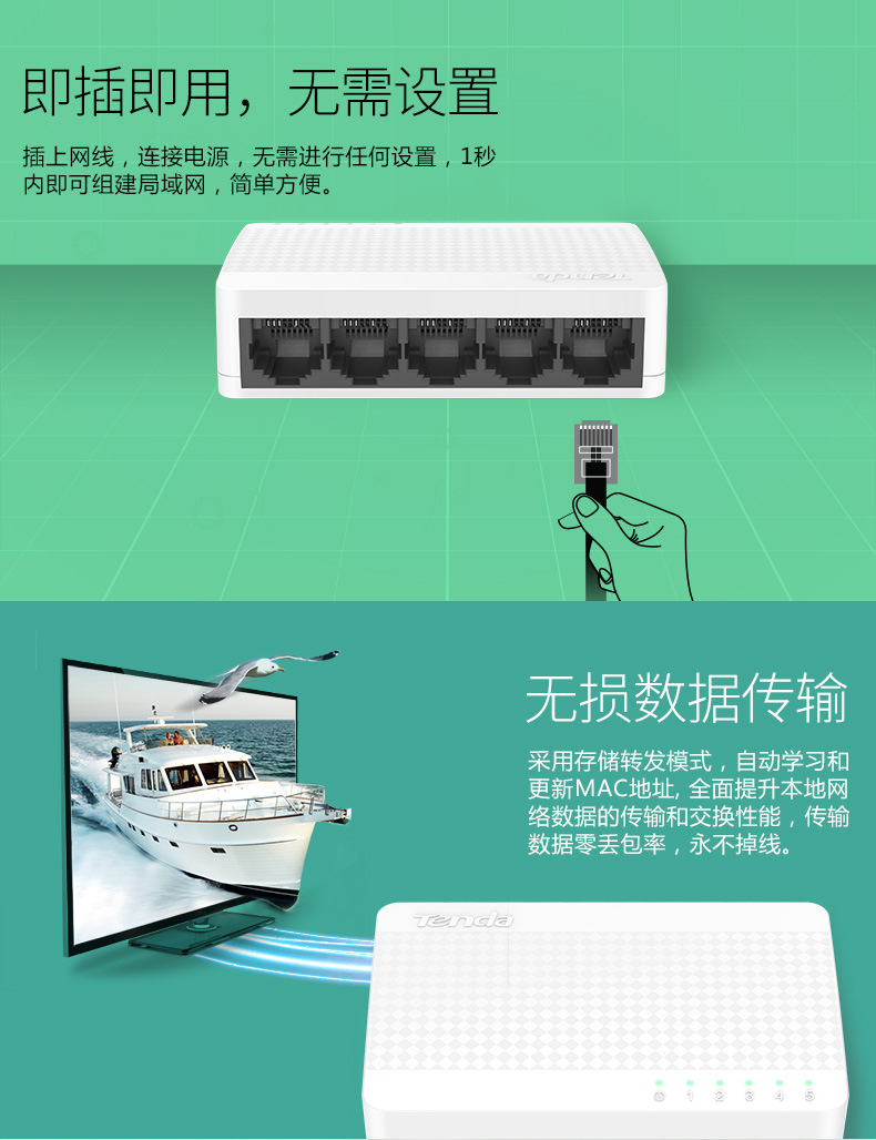 Tenda Tengda S105 network splitter 5-port 100M pemantauan khusus saklar broadband