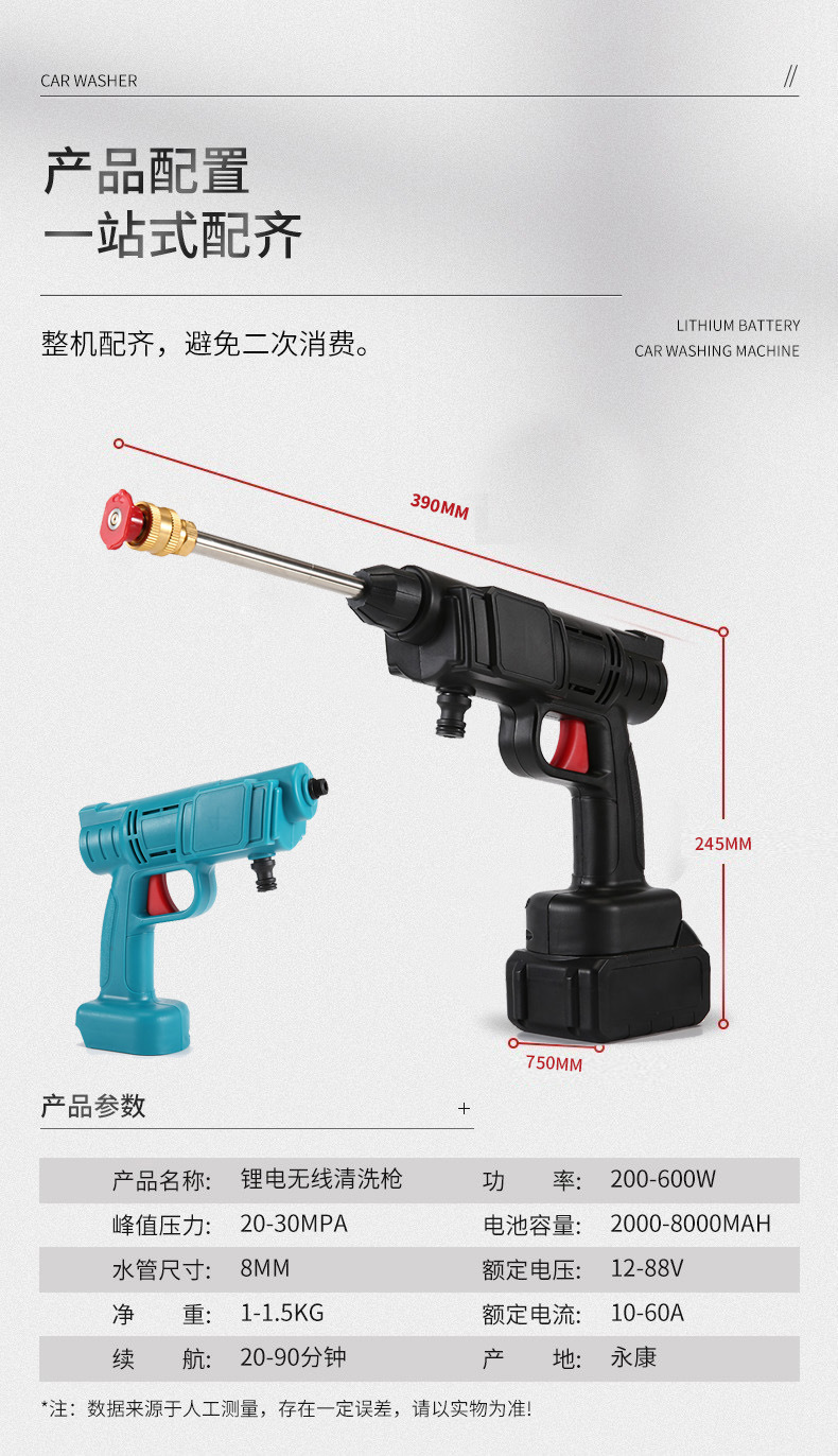 Pistol air cuci mobil, pistol air tekanan tinggi pembersihan nirkabel, pistol air cuci mobil, baterai lithium rumah tangga, pompa cuci mobil kuat, tekanan tinggi