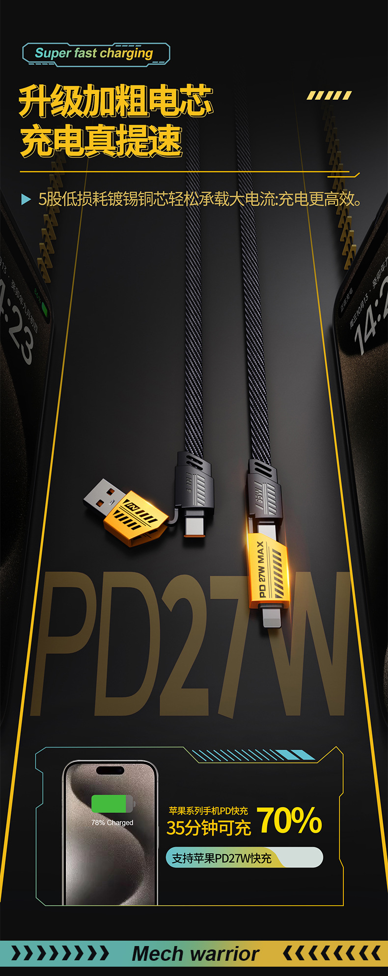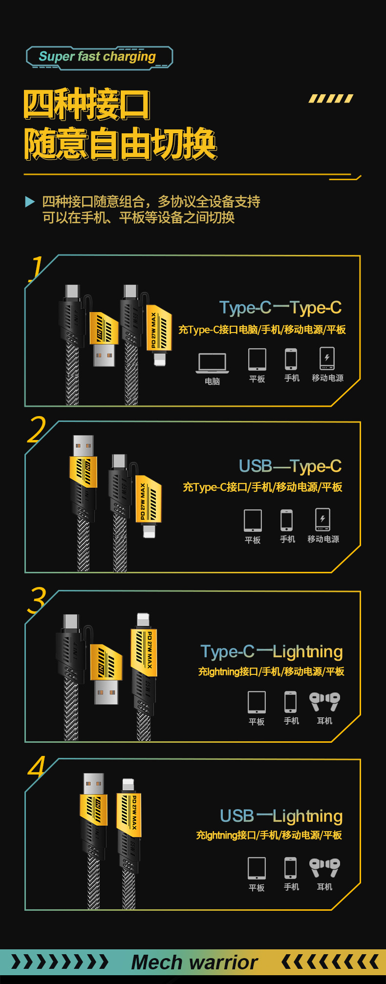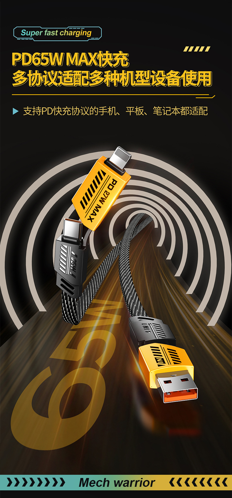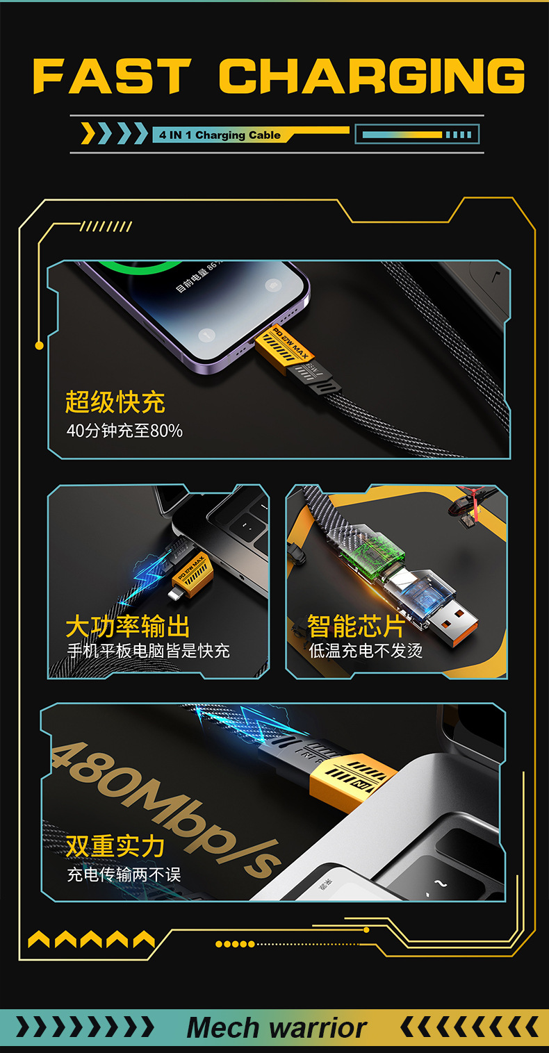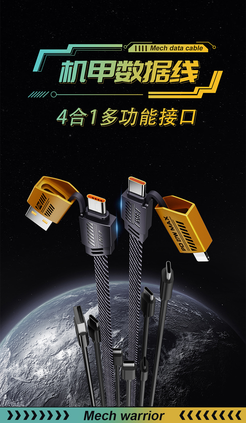 Kabel Data Mecha 4-in-1 untuk Huawei Apple 15PD Kabel Pengisian Super Cepat Ponsel Notebook