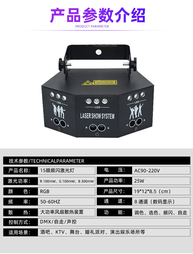15 Mata Lampu Laser Strobe Bar KTV Lampu Kabel Kamar Standar Panggung Klub Malam Flash Kontrol Suara Pabrik Grosir