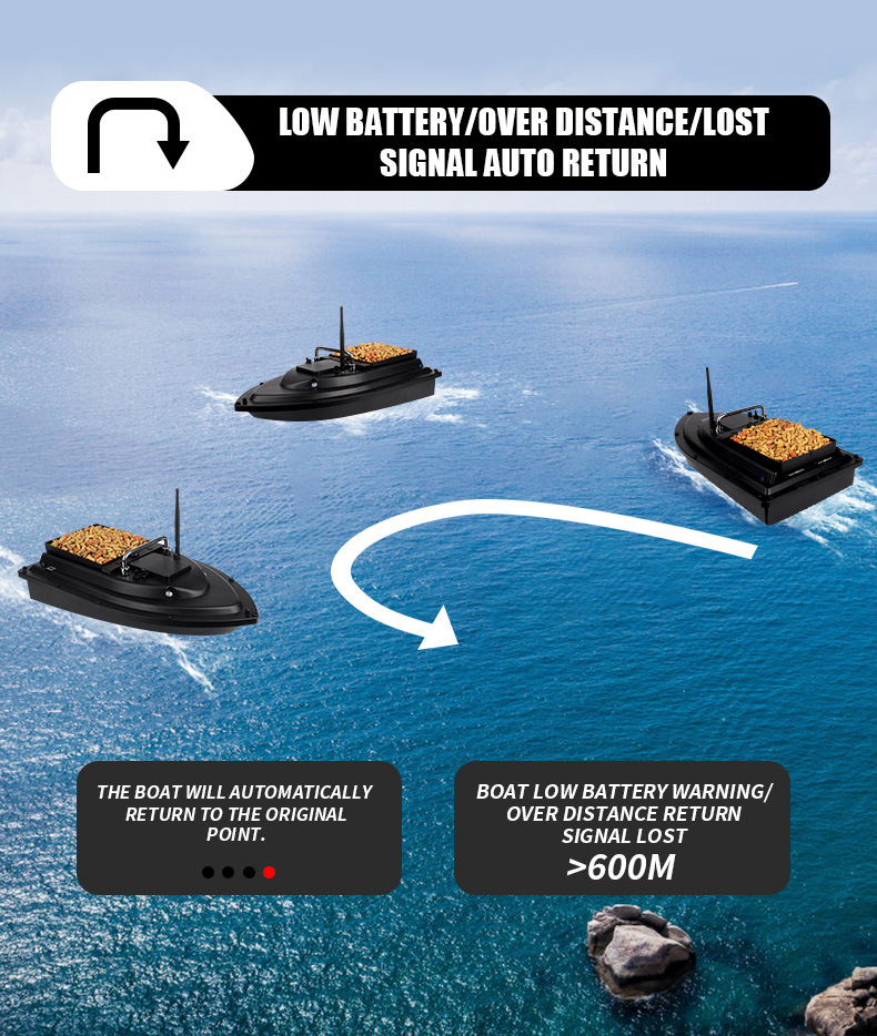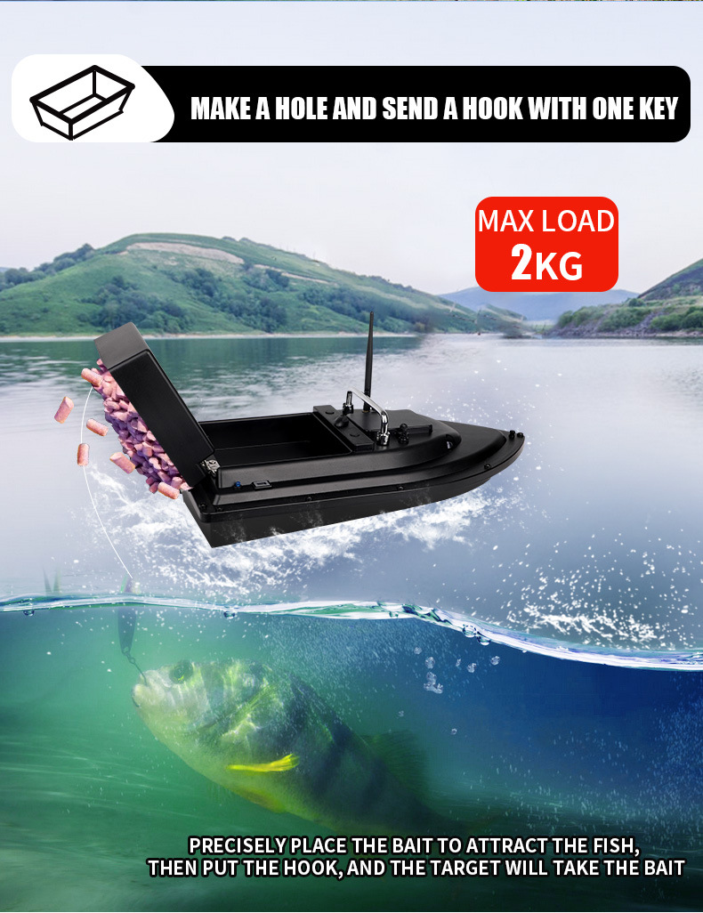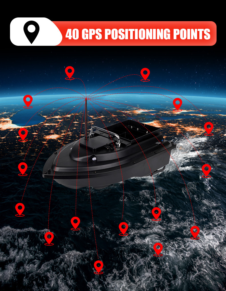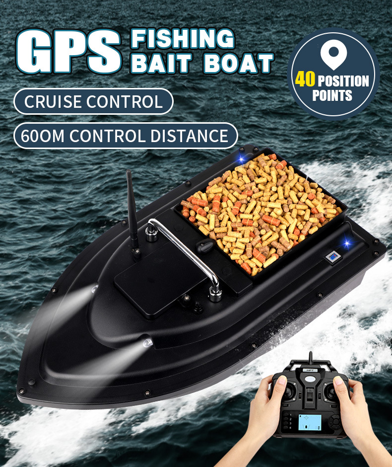Perahu pancing kendali jarak jauh cerdas dengan penentuan posisi GPS, pengembalian otomatis, dan pengiriman kail.