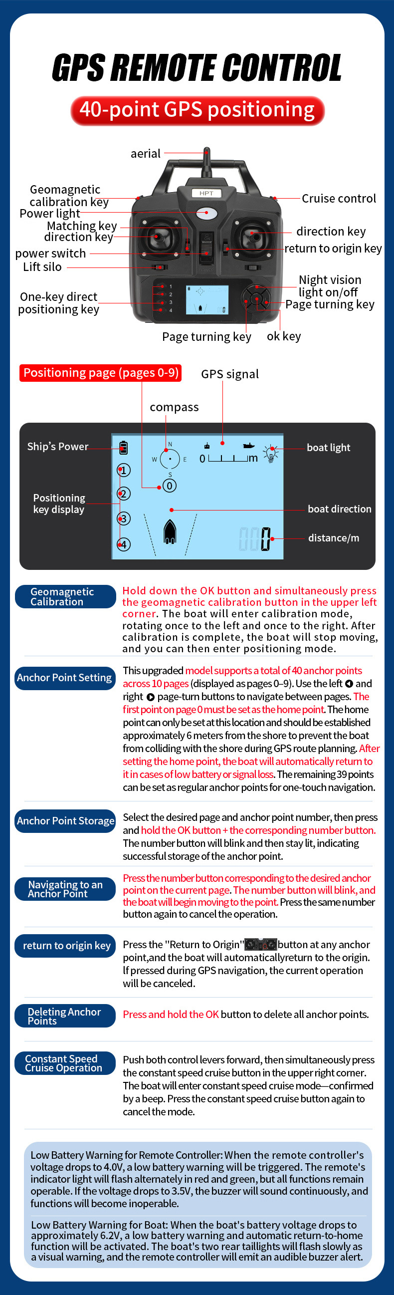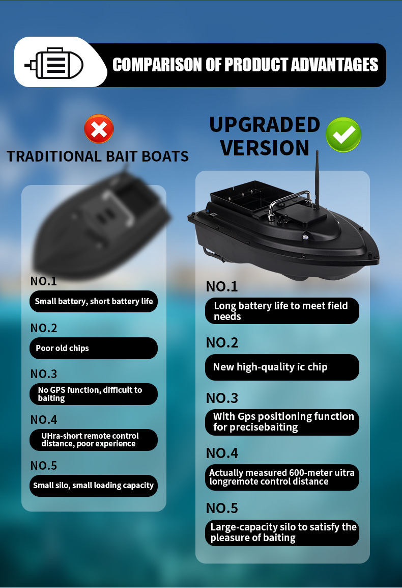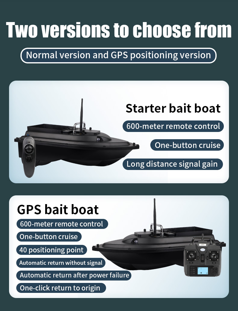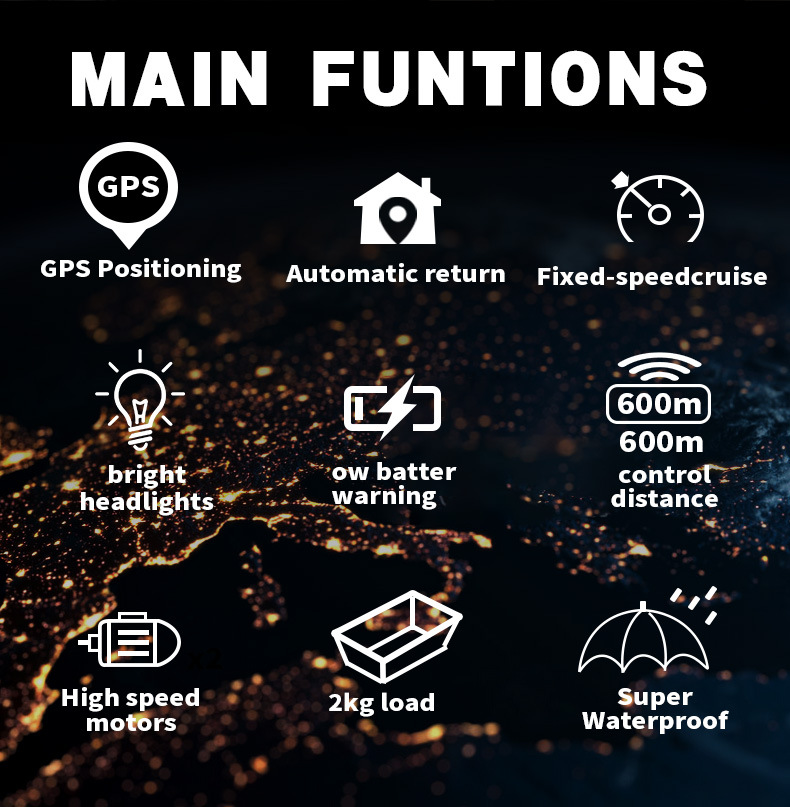 Perahu pancing kendali jarak jauh cerdas dengan penentuan posisi GPS, pengembalian otomatis, dan pengiriman kail.