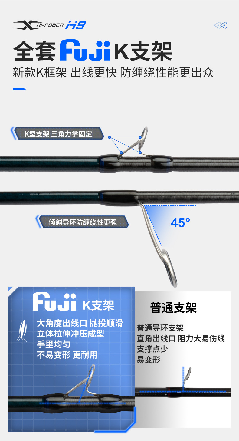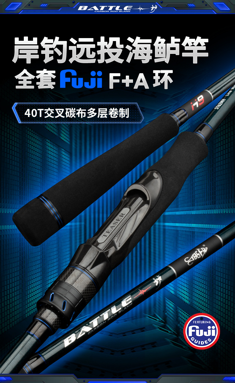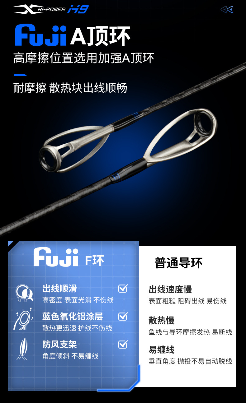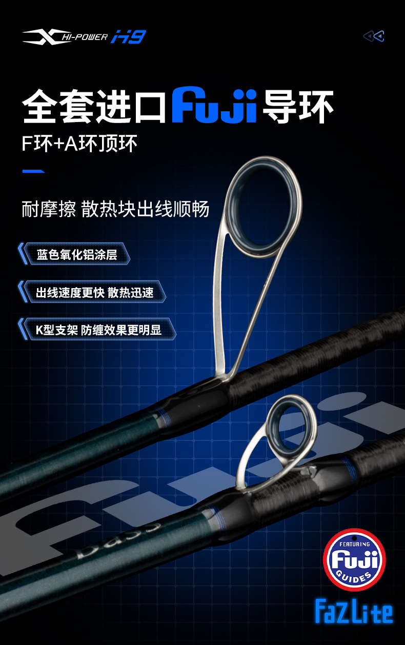 Ember picker H9 Luya joran panjang Fuji, tongkat pancing ikan bass laut pegangan lurus M, ML, MH, pancing laut melempar