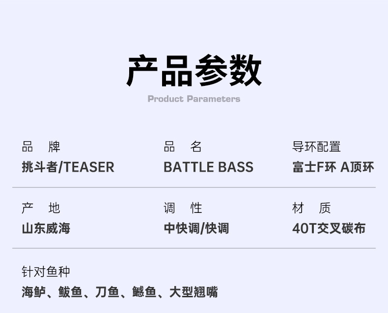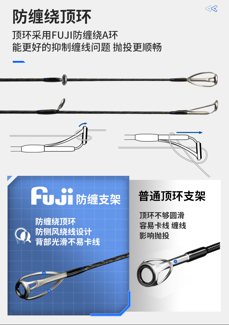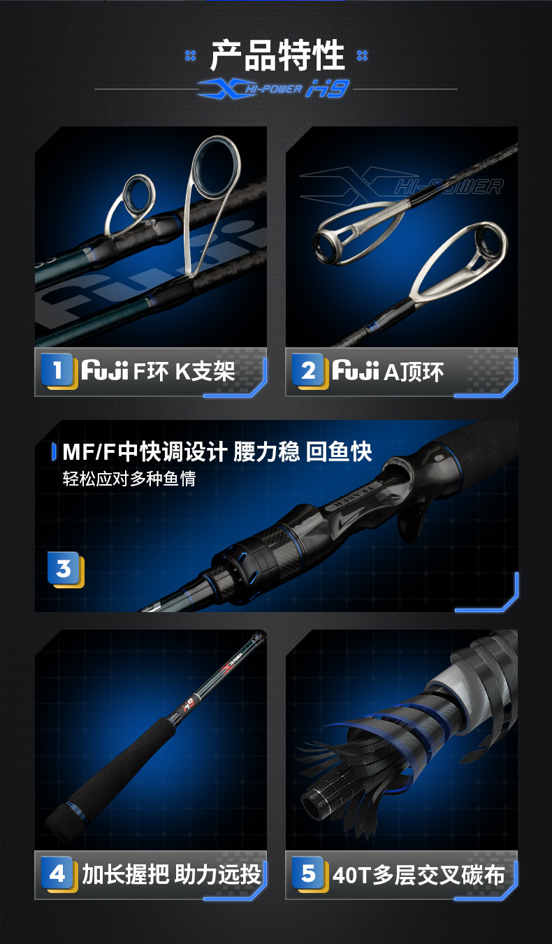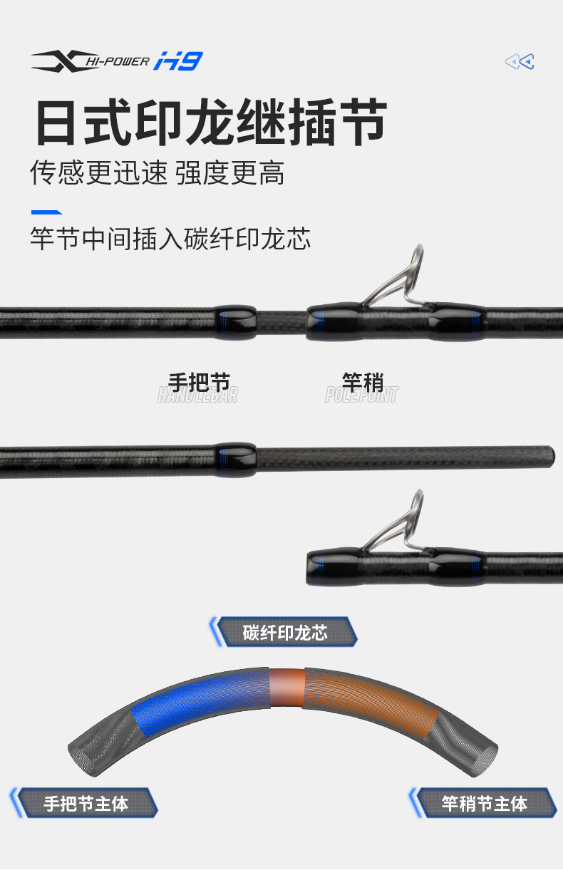 Ember picker H9 Luya joran panjang Fuji, tongkat pancing ikan bass laut pegangan lurus M, ML, MH, pancing laut melempar