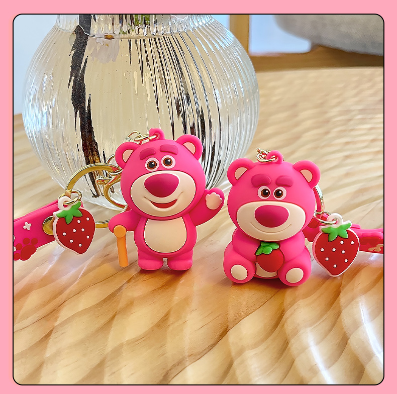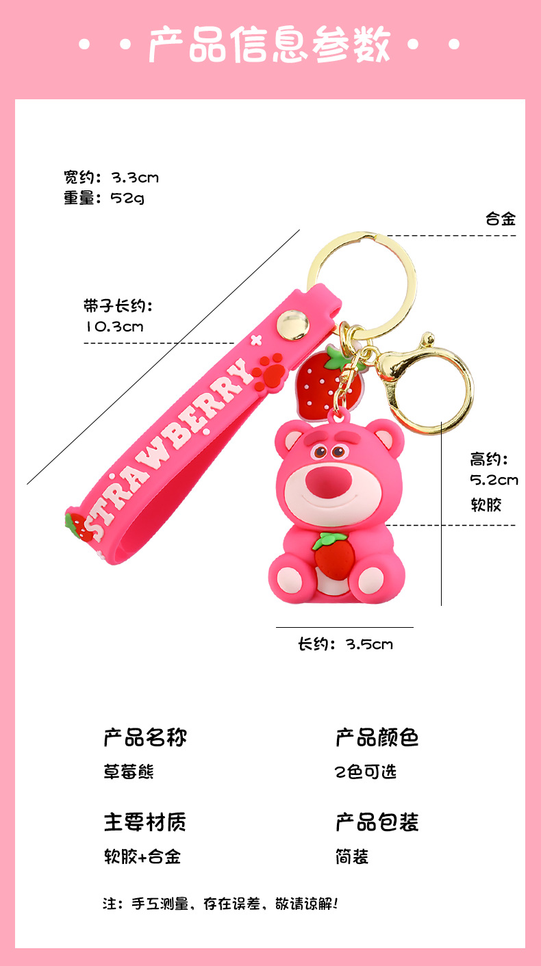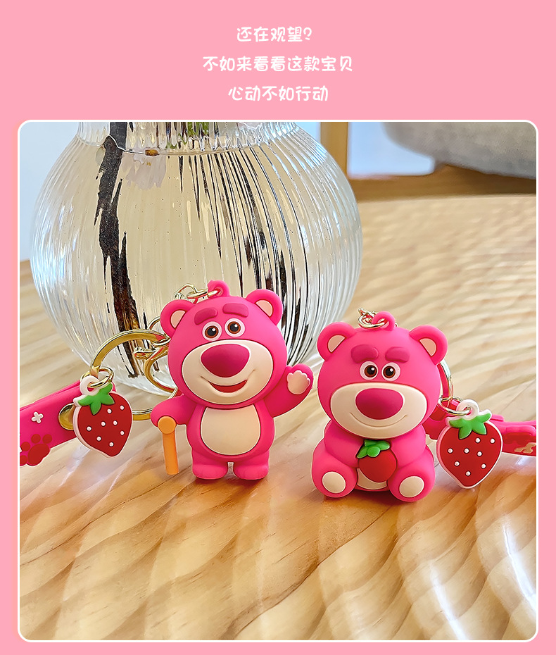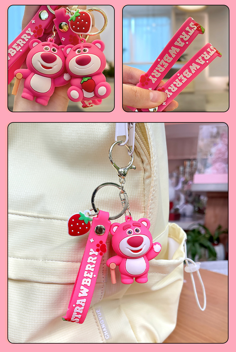 Gantungan kunci beruang merah muda lucu liontin kecil acara kreatif hadiah kecil gantungan kunci liontin tas sekolah gantungan kunci logam