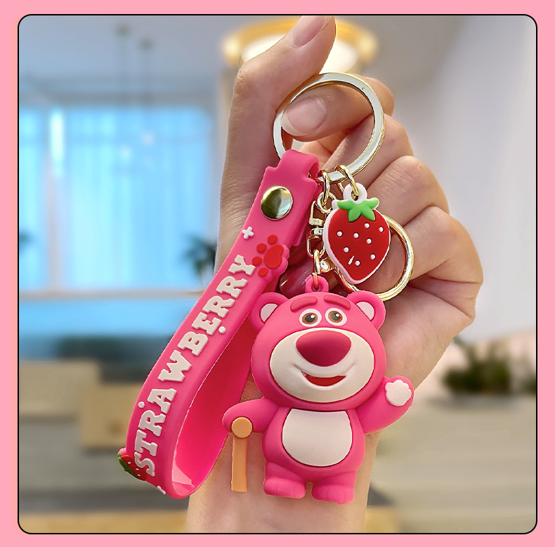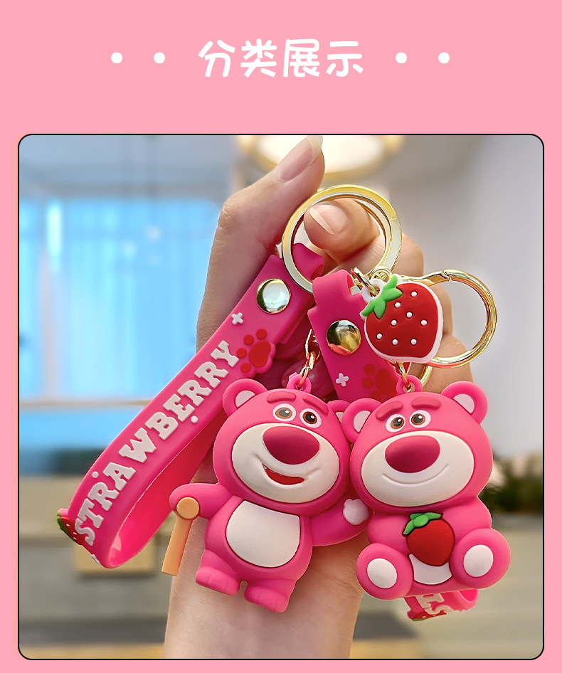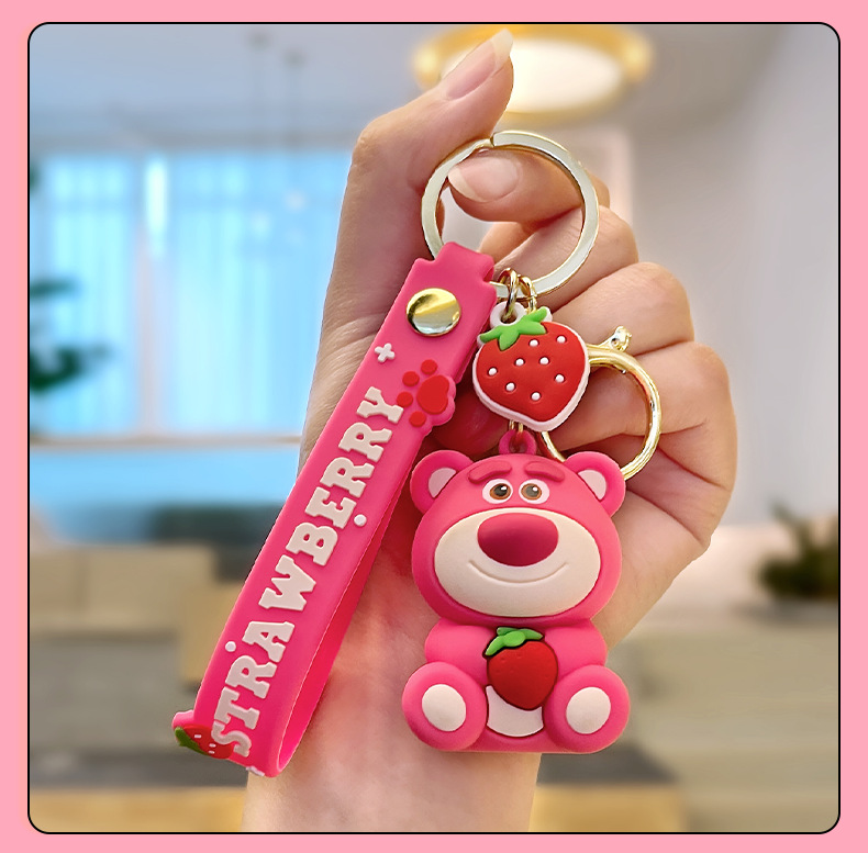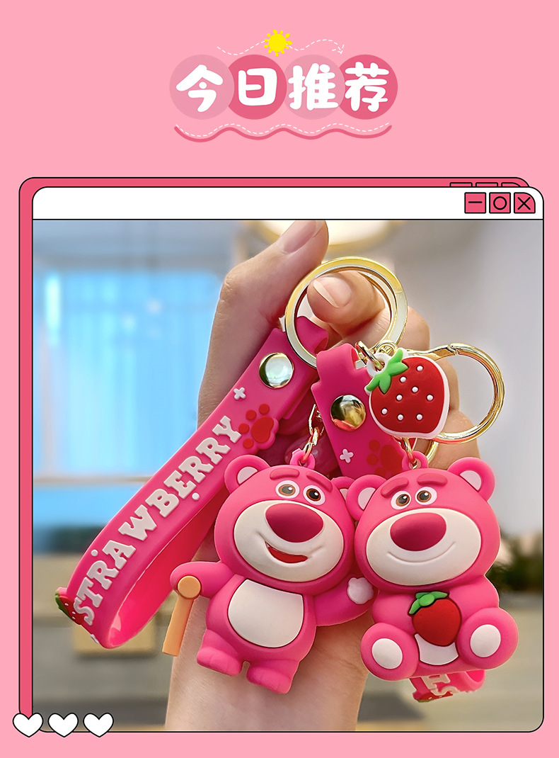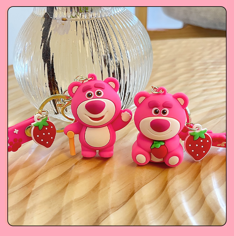 Gantungan kunci beruang merah muda lucu liontin kecil acara kreatif hadiah kecil gantungan kunci liontin tas sekolah gantungan kunci logam