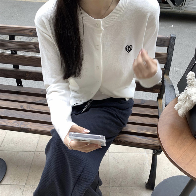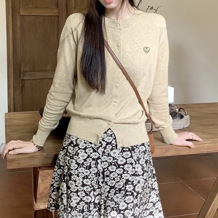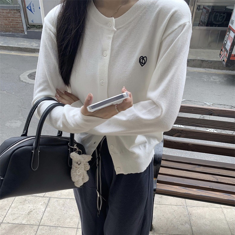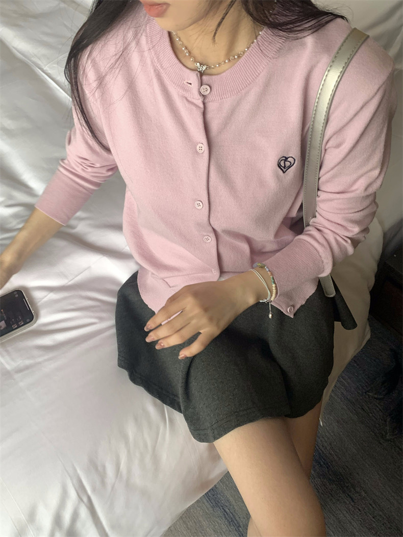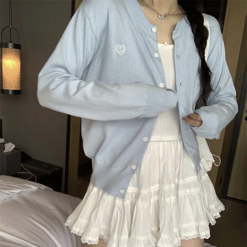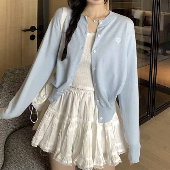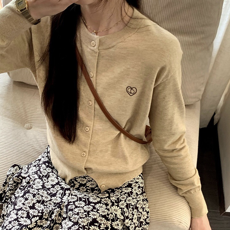 Kardigan rajut kerah bulat lembut bergaya Korea musim semi 2024 atasan tipis pengurang usia manis