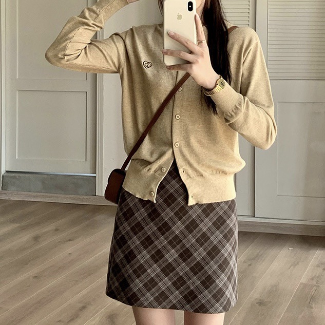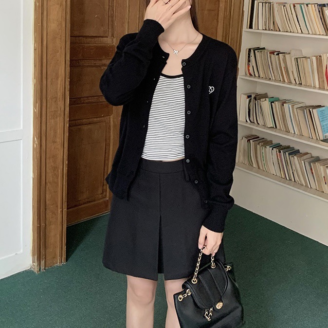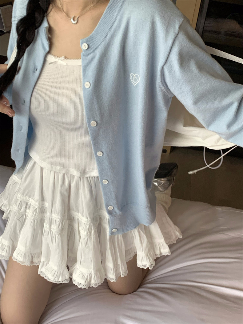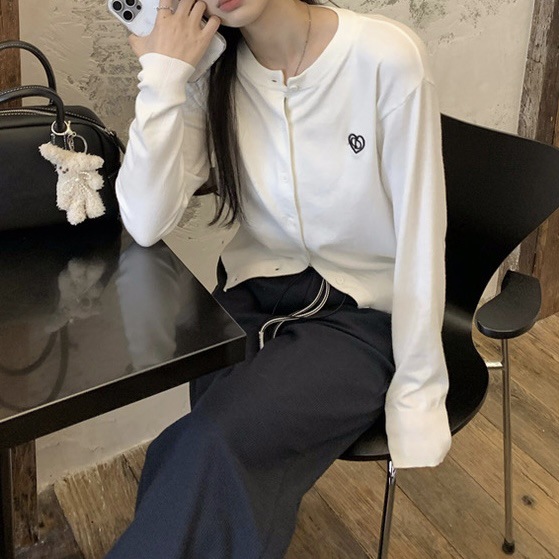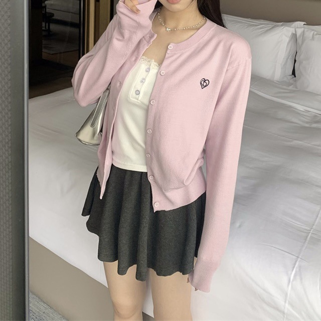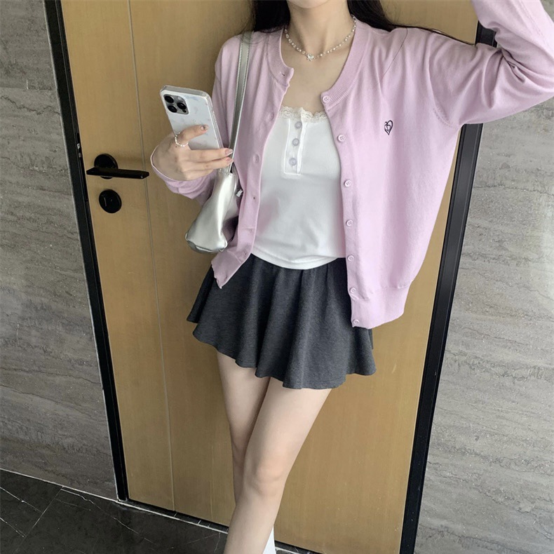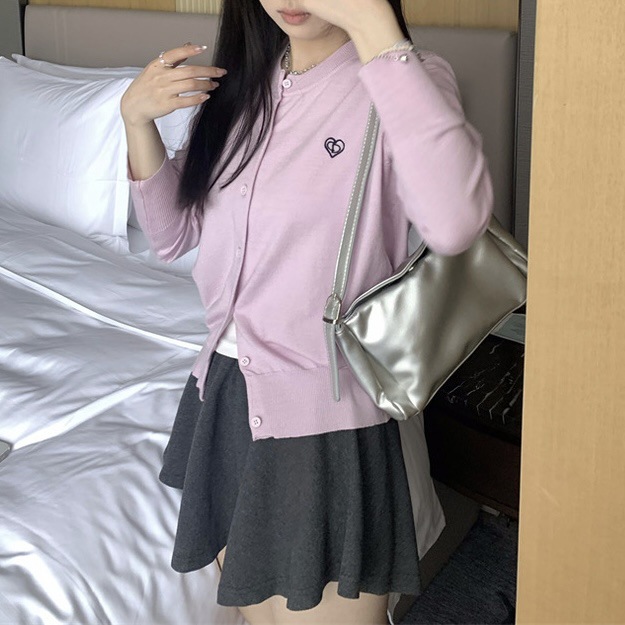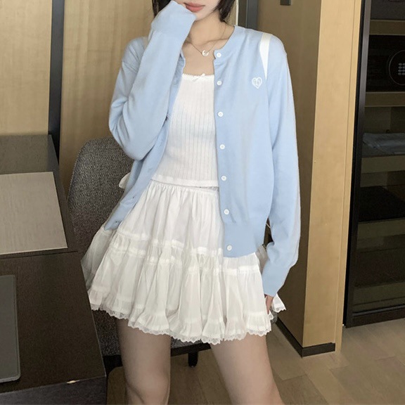 Kardigan rajut kerah bulat lembut bergaya Korea musim semi 2024 atasan tipis pengurang usia manis