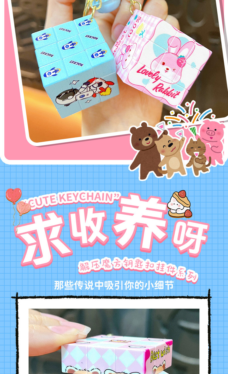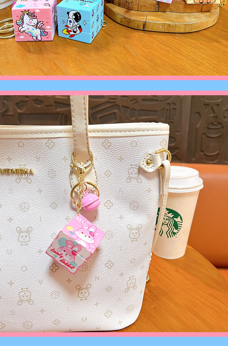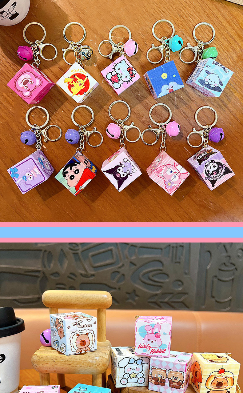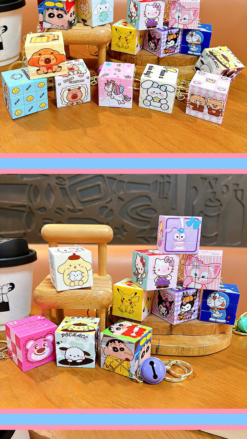 Coolomi liontin kubus Rubik, gantungan kunci tas sekolah liontin mainan edukasi kubus Rubik mini portabel