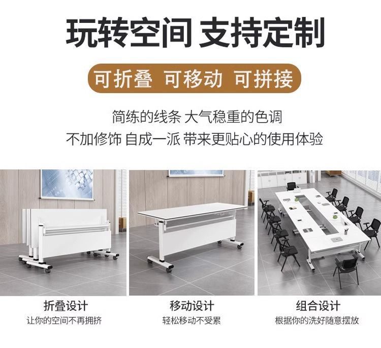 折叠会议桌可移动活动拼接长条桌双人办公桌子可折叠培训桌椅组