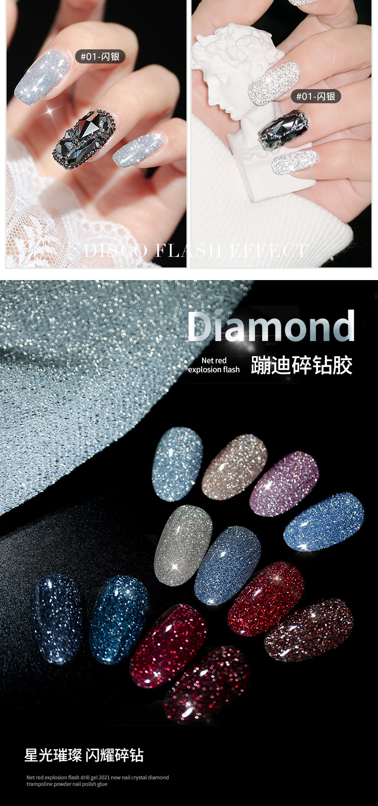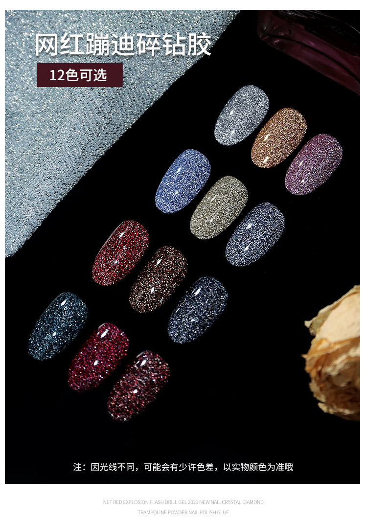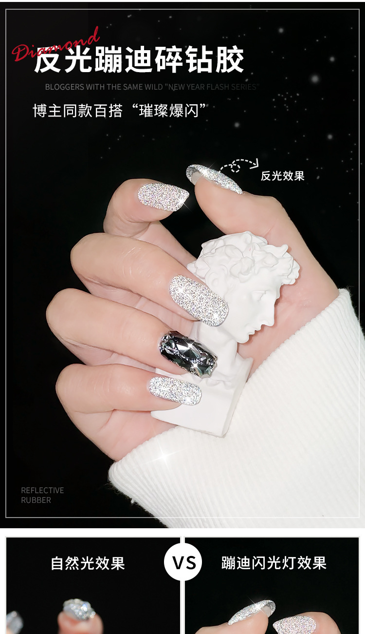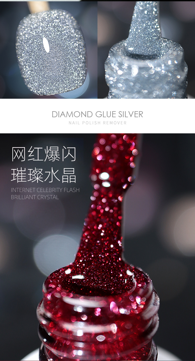 网红爆款碎钻甲油胶2025年新款反光蹦迪璀璨指甲油套装美甲店专用