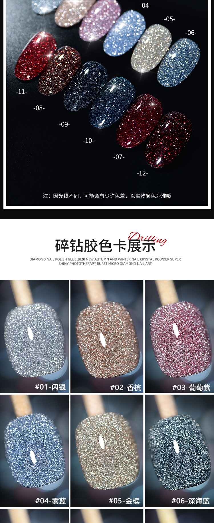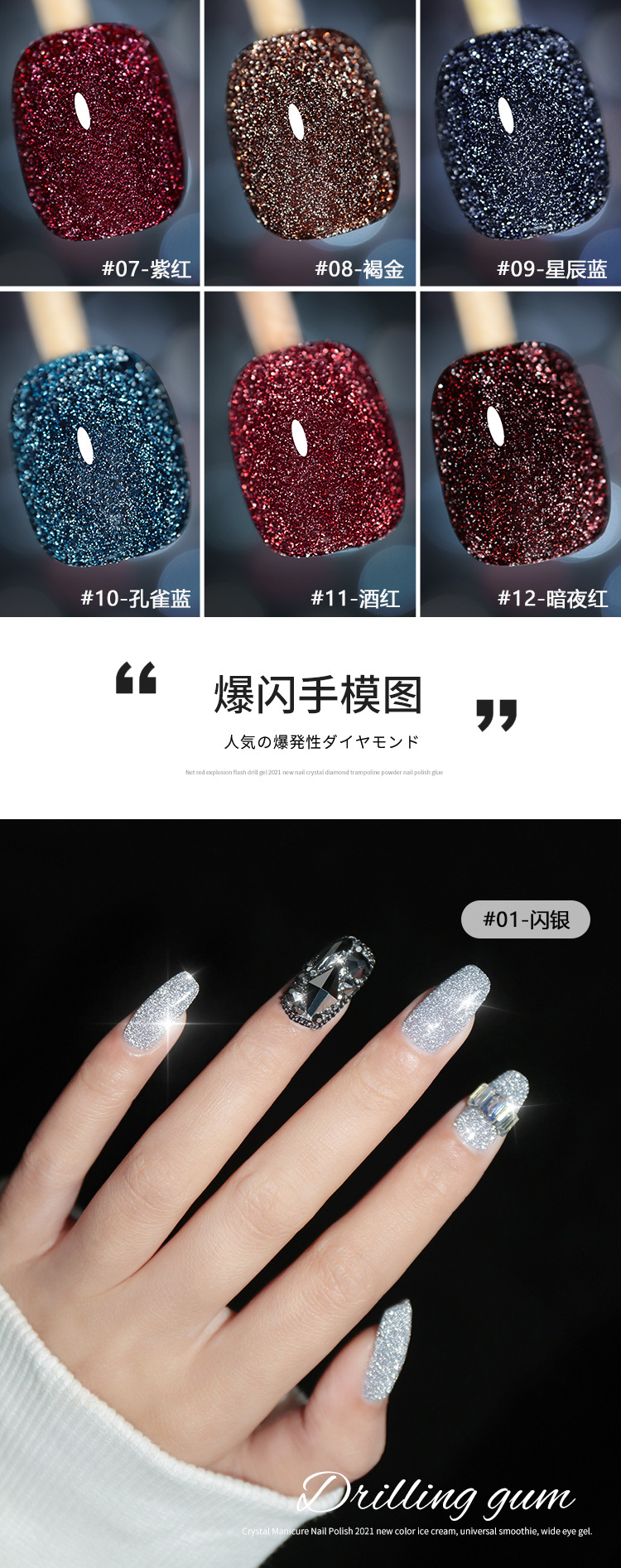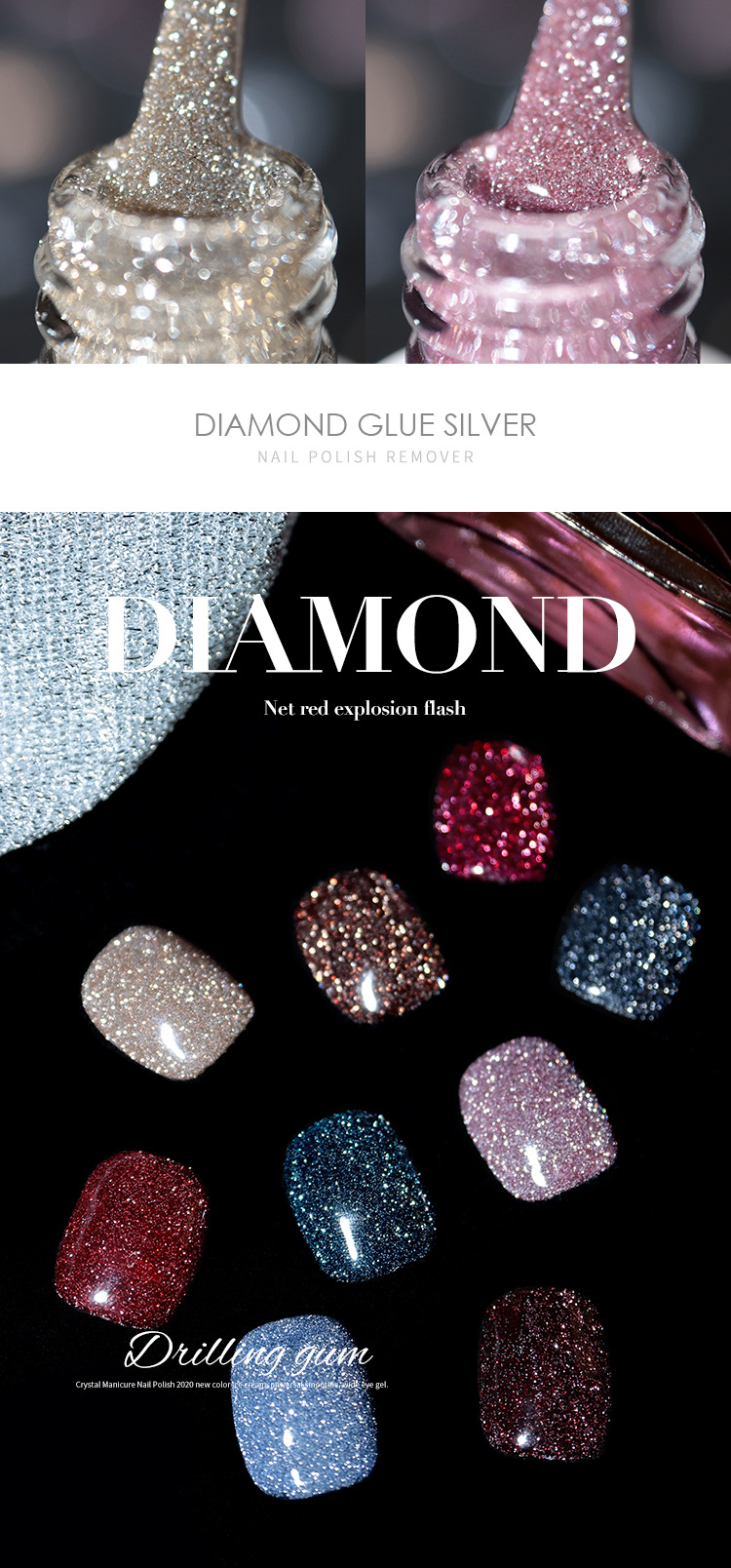 网红爆款碎钻甲油胶2025年新款反光蹦迪璀璨指甲油套装美甲店专用