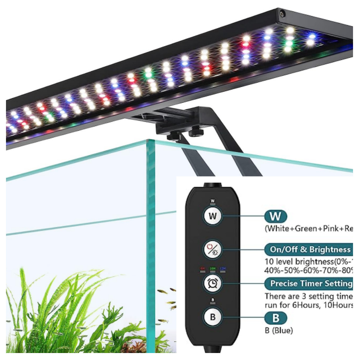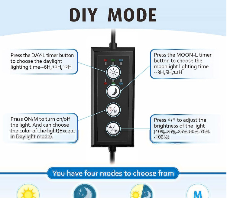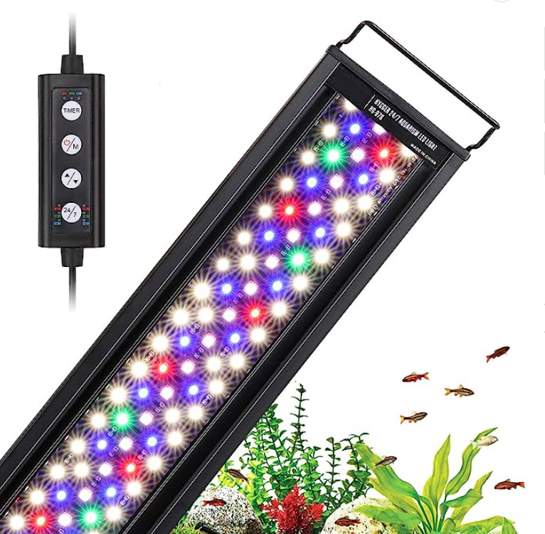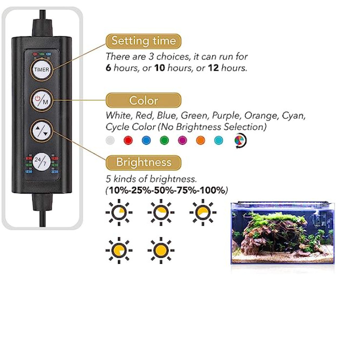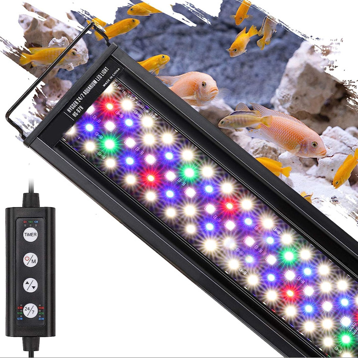 Lampu akuarium profesional, R & D dan produksi, Amazon lampu tangki ikan, lampu spektrum penuh, fungsi timer DIY