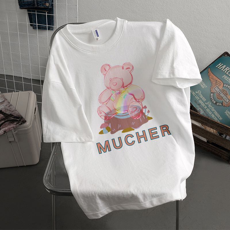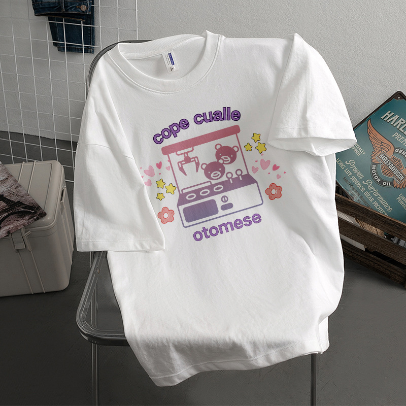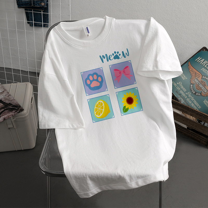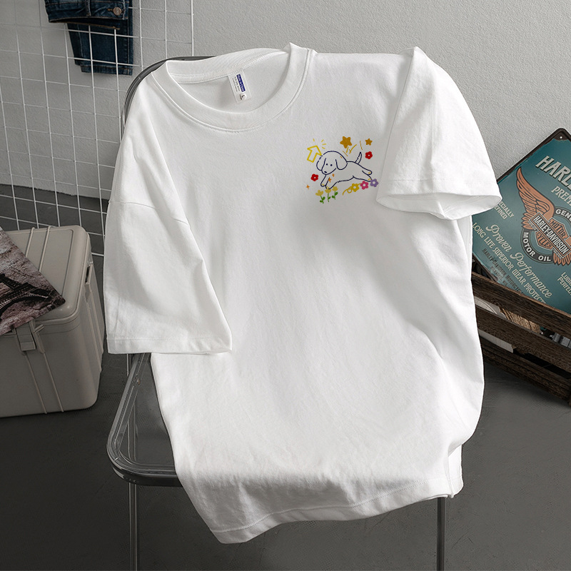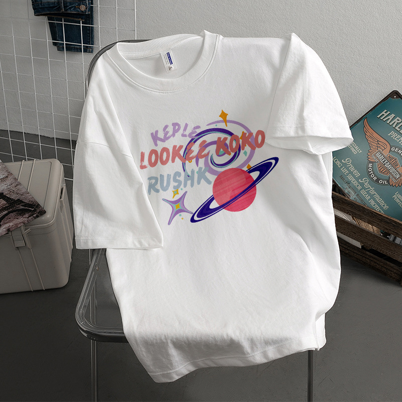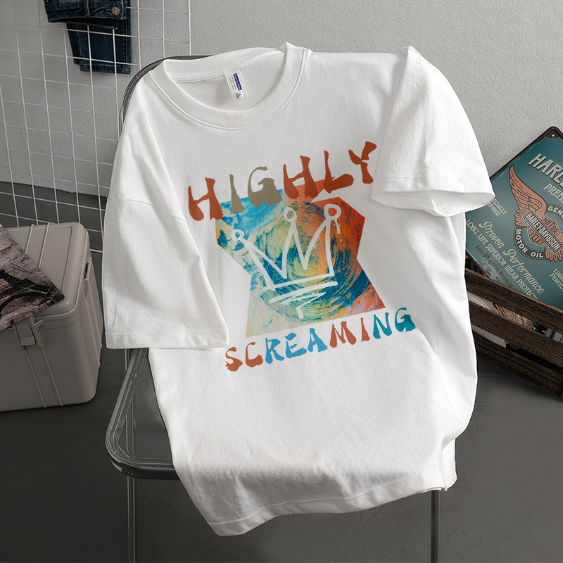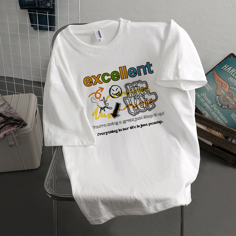 Kaus Lengan Pendek Bertekstur Katun Tulen Berat Model Baru Lintas Batas Musim Panas Atasan Pasangan Pasangan Cantik Chic Berkualitas Tinggi Retro Musim Panas
