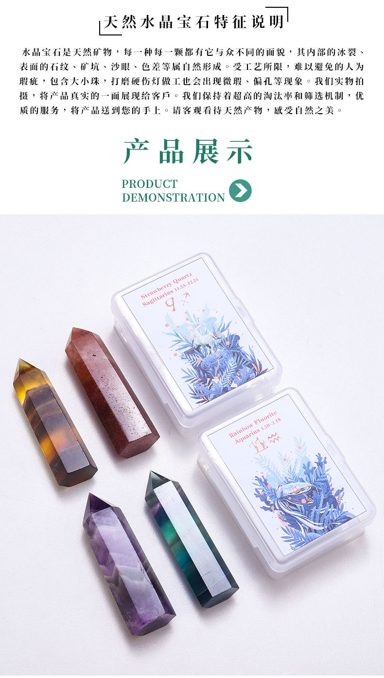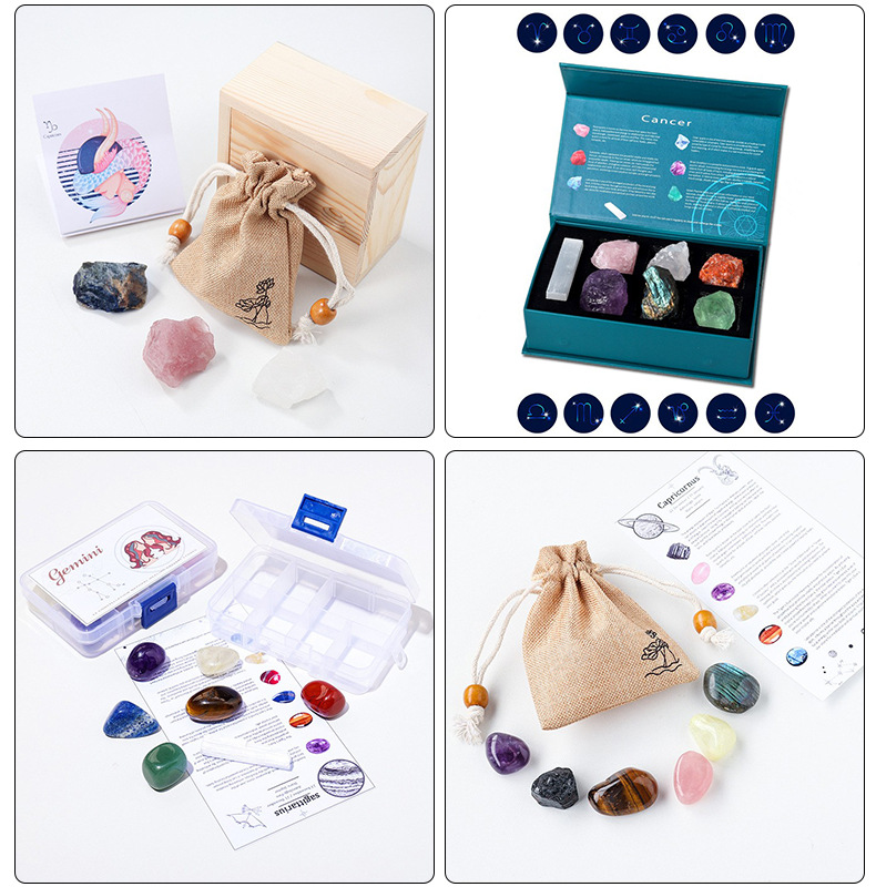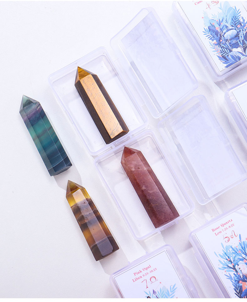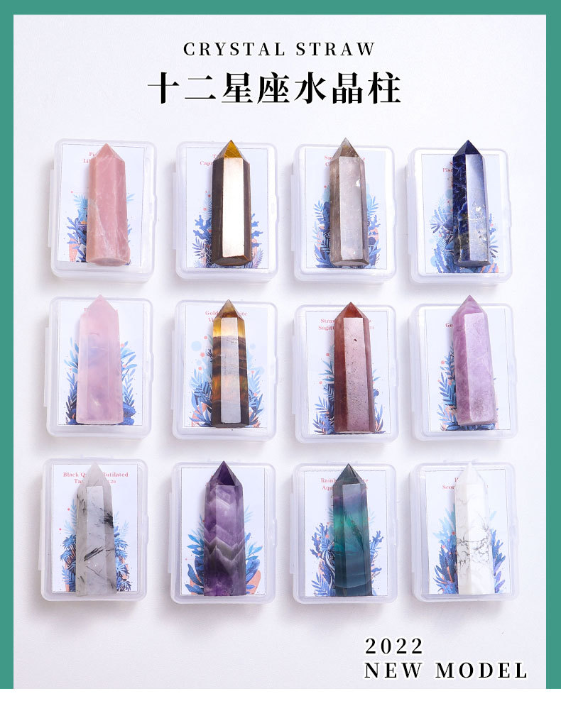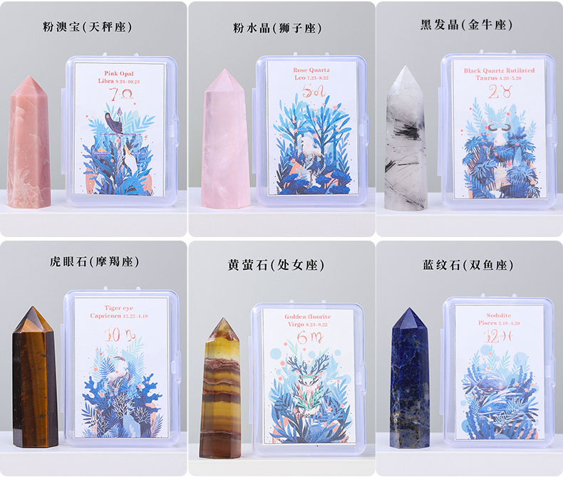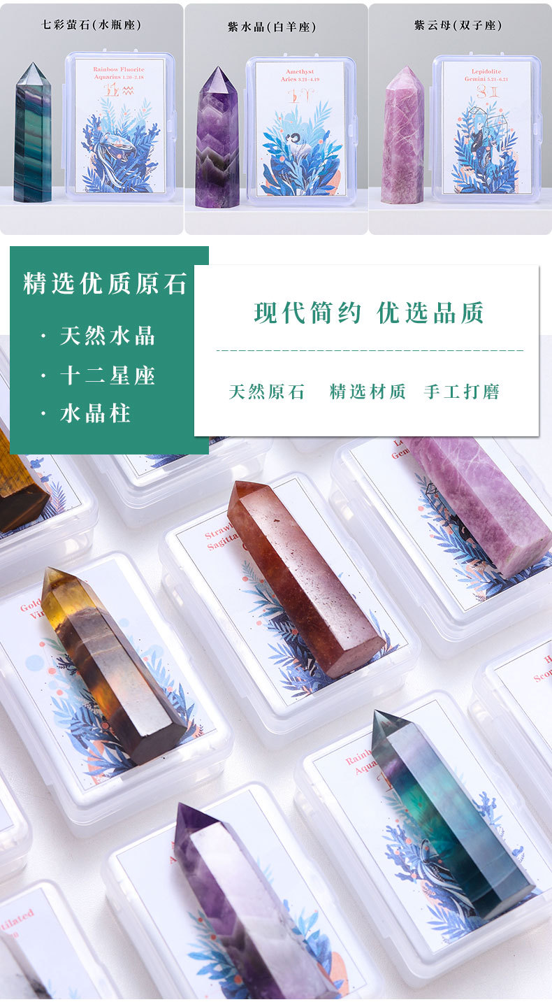 Set Kolom Kristal Laut Cina Timur Dua Belas Rasi Bintang Batu Mata Harimau Amethyst Set Label Mineral Batu Mentah Kristal Fluorit Warna-warni