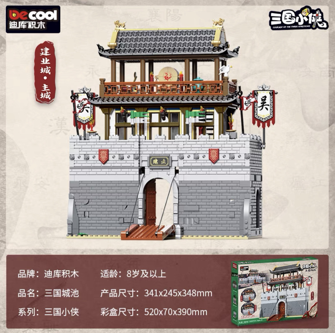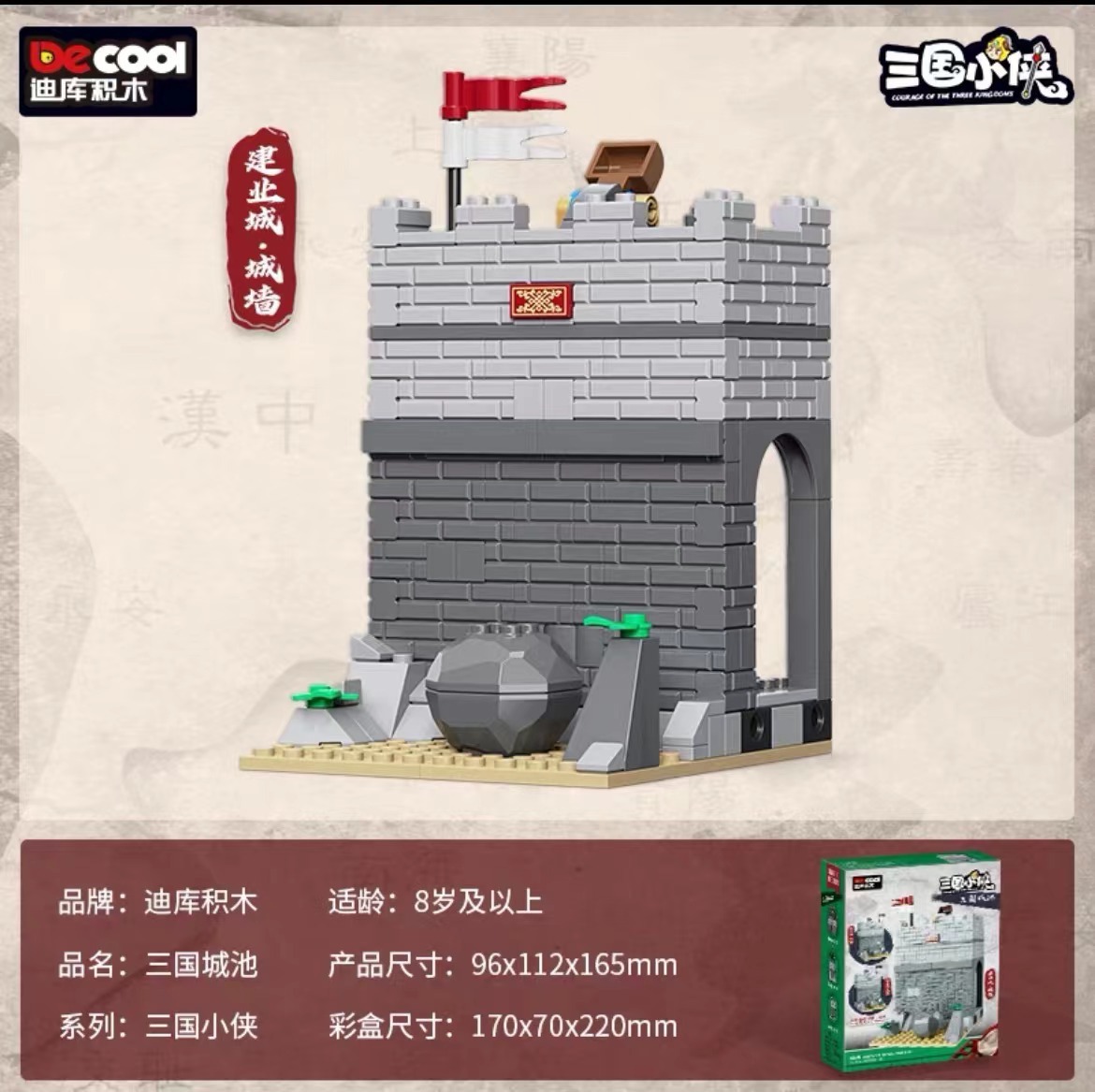 Diku Tiga Kerajaan Xiaoxiao dinding kota kota utama sudut bangunan kota kuno pasang nasional kompatibel dengan Lego dirakit blok bangunan model bangunan