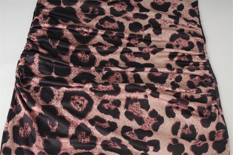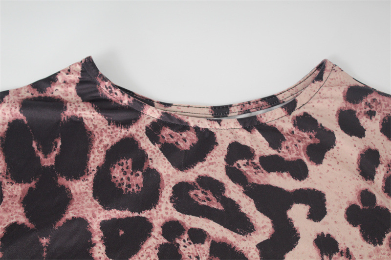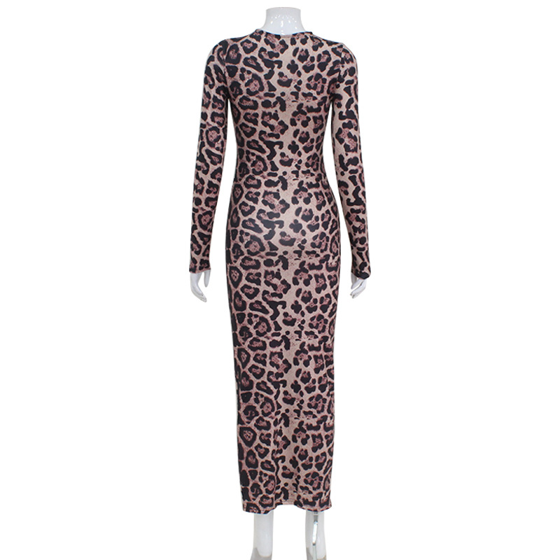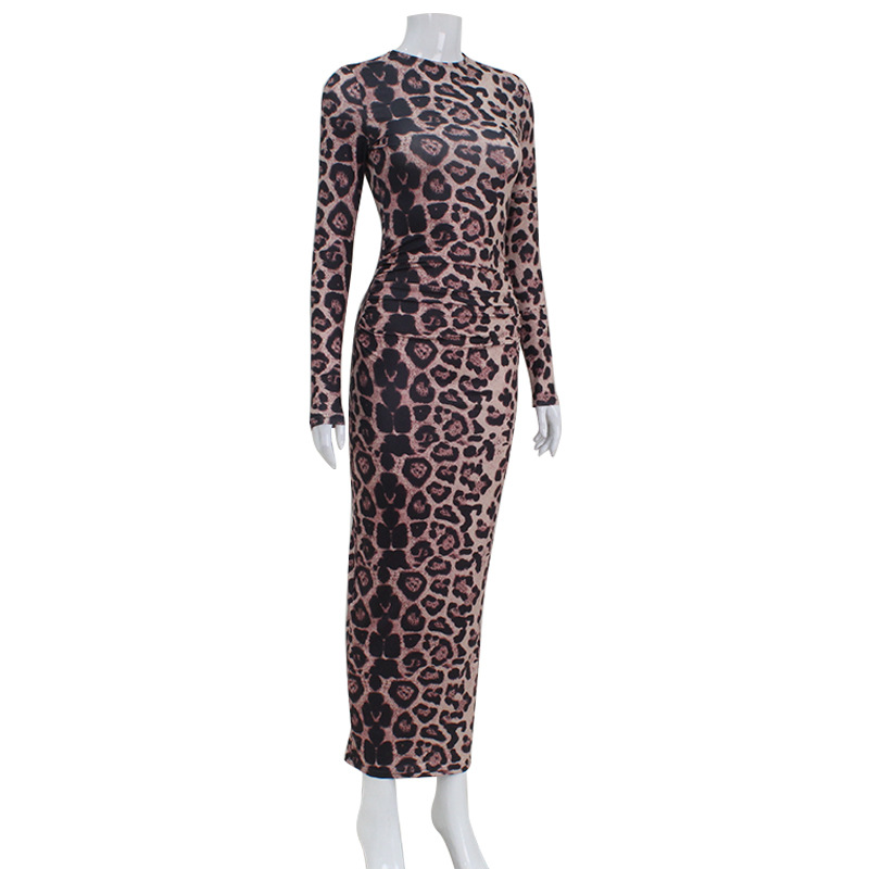 Gaun wanita lengan panjang kerah bulat motif leopard seksi, pinggang tinggi, elegan, dan berkelas, terlaris lintas batas Eropa dan Amerika.