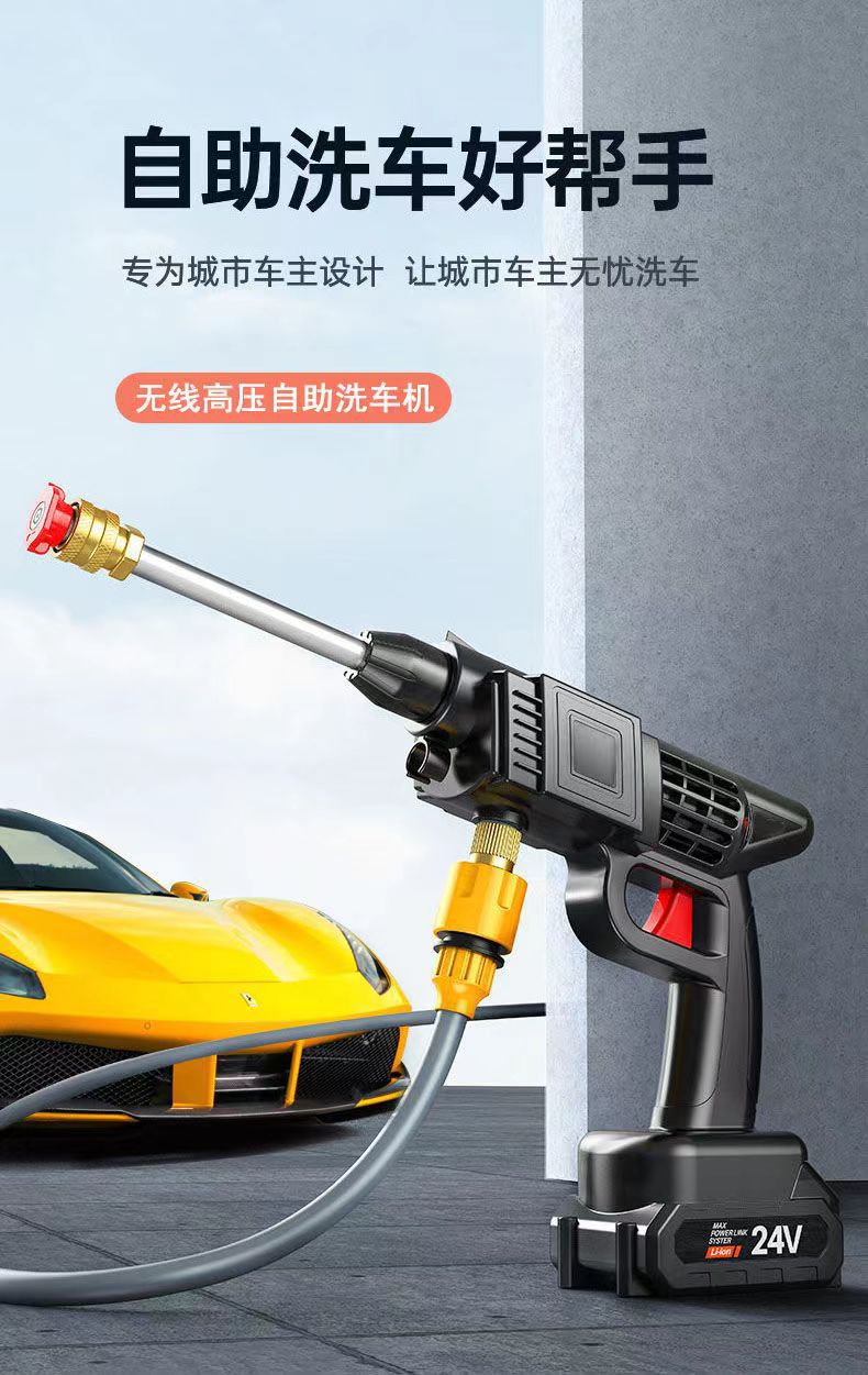 Pistol air cuci mobil grosir pabrik mesin cuci mobil elektrik rumah tangga dapat diisi ulang pistol cuci mobil Lithium artefak cuci mobil tekanan tinggi nirkabel