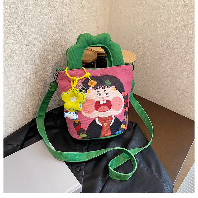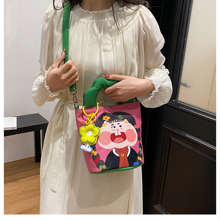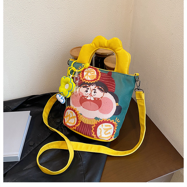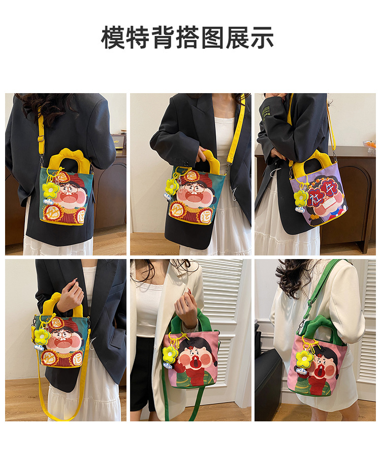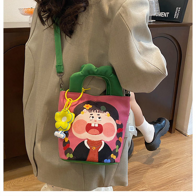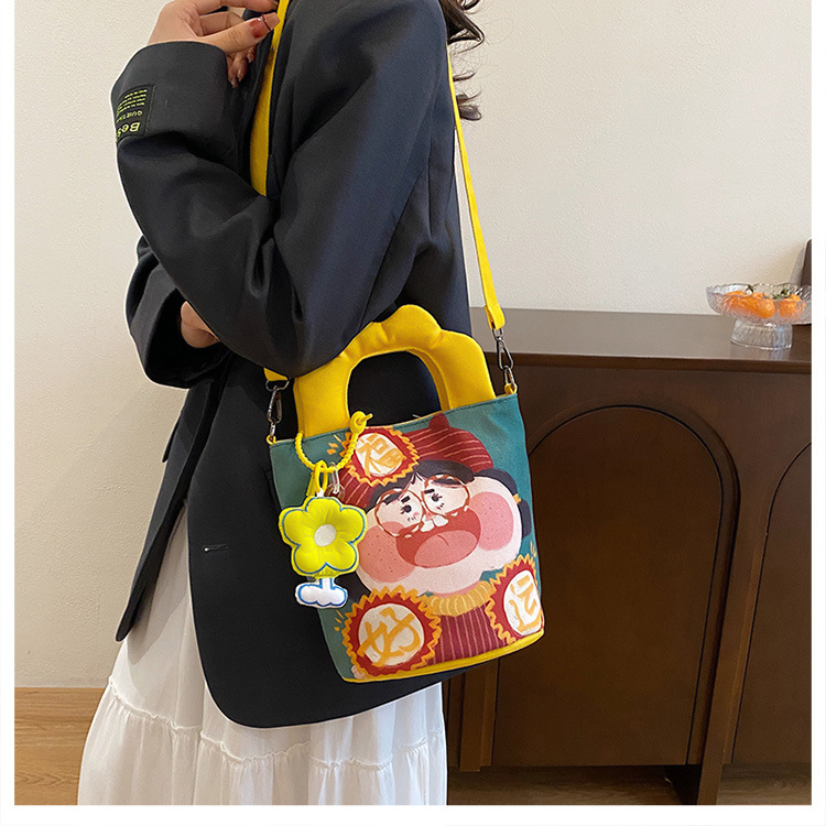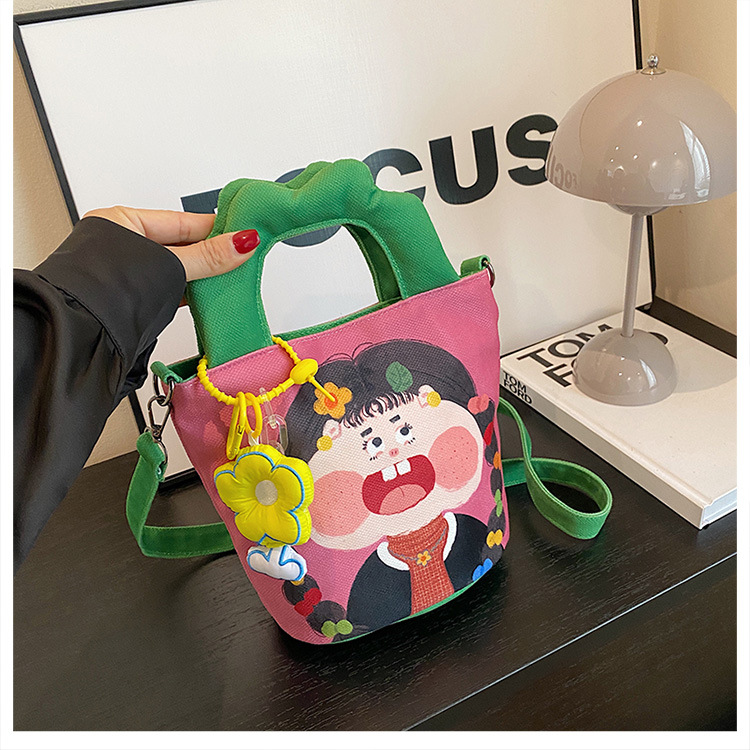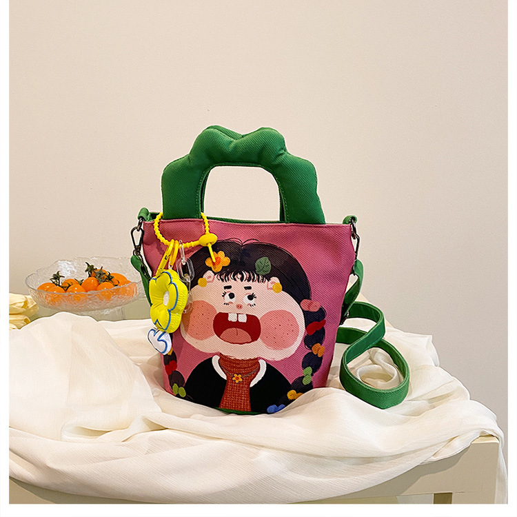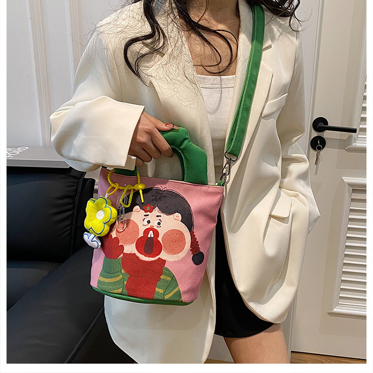 可爱卡通涂鸦单肩水桶包包女2024直播潮ins时尚百搭手提斜挎包女