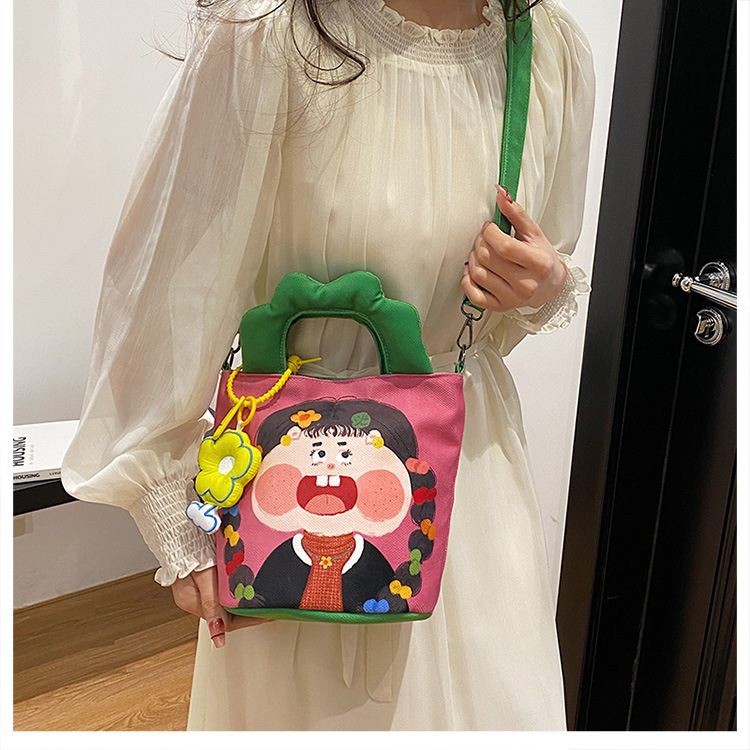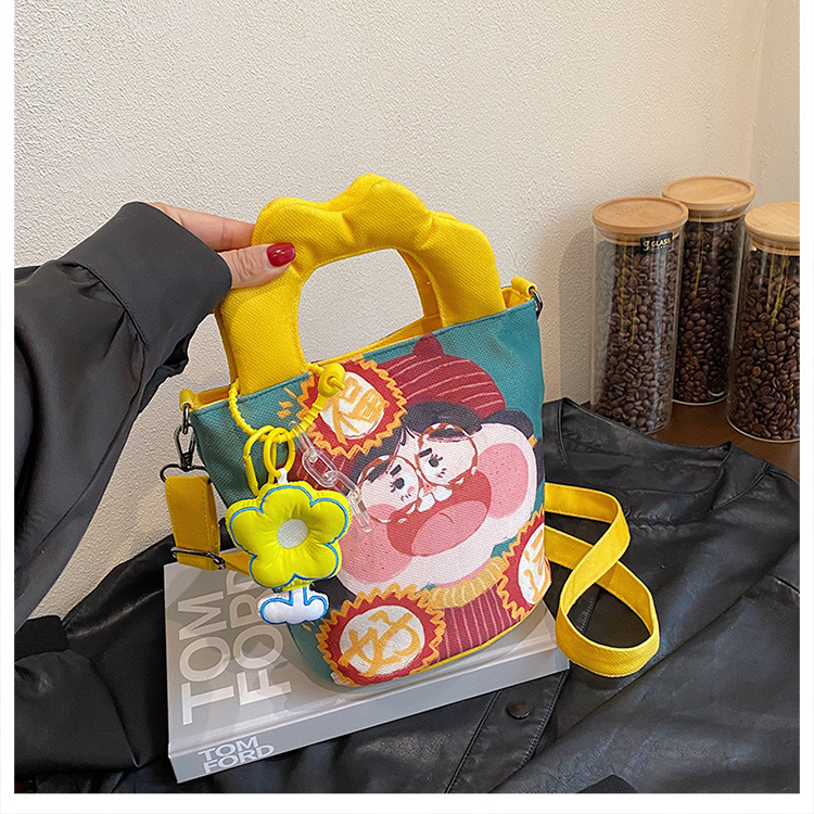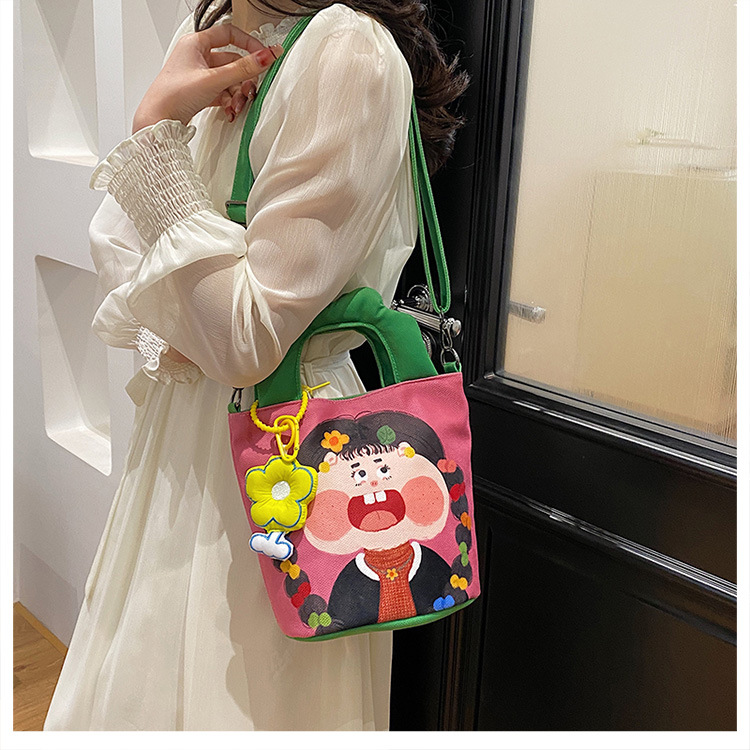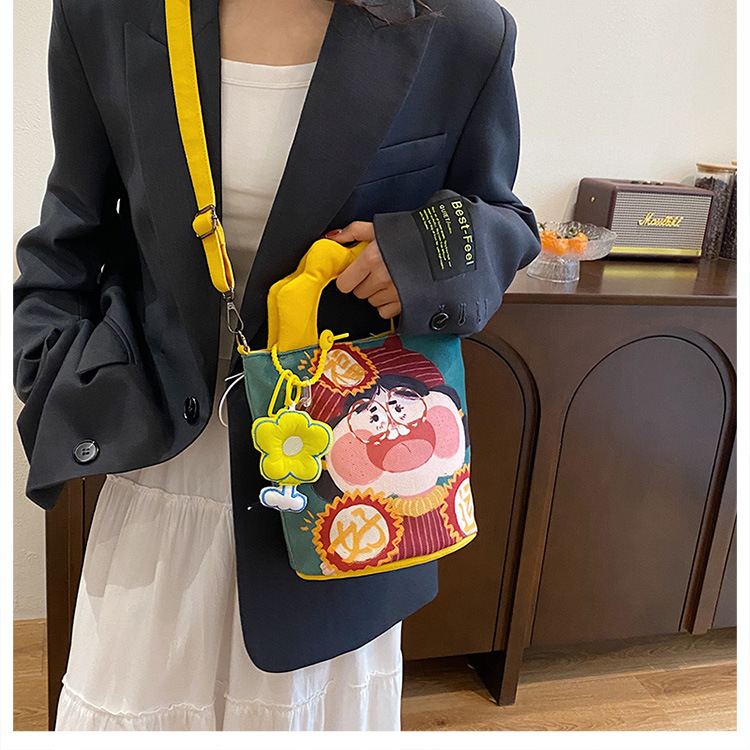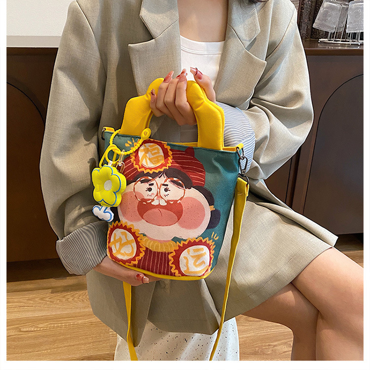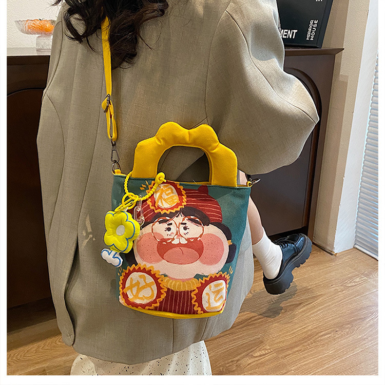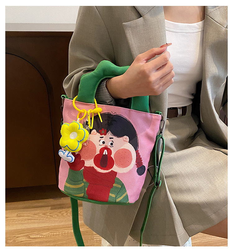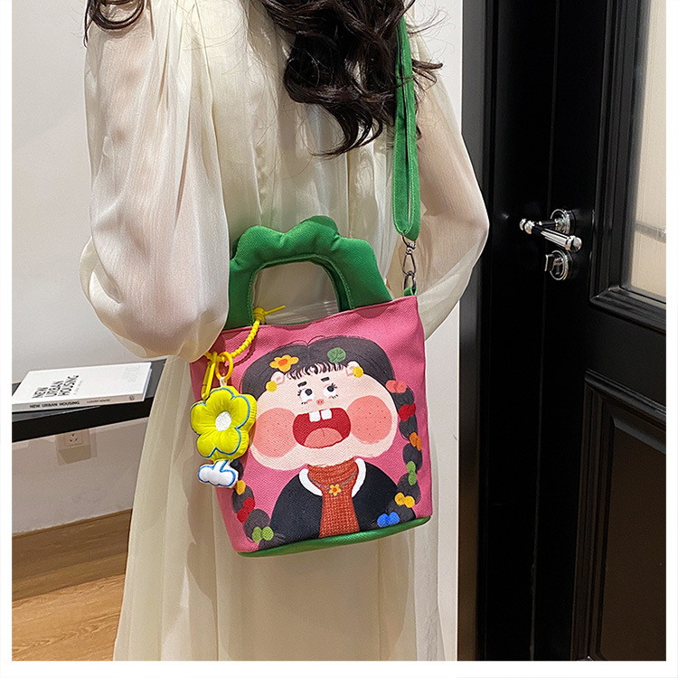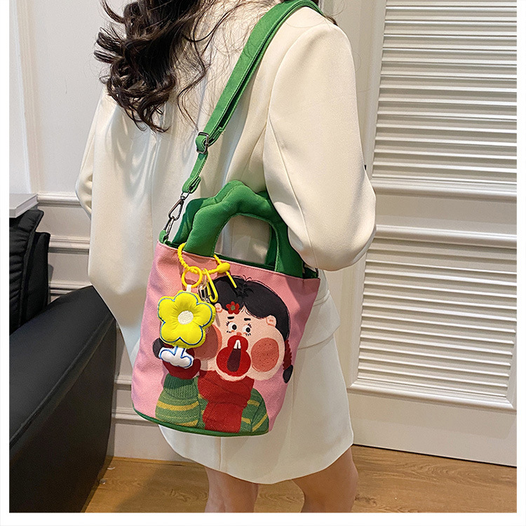 可爱卡通涂鸦单肩水桶包包女2024直播潮ins时尚百搭手提斜挎包女