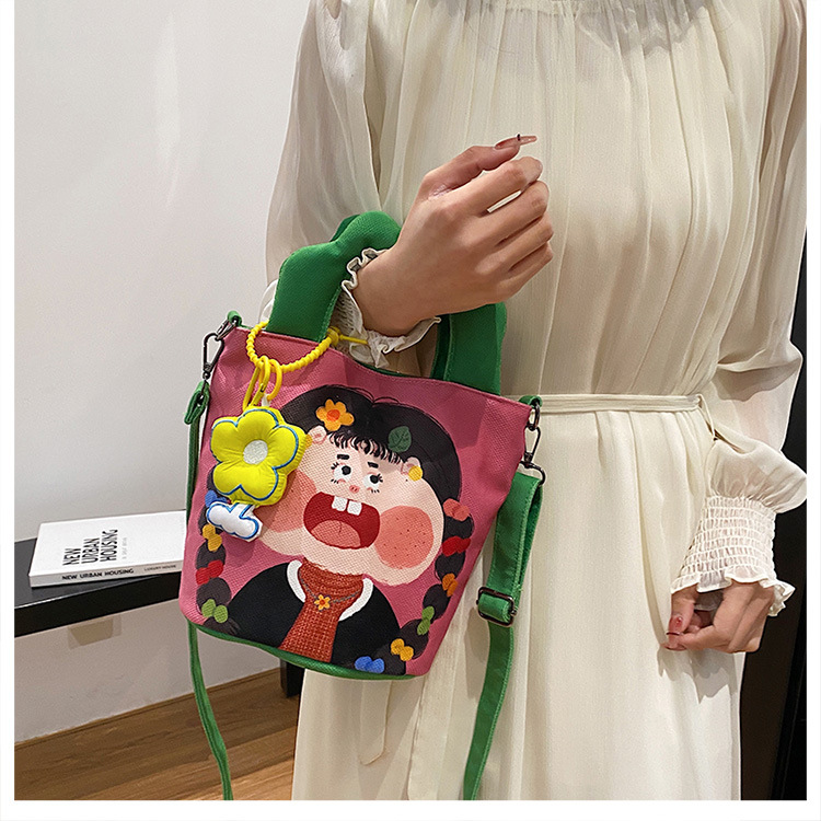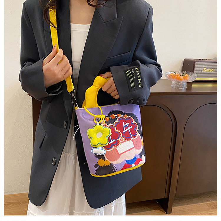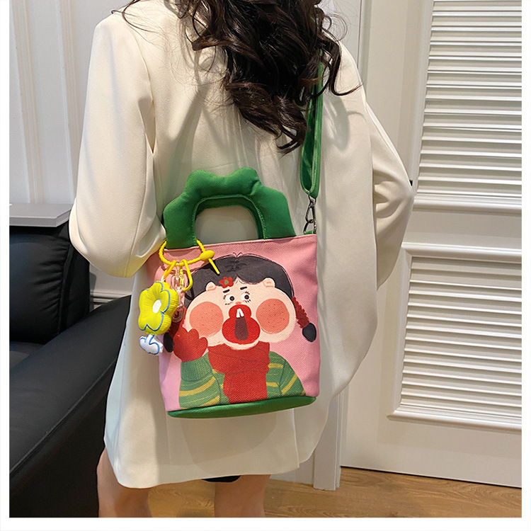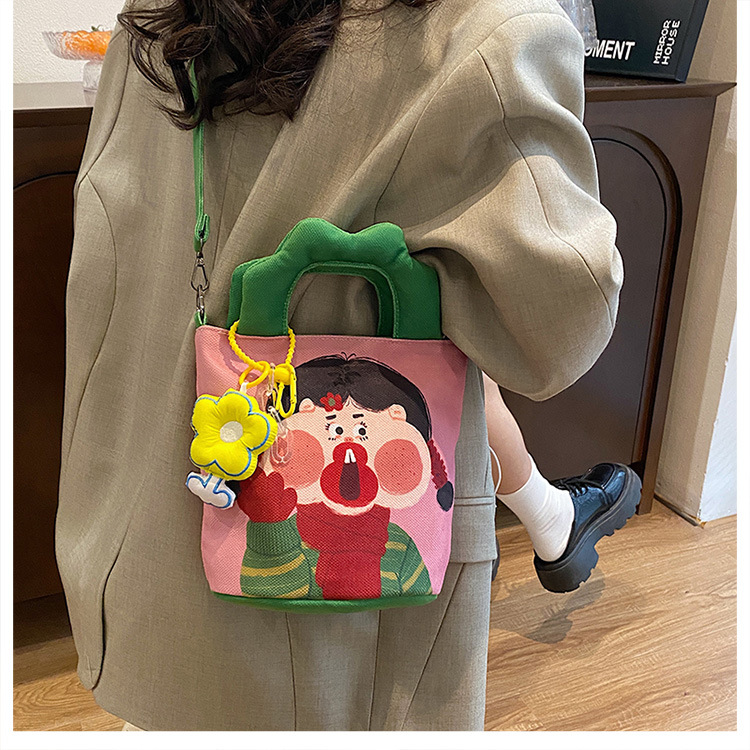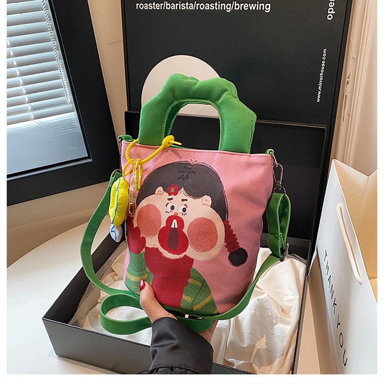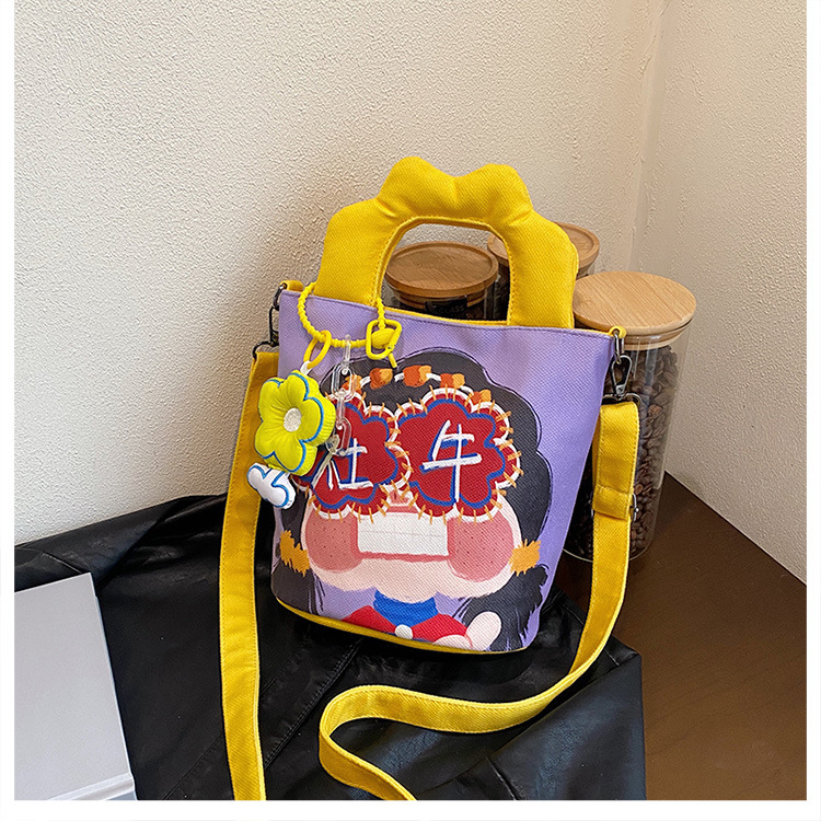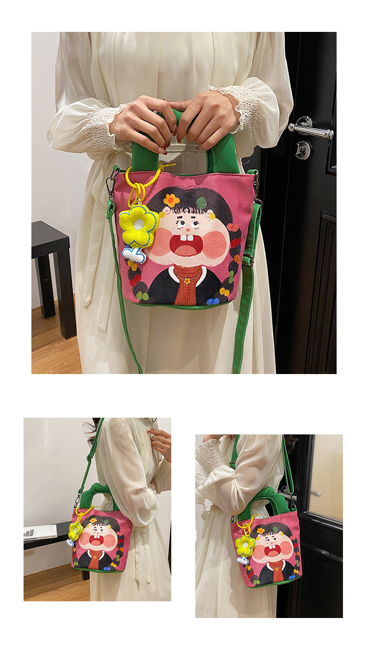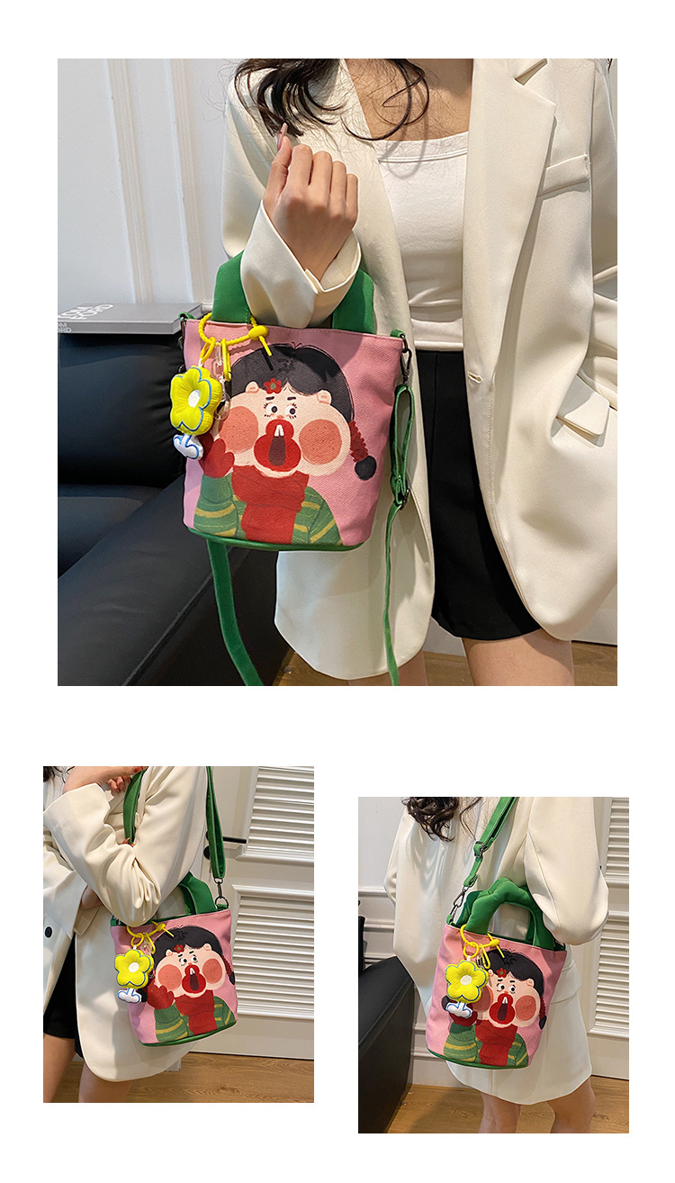 可爱卡通涂鸦单肩水桶包包女2024直播潮ins时尚百搭手提斜挎包女