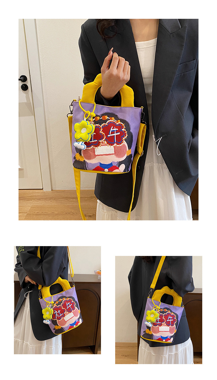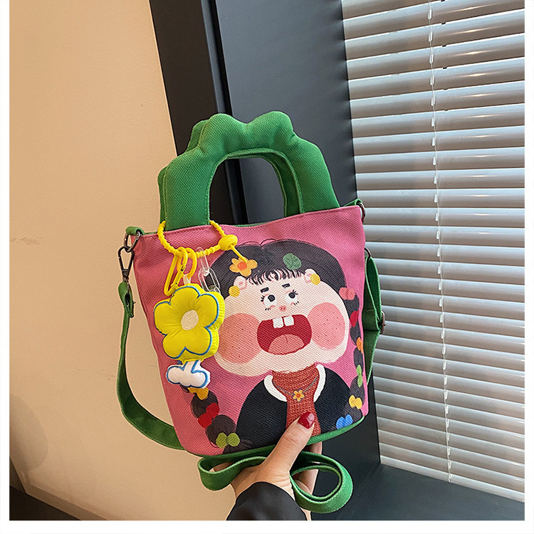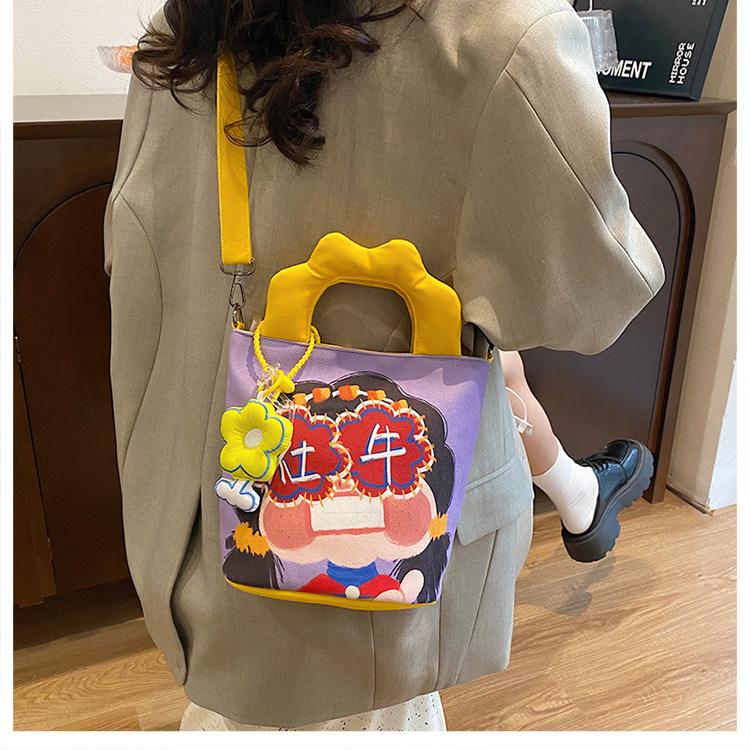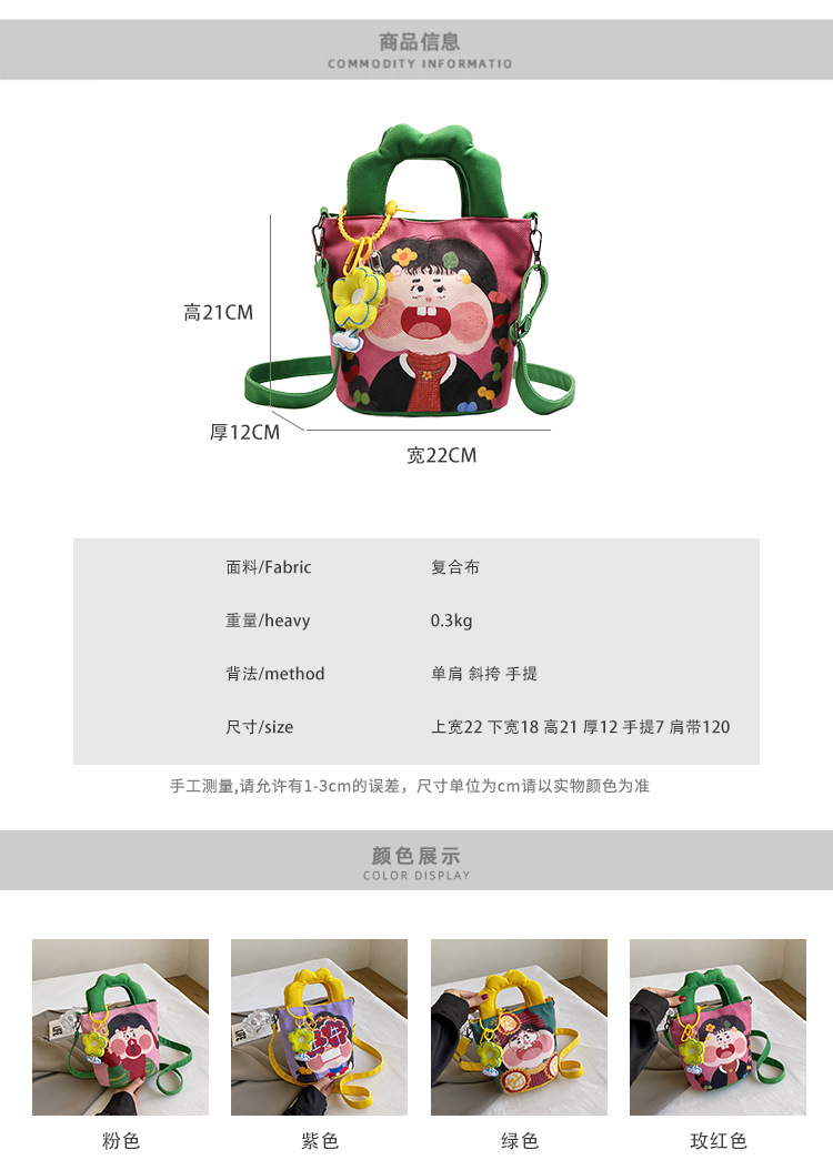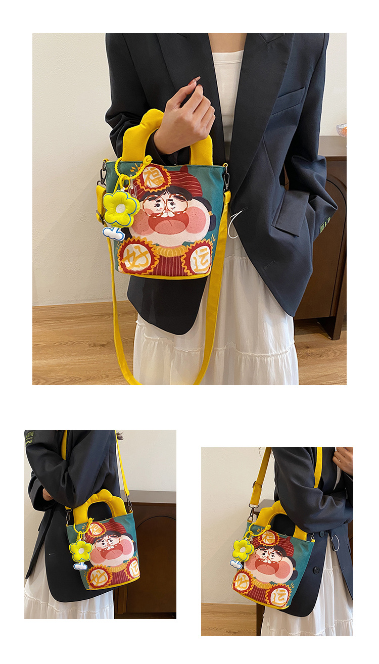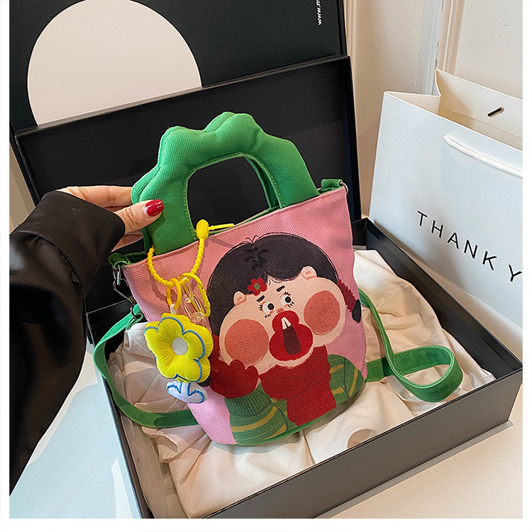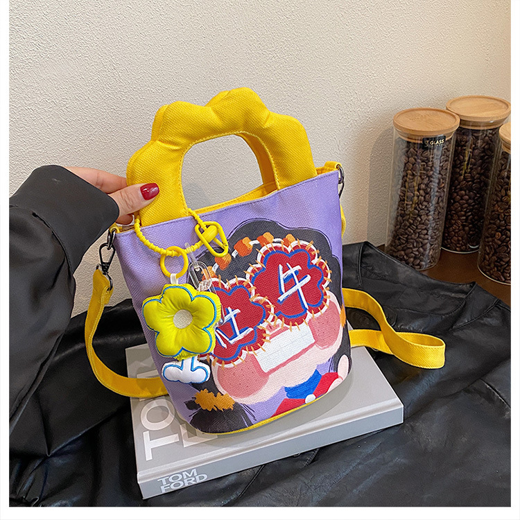 可爱卡通涂鸦单肩水桶包包女2024直播潮ins时尚百搭手提斜挎包女