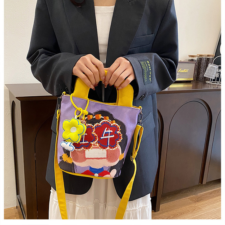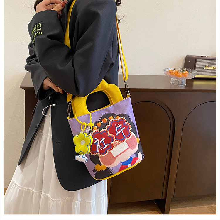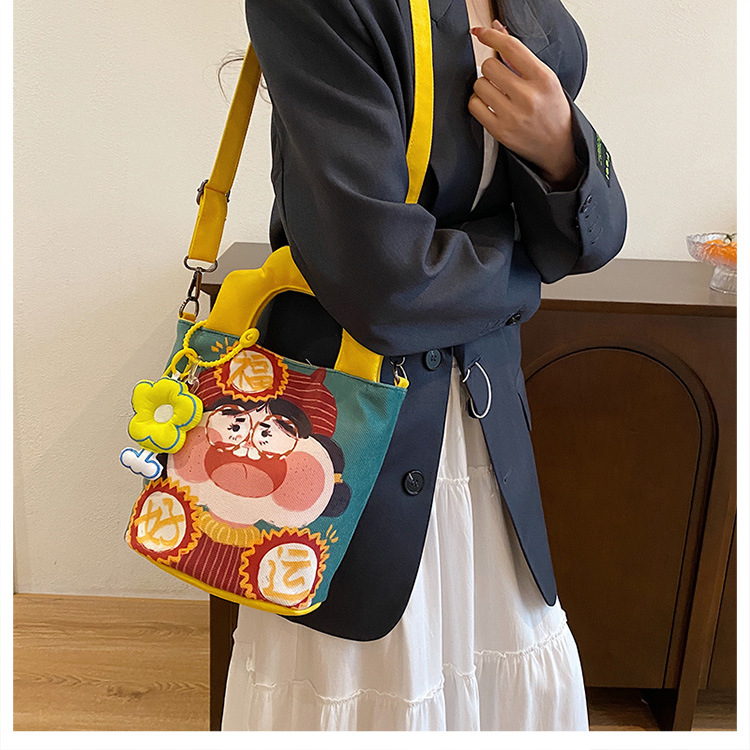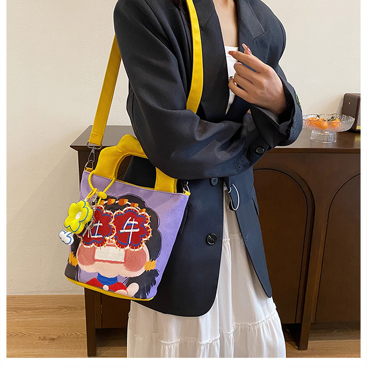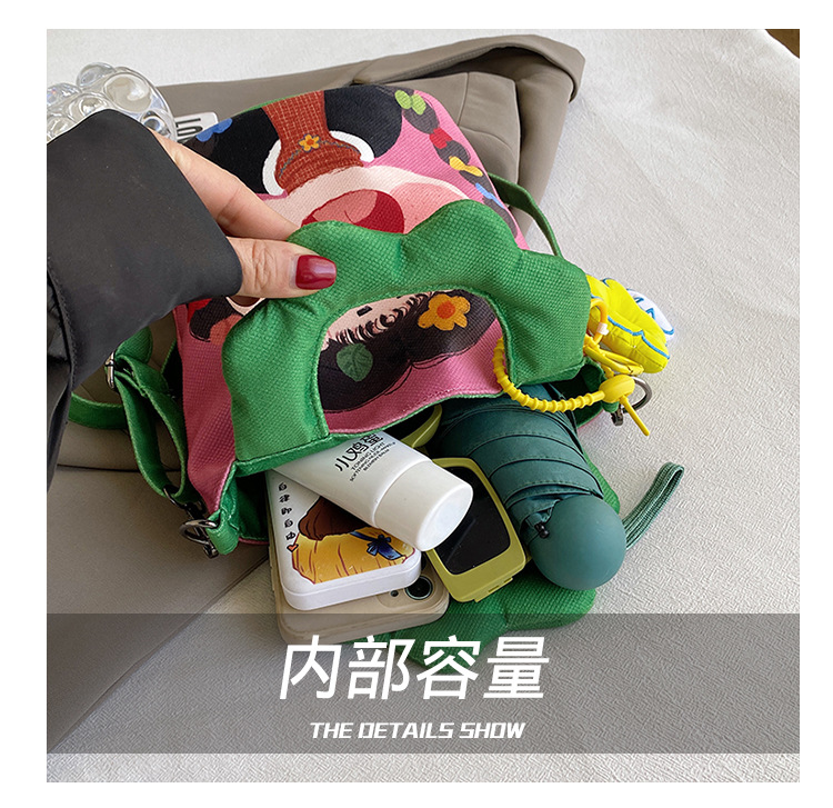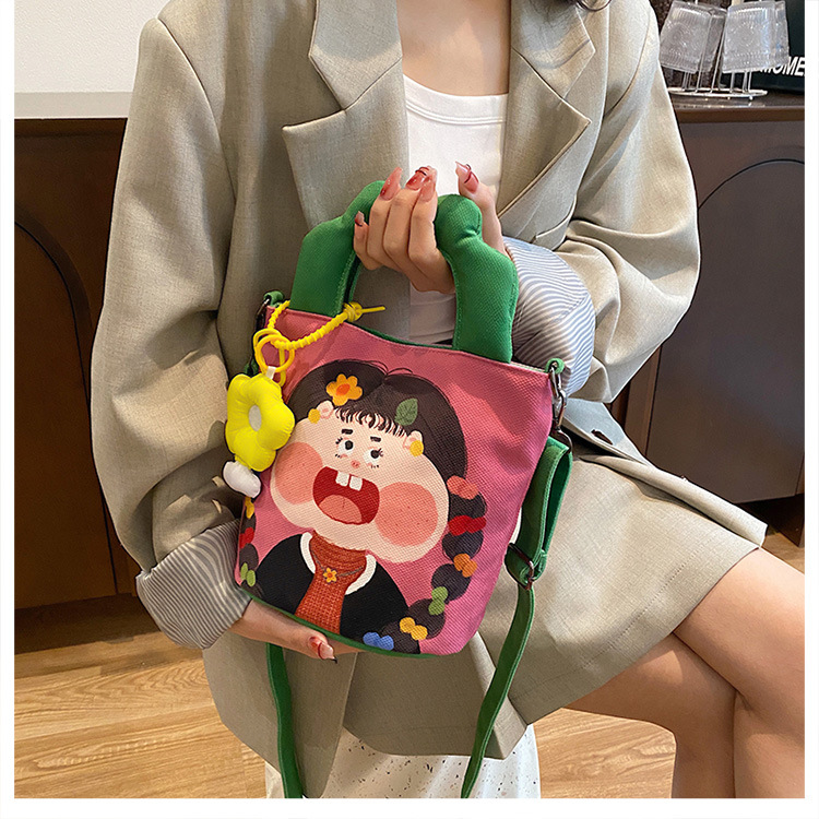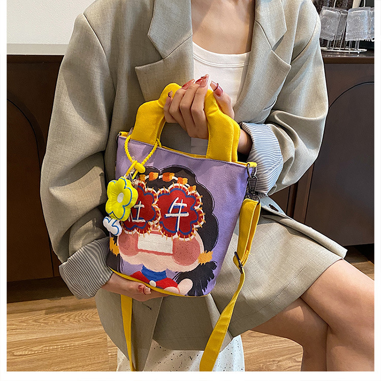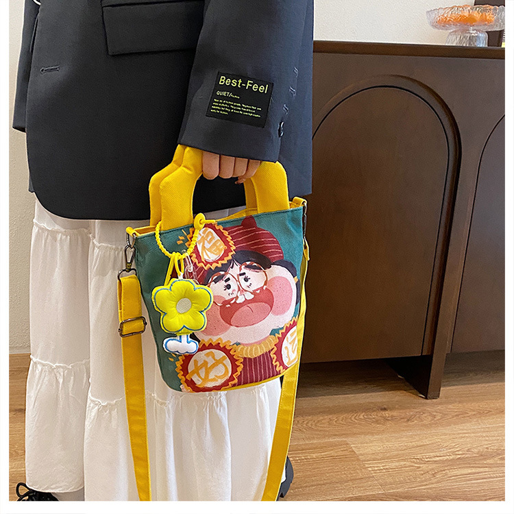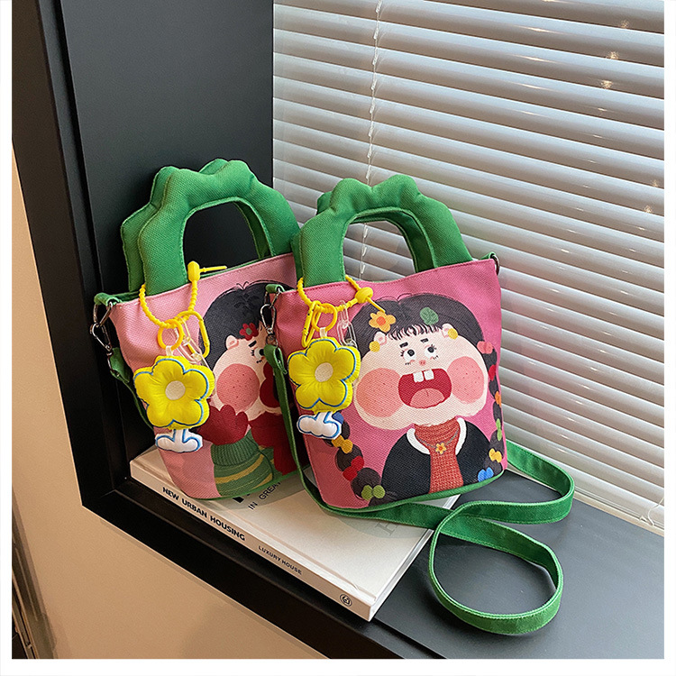 可爱卡通涂鸦单肩水桶包包女2024直播潮ins时尚百搭手提斜挎包女