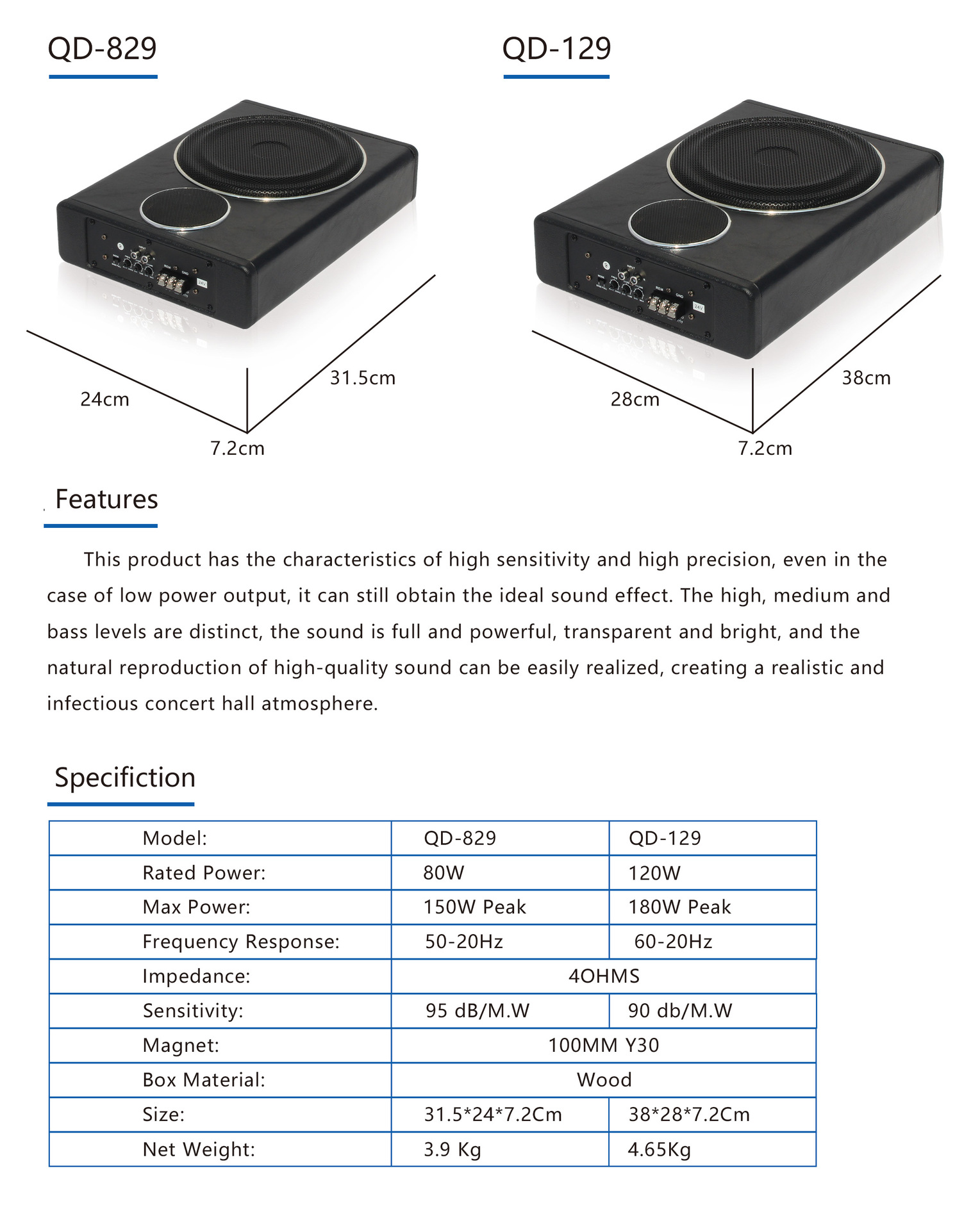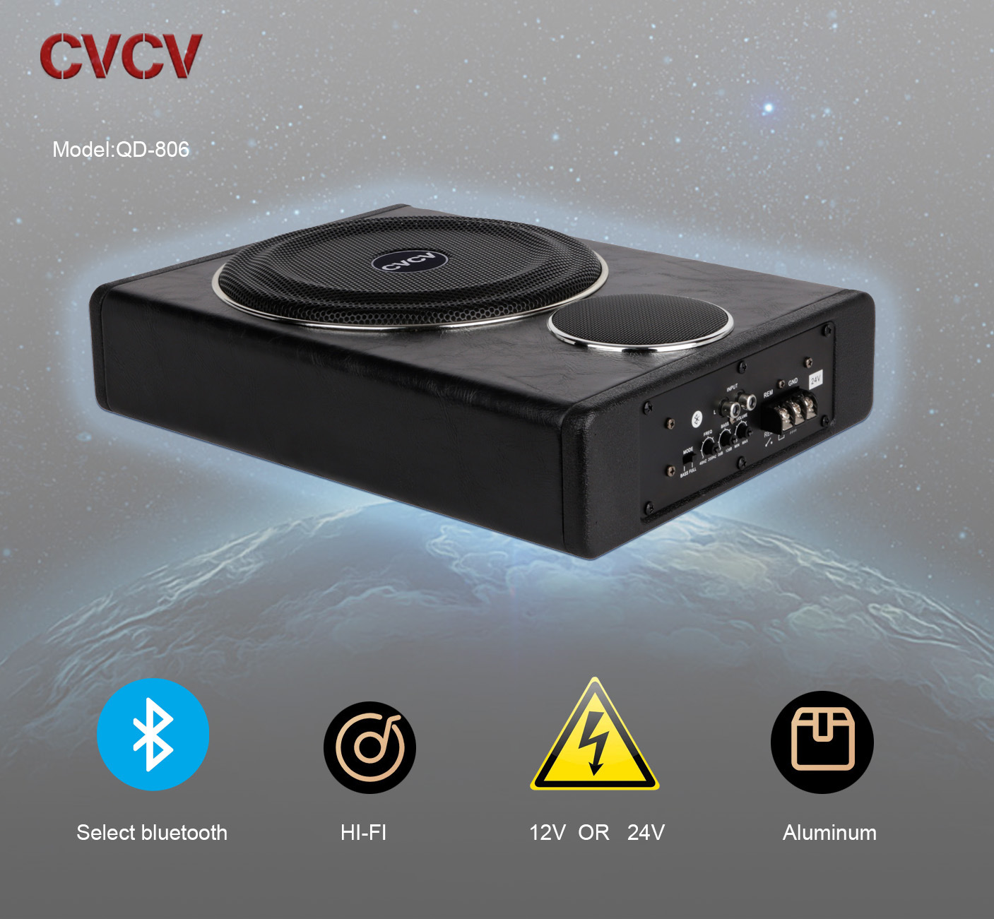 Subwoofer aktif ultra-tipis Bluetooth 8 inci untuk audio mobil 12V24V, speaker tabung berdaya tinggi untuk di jok mobil