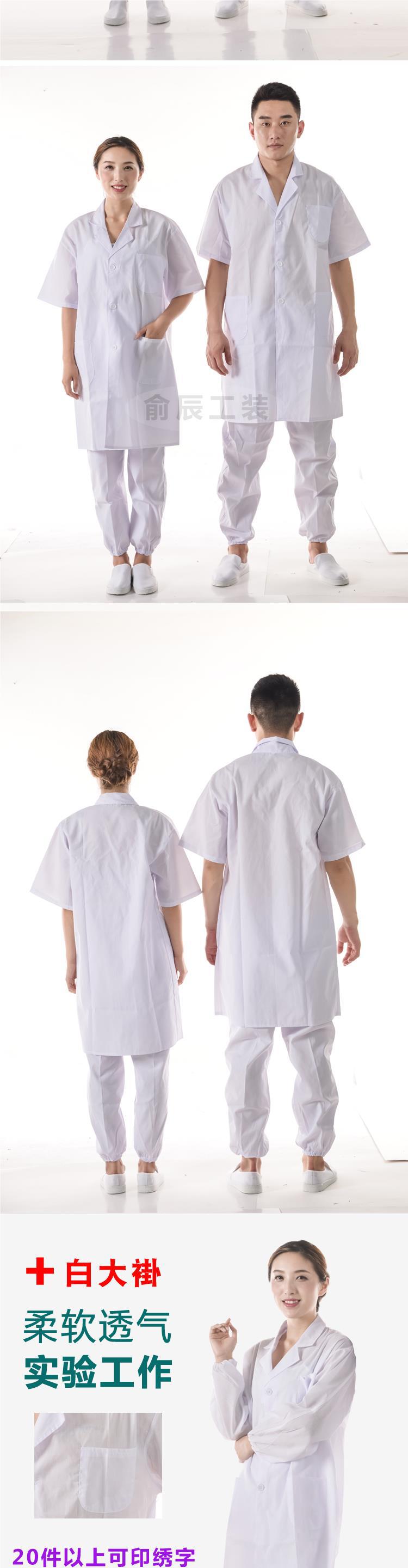 夏季长袖实验室学生白大褂短袖薄款男女工作服半袖工厂车间食品服