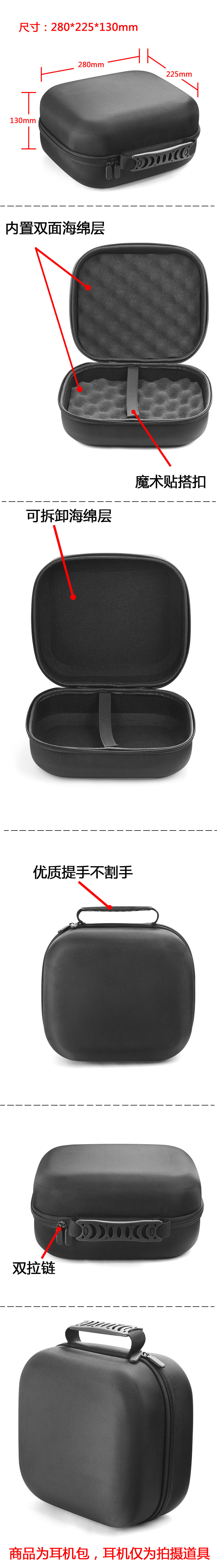 双面海绵内层,可根据耳机大小放置或者拆卸,变化随心。