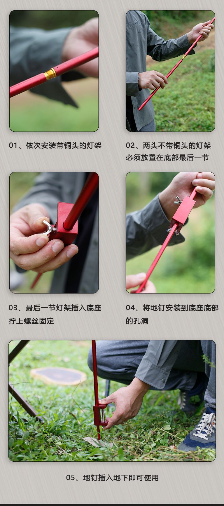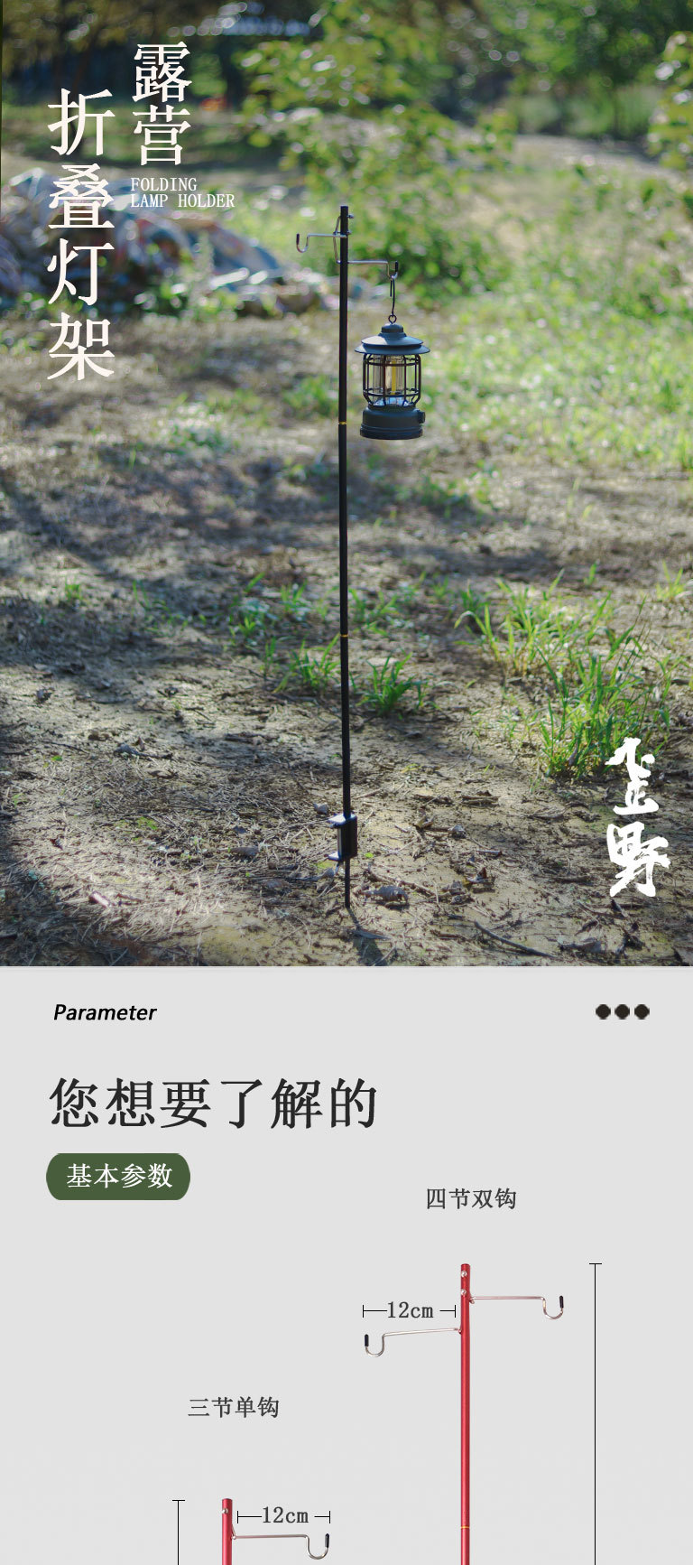 Lampu berkemah luar ruangan, lampu tiang lipat portabel aluminium Aloi lampu berkemah berdiri Kemah liar