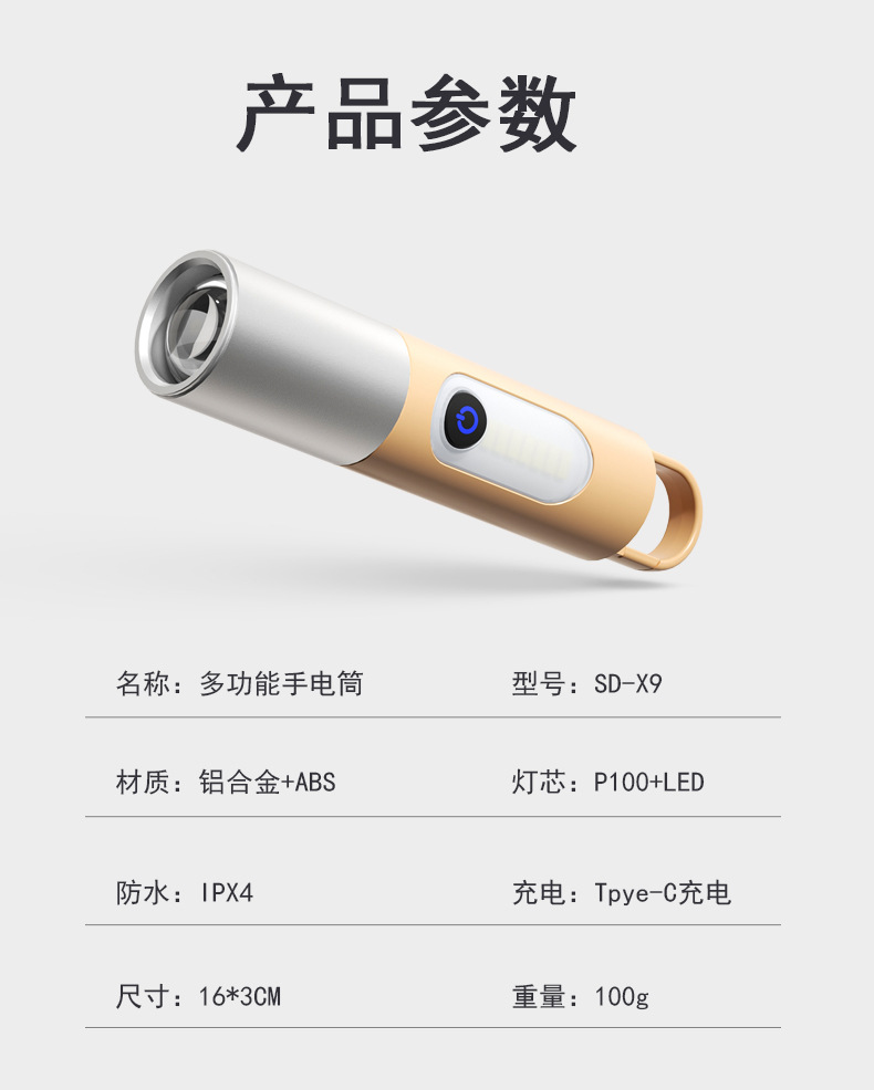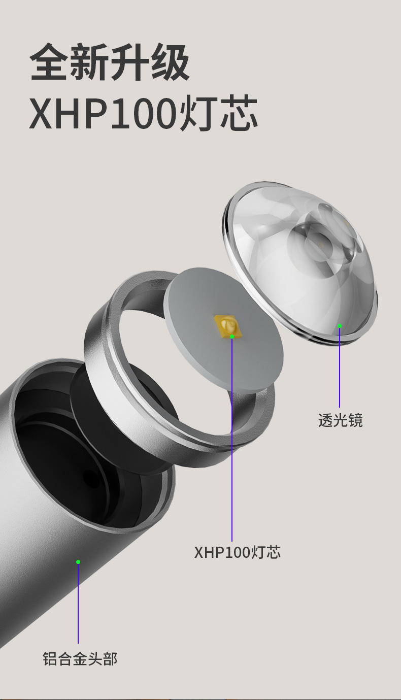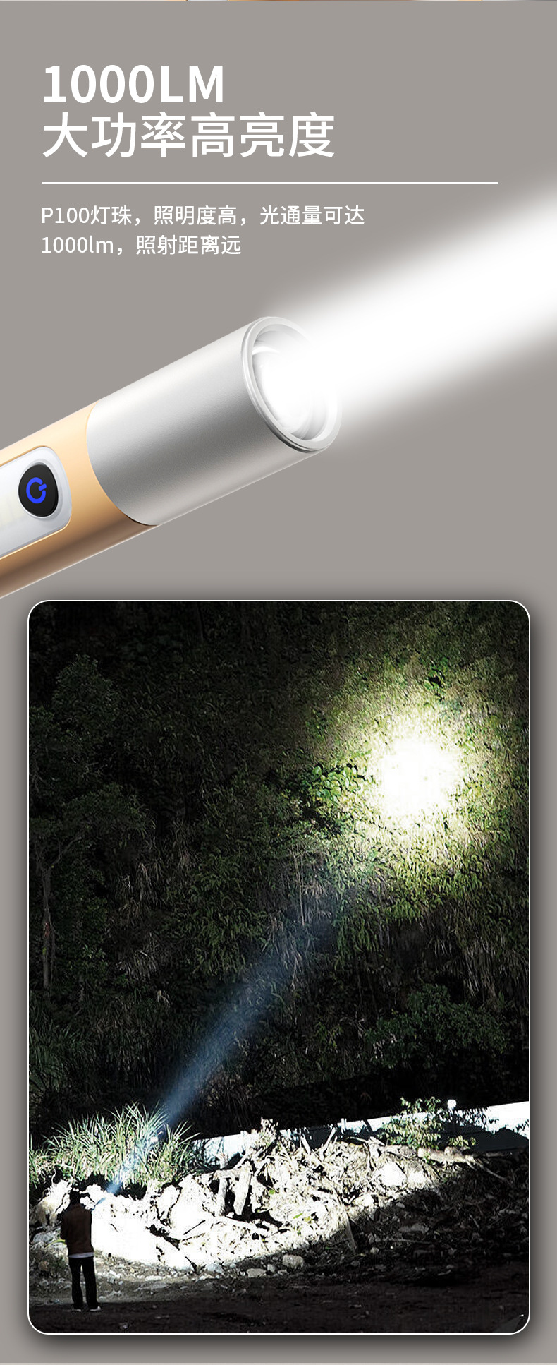 Senter P100 multifungsi, Senter memanjat kait berkemah, lampu samping cahaya kuat dapat ditarik untuk monyet kecil luar ruangan