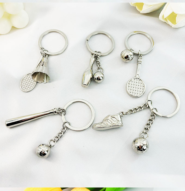 Logam Bowling Gantungan Kunci Permainan Bulutangkis Sepakbola Hadiah Golf Liontin Tenis Meja Kunci Tenis Meja