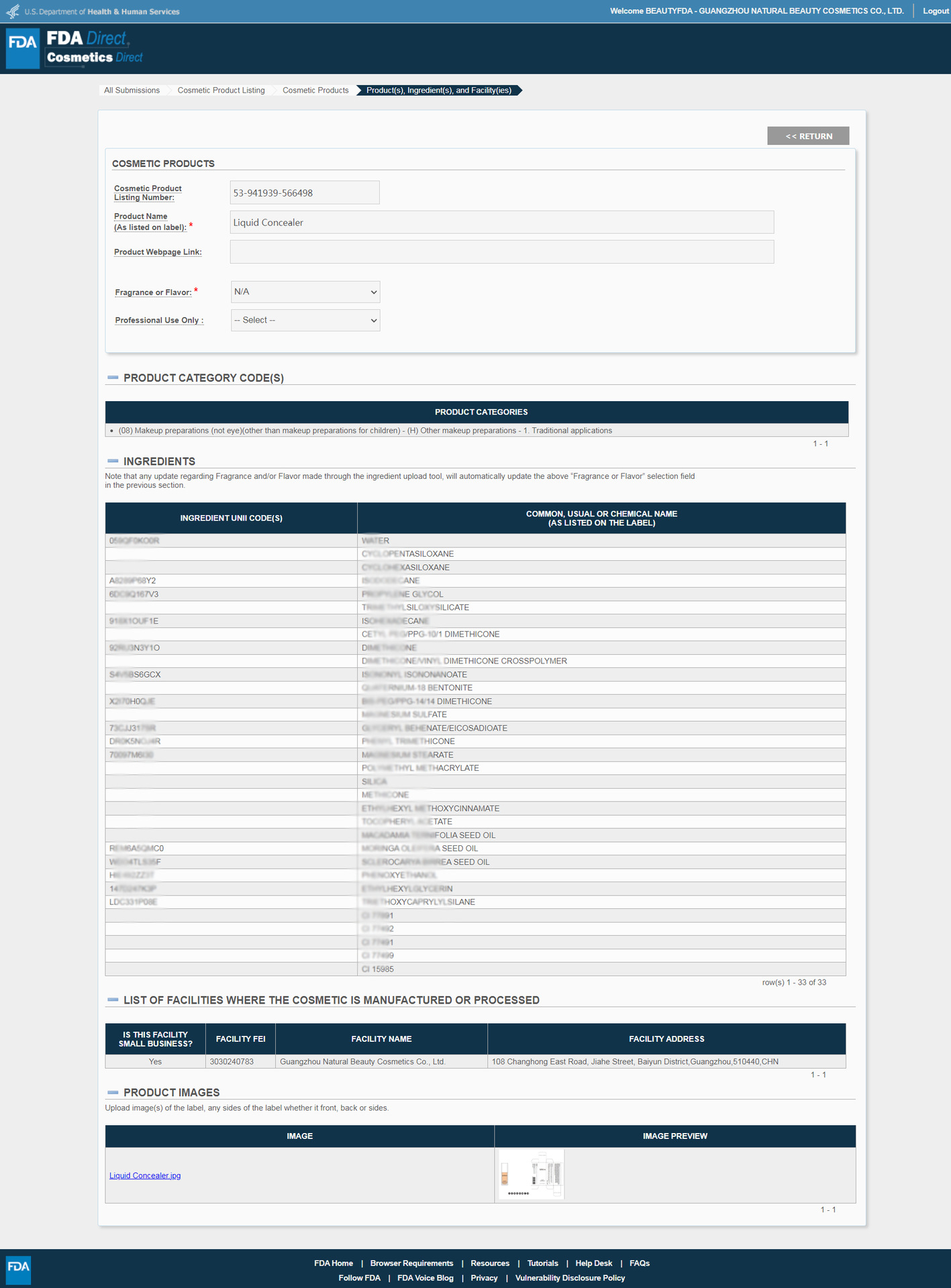 产品FDA证书