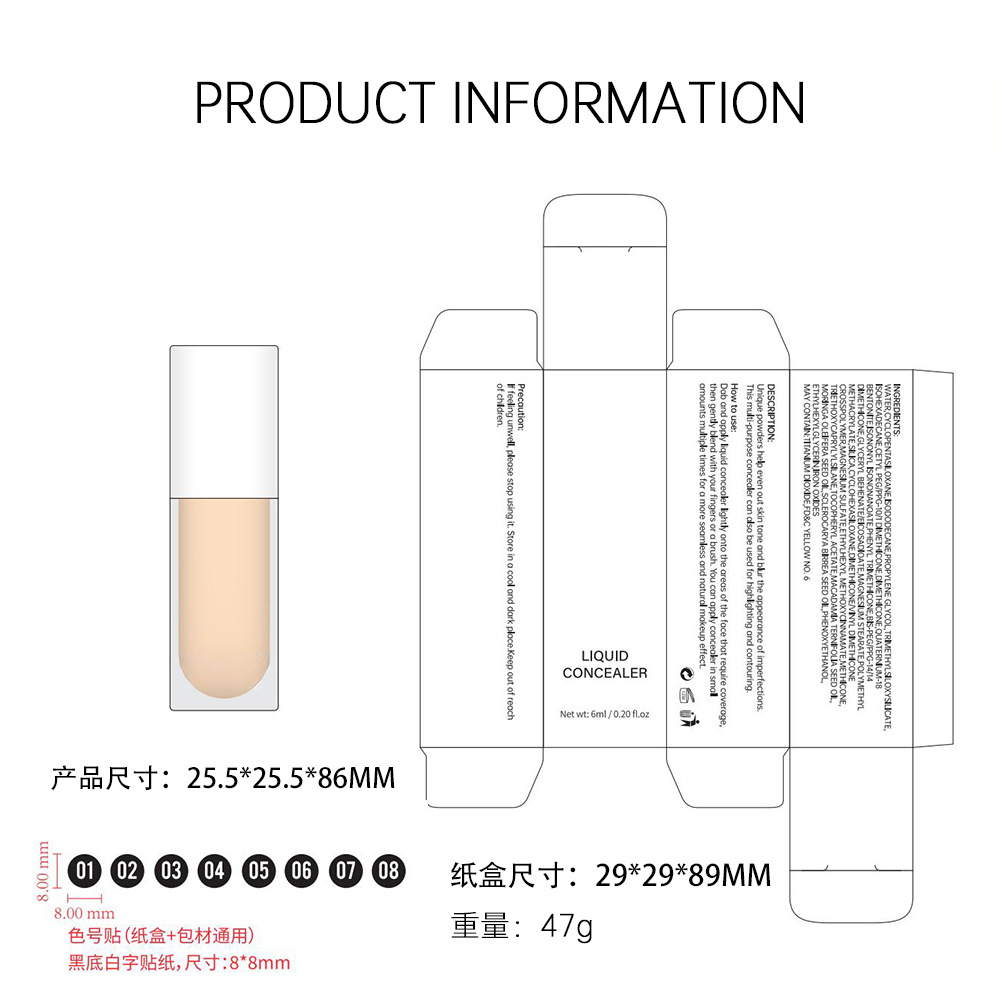 产品+彩盒重量:48g 净含量:6ml