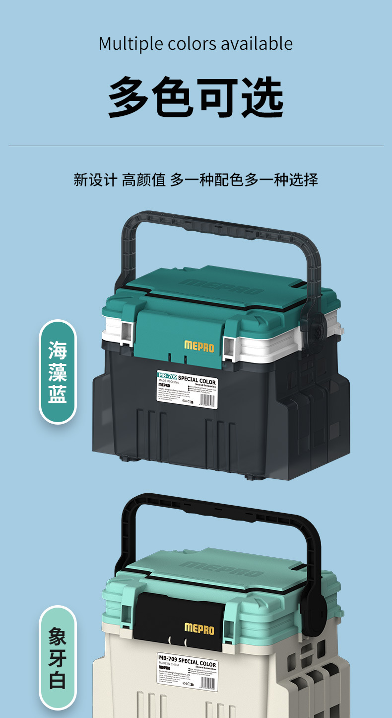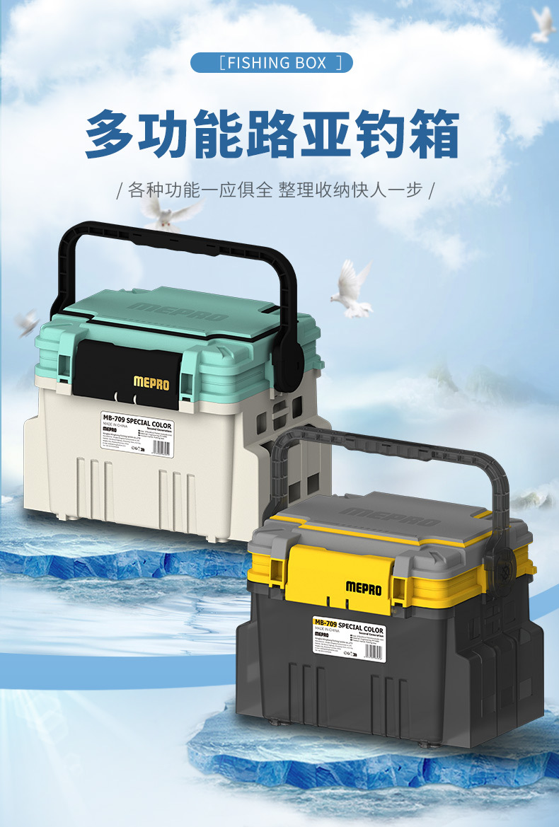 Kotak pancing MEPRO Luya model baru 709, kapasitas ultra besar 20L, kotak umpan, pegangan ABS, kotak penyimpanan multifungsi, perlengkapan memancing.
