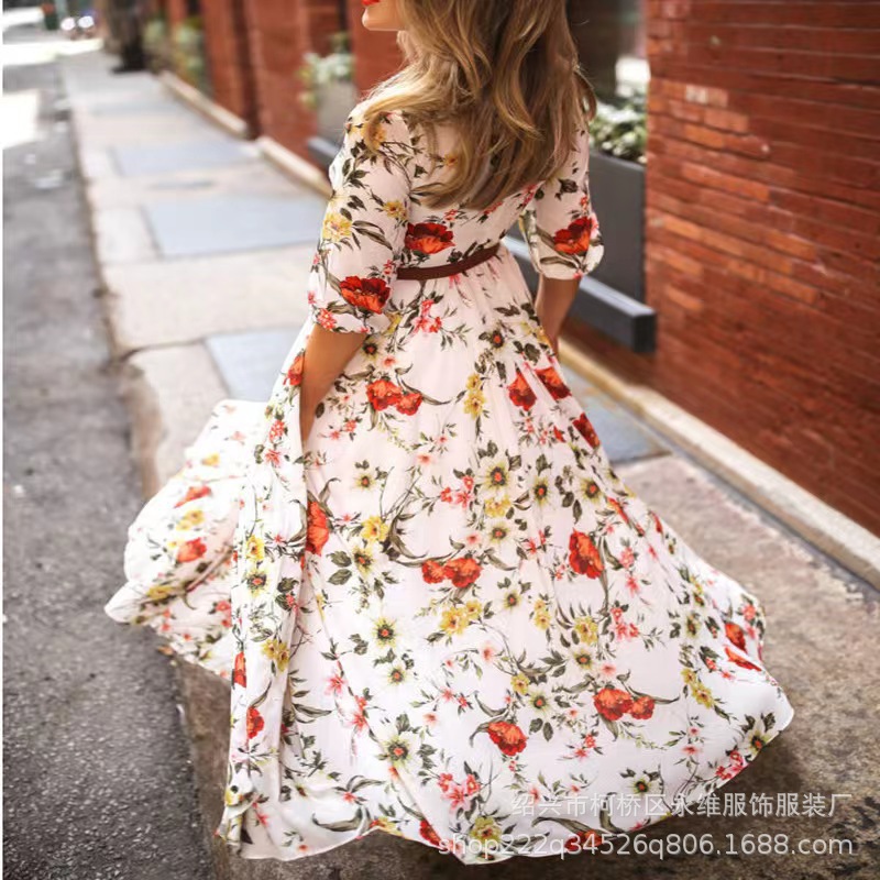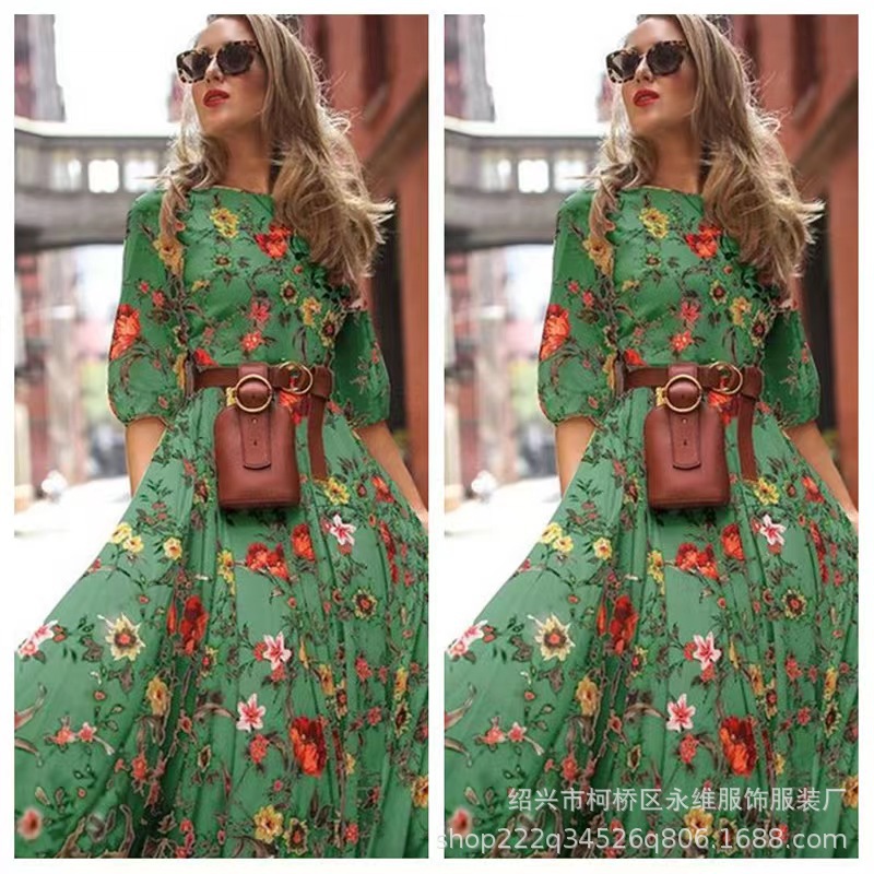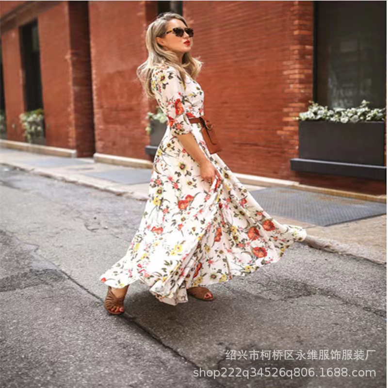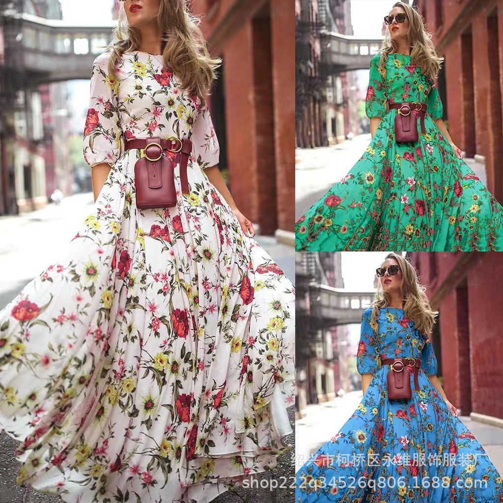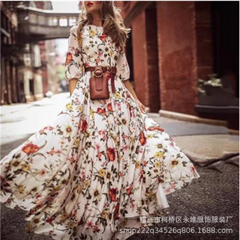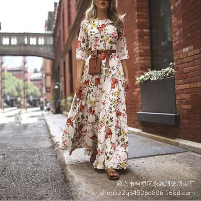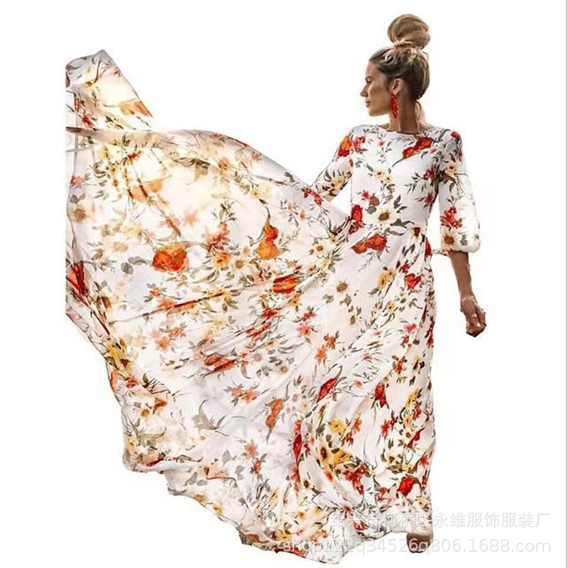 Gaun panjang gaya bohemian perdagangan luar negeri lintas batas rok cetak wanita Eropa dan Amerika Berharap penjualan terlaris pengiriman satu bagian