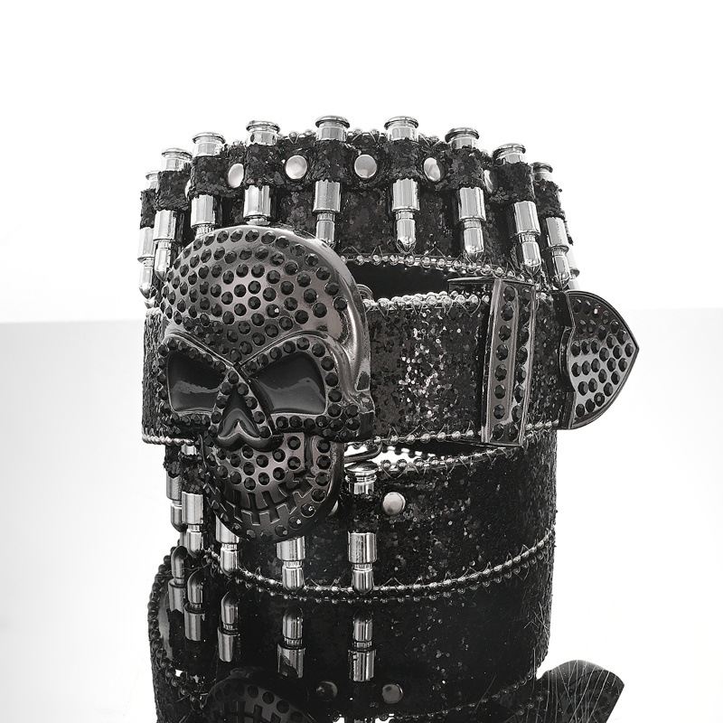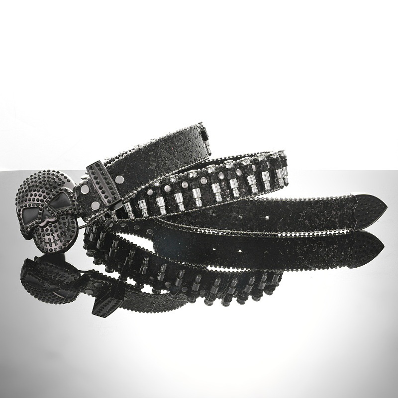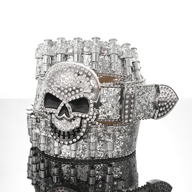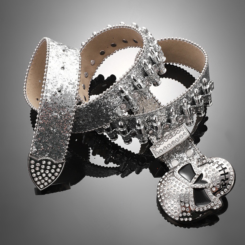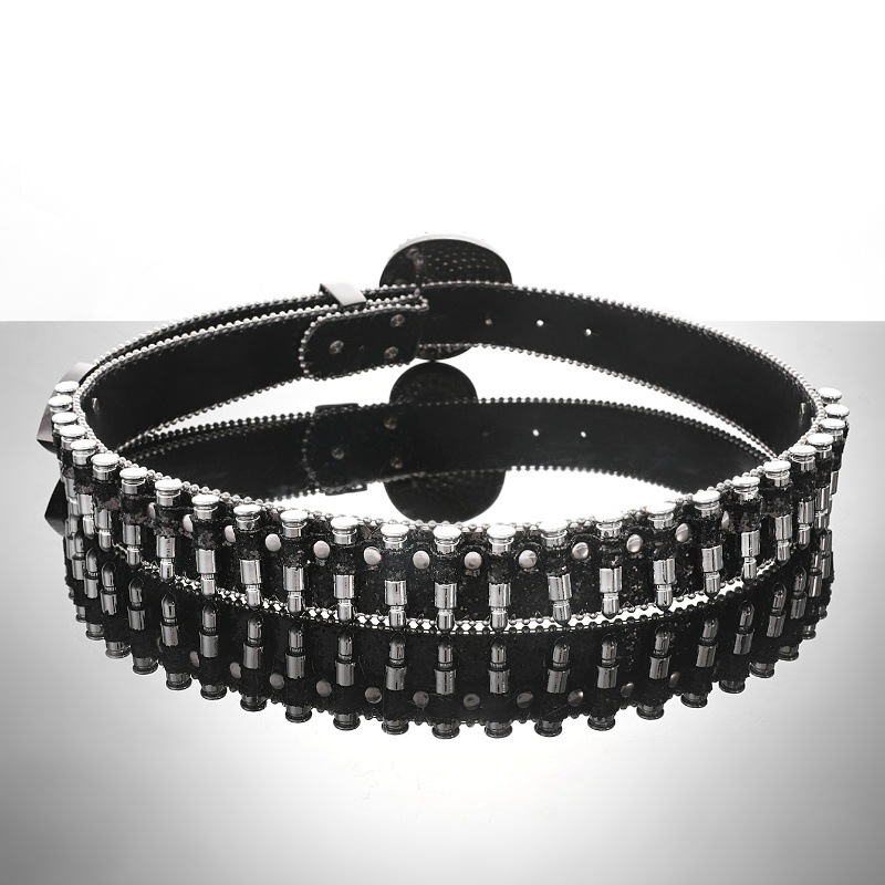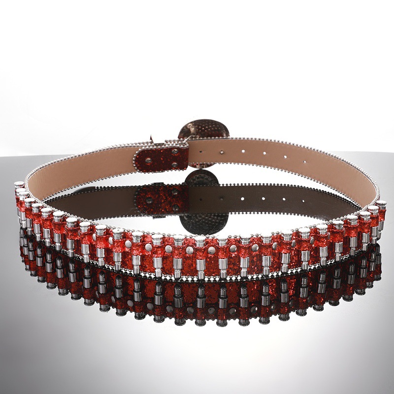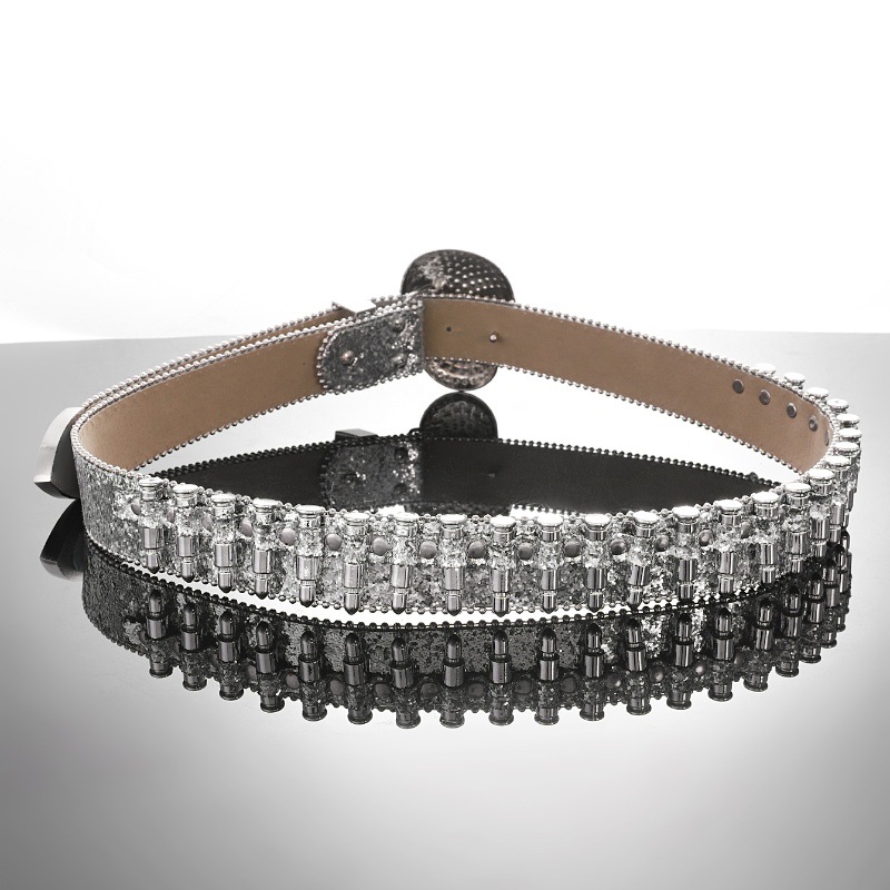Cross-border sabuk payet untuk pria dan wanita, bertatahkan berlian imitasi peluru payet baru gesper hip hop punk jalanan angin