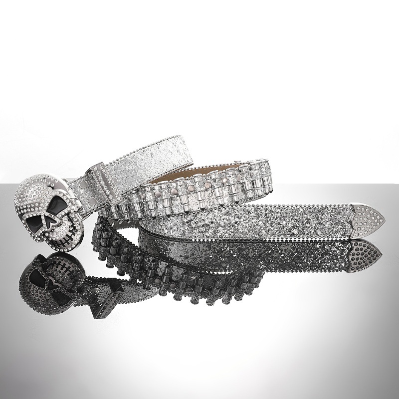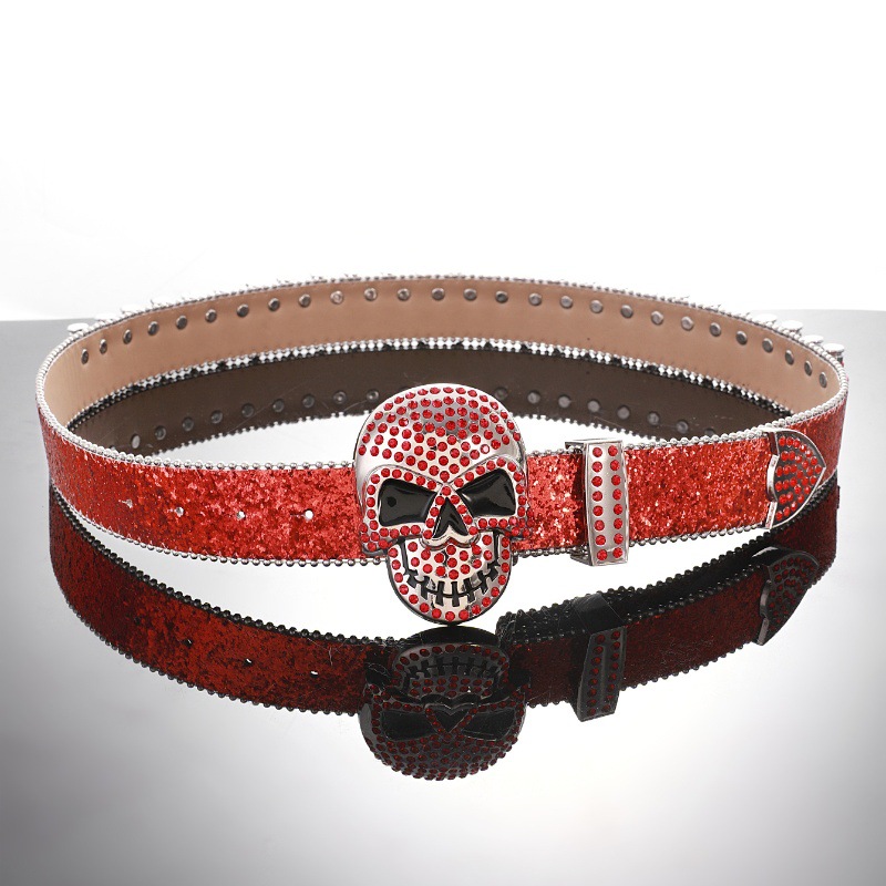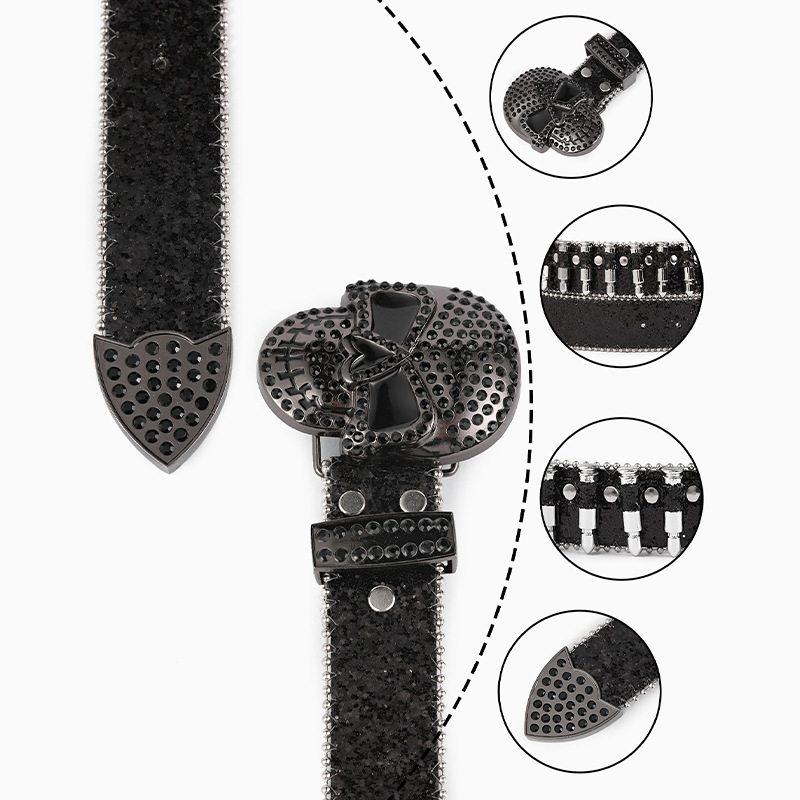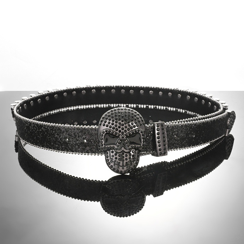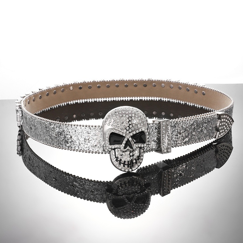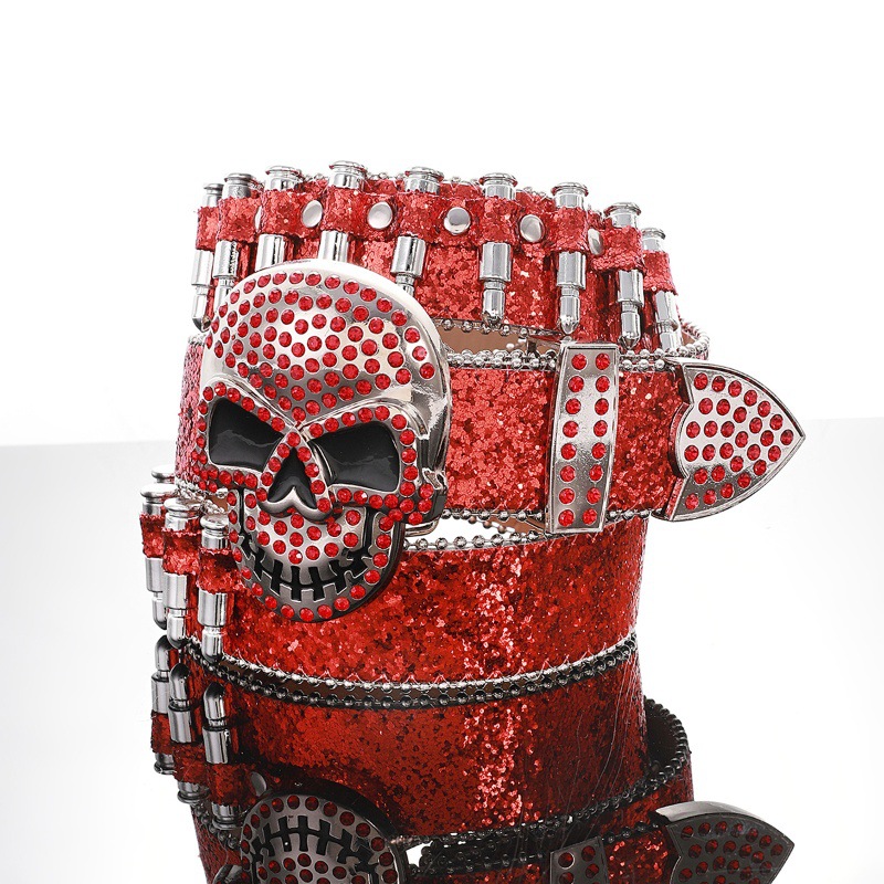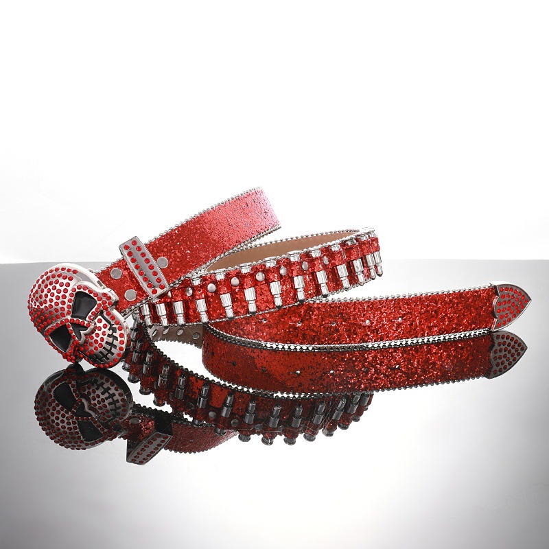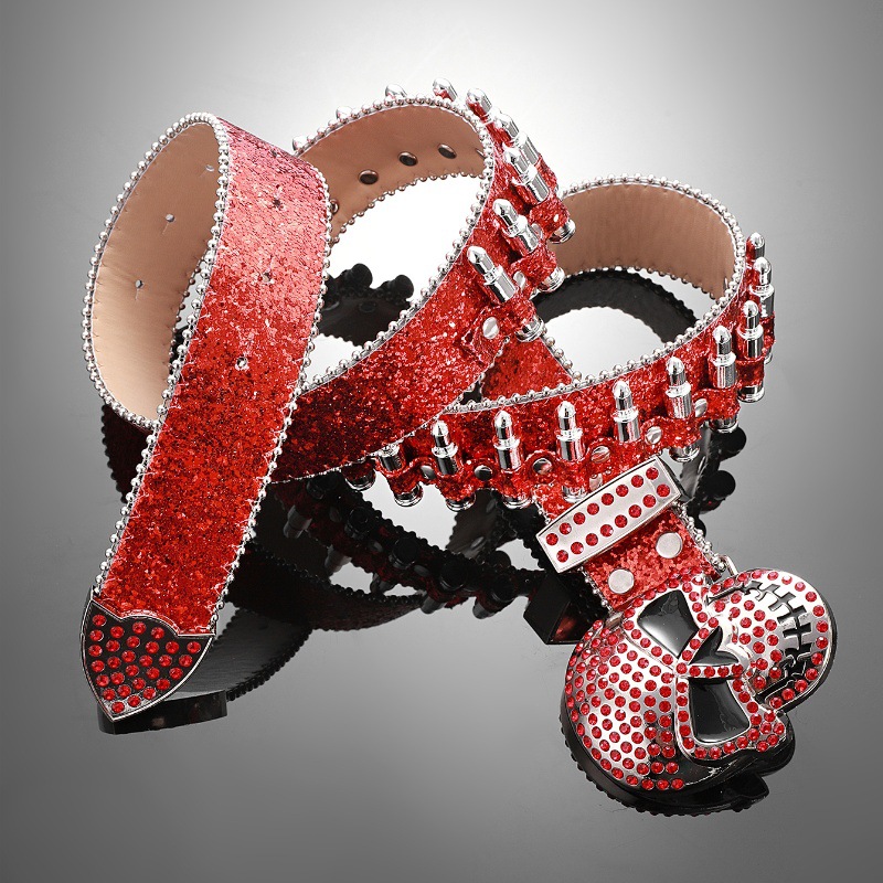 Cross-border sabuk payet untuk pria dan wanita, bertatahkan berlian imitasi peluru payet baru gesper hip hop punk jalanan angin