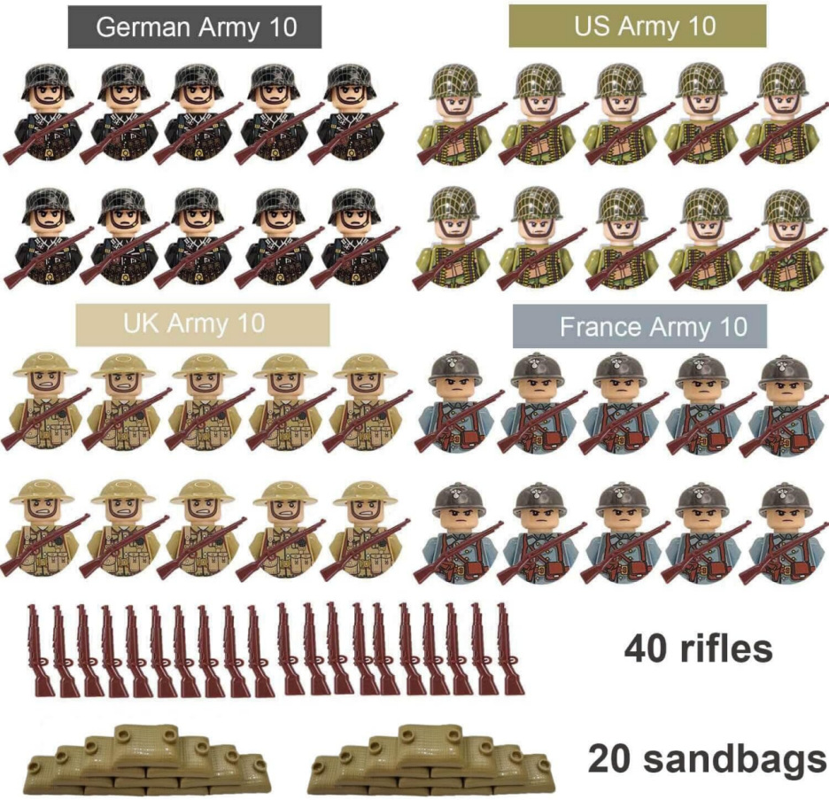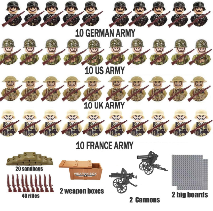 Blok Bangunan Lintas Batas Set Boneka Perang Dunia II Koleksi Seri Militer Senjata Karung Pasir Blok Bangunan Mainan Anak-anak Khusus untuk Perdagangan Luar Negeri