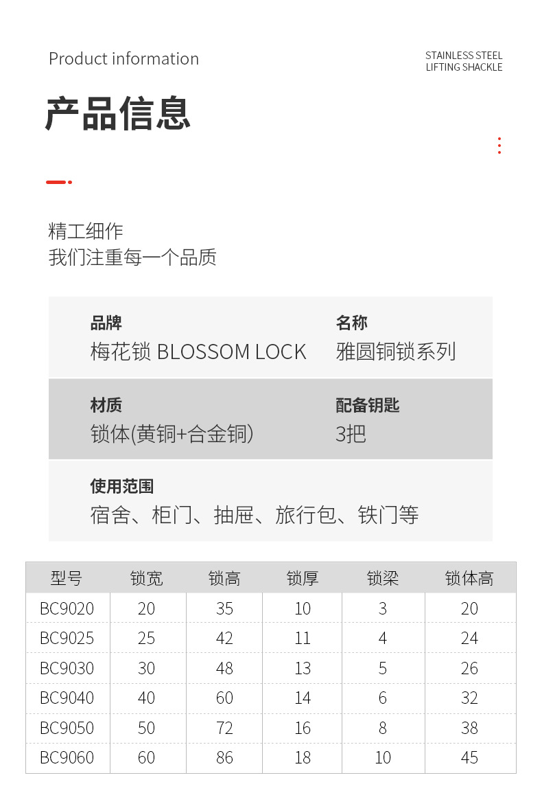 『材质』 :锁体(黄铜+合金钢)