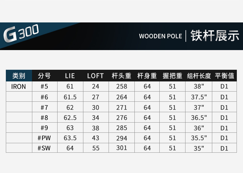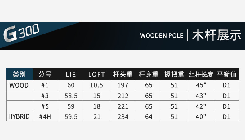 | 名 称 | G300系列男士套杆 | 规 格 | 左/右手12支+球包 | |