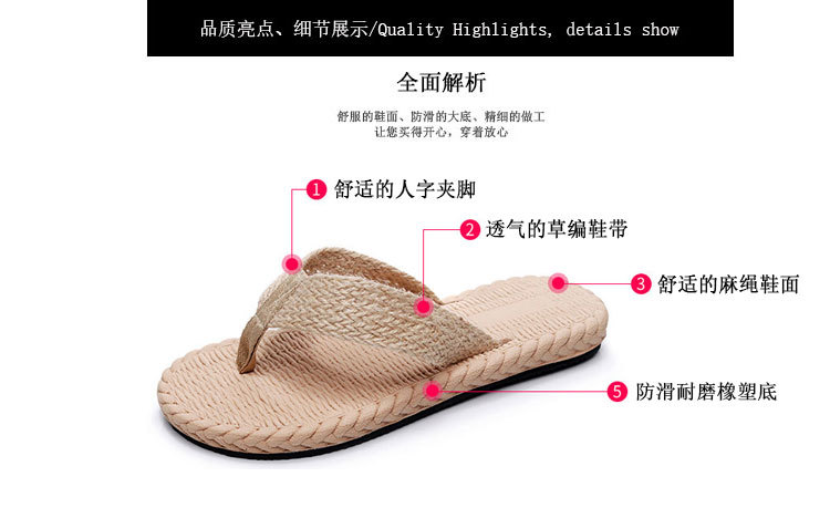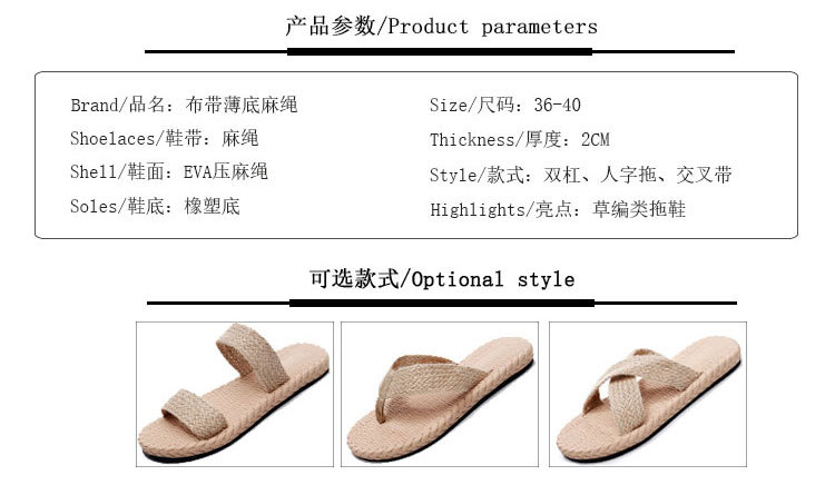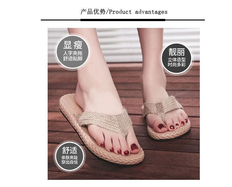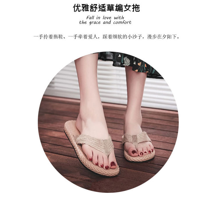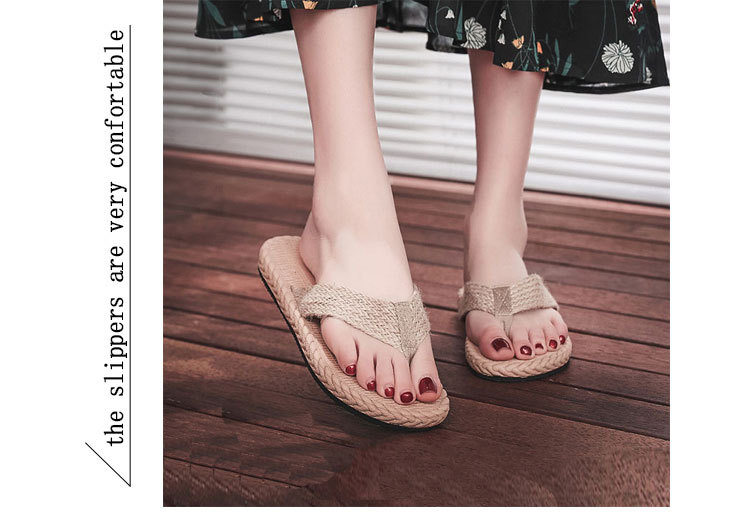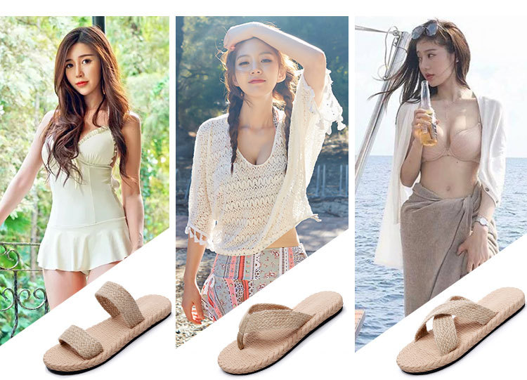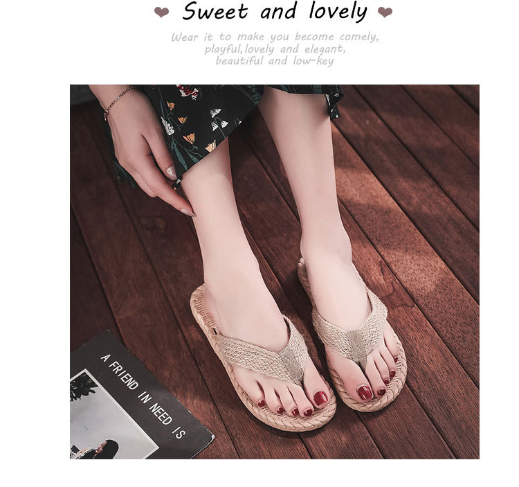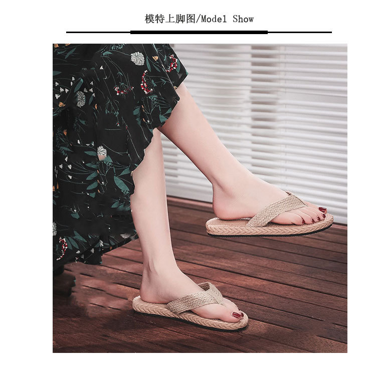 Sandal jerami datar wanita luar ruangan musim panas trendi tali rami sandal jepit non-slip sepatu pantai INS sandal sederhana