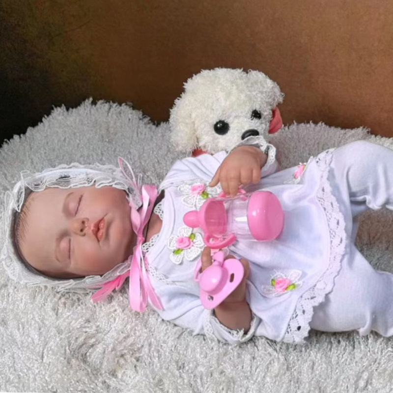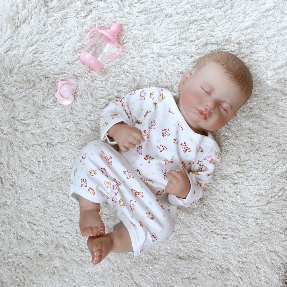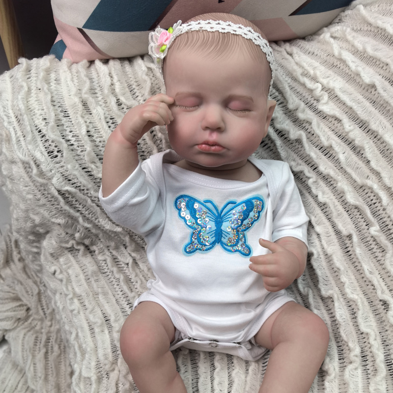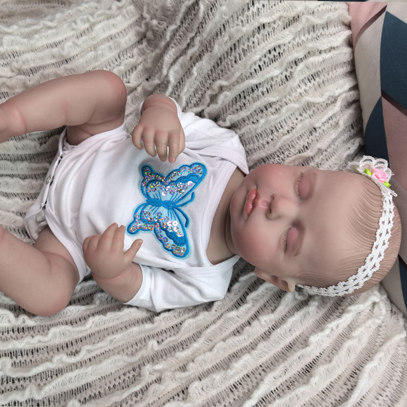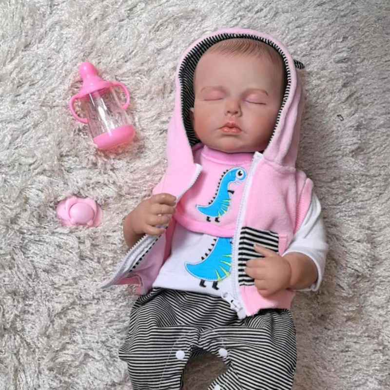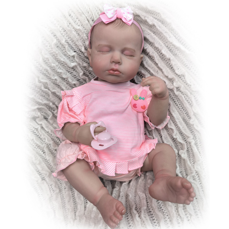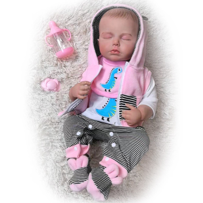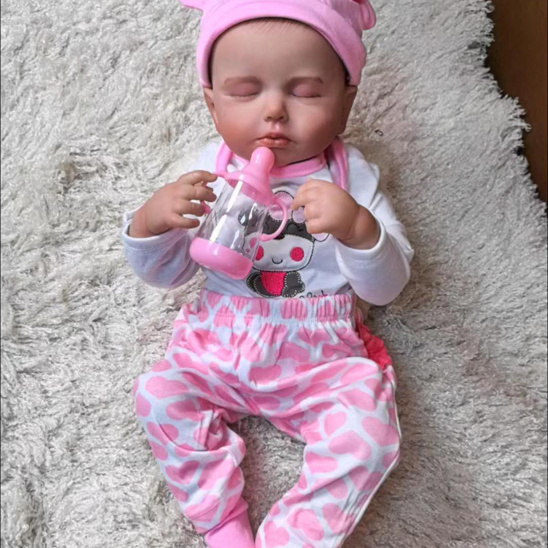 Boneka reborn lembut vinil 20 inci, mainan boneka penutup mata dicat 3D Super realistis