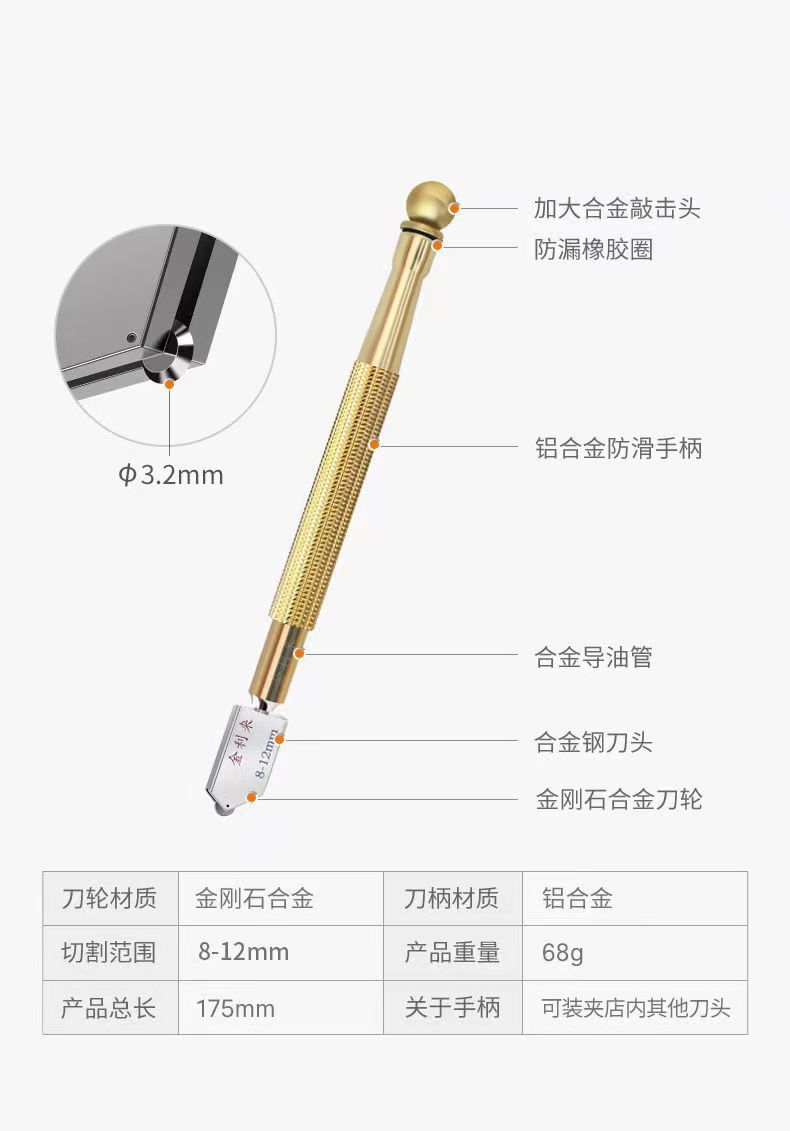 适用金利来玻璃刀家用进口金刚石划厚切割玻璃瓷砖镜子多功能手动