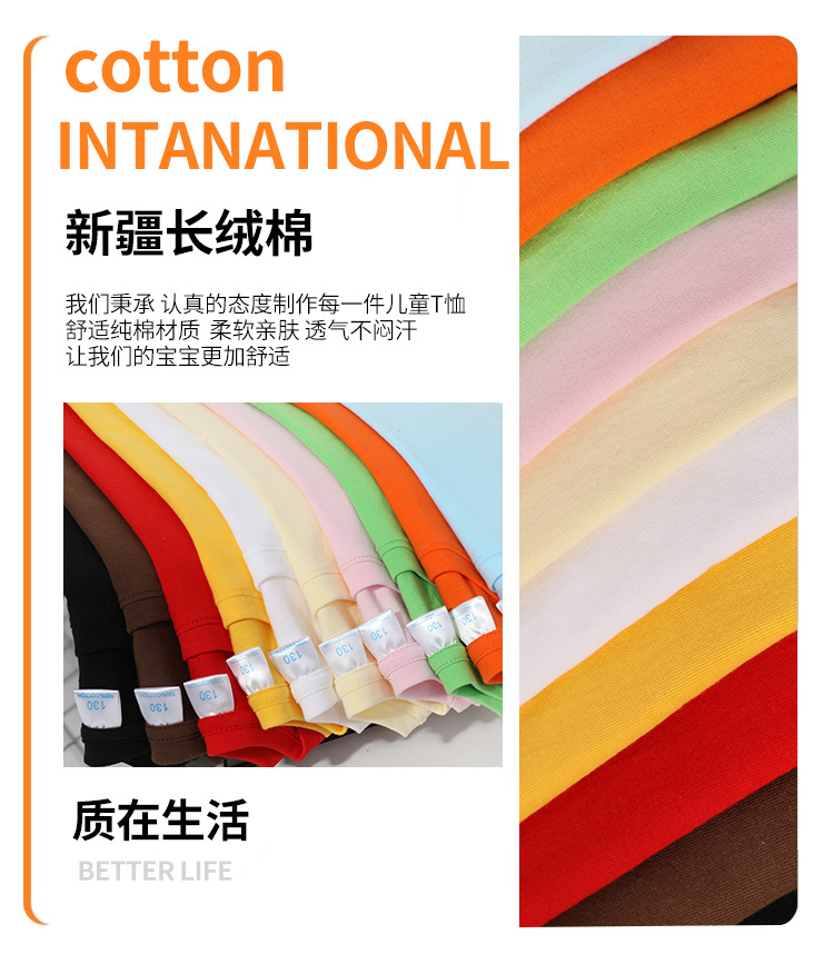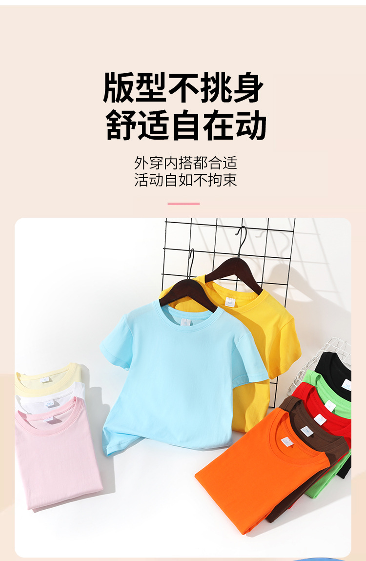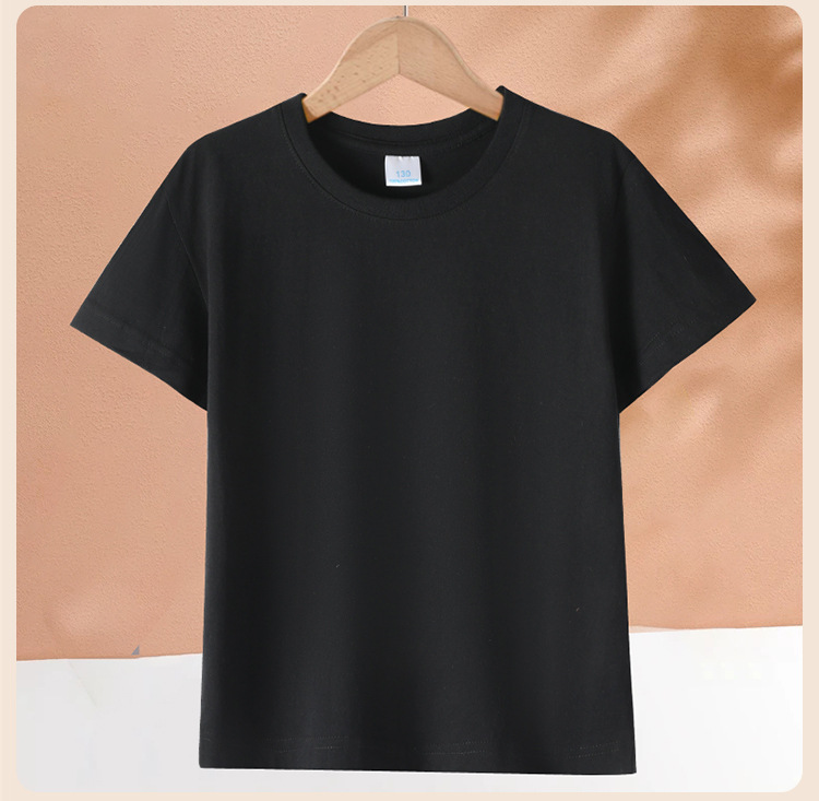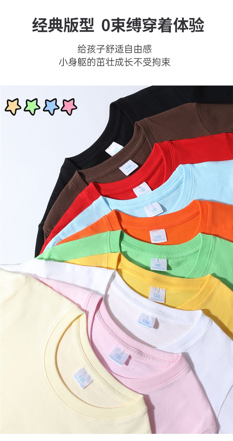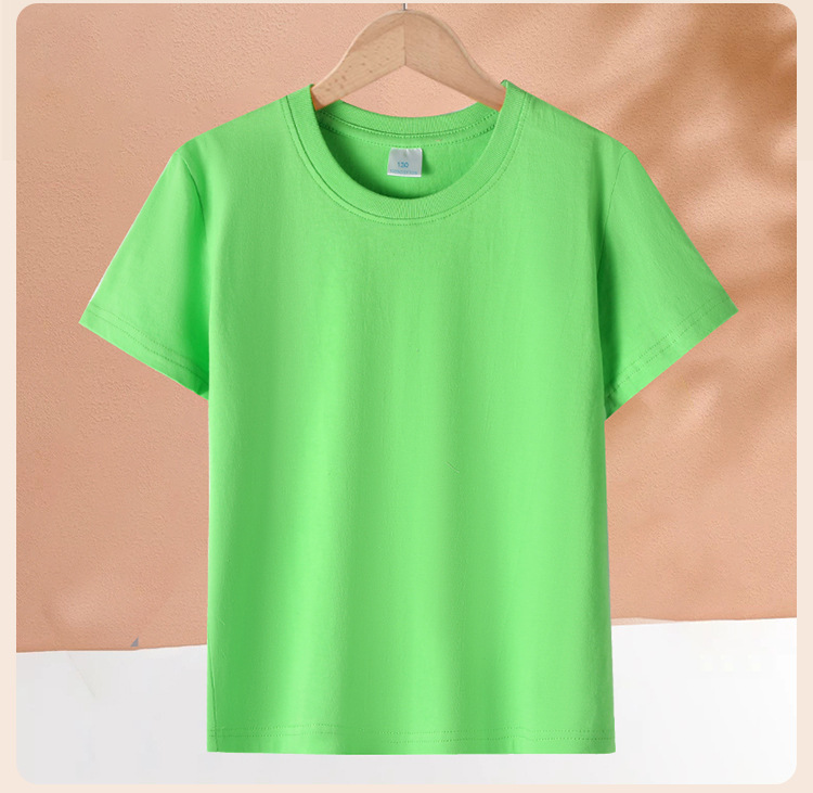 Kaos anak lengan pendek model 2026, katun murni, unisex, warna polos gaya dasar, kaos leher bulat, seragam kelas, pakaian aktivitas, grosir.