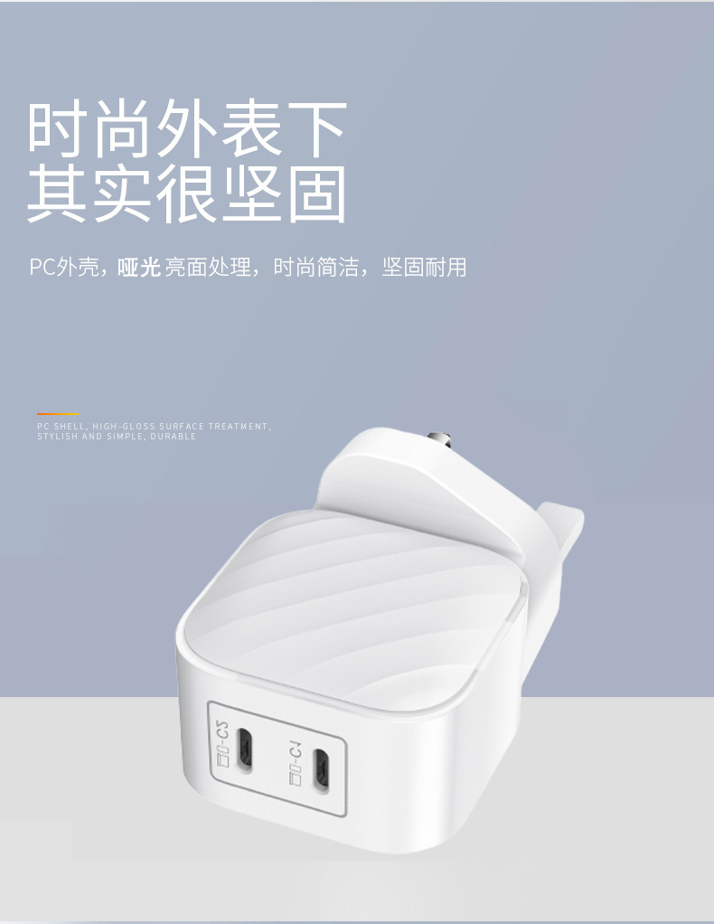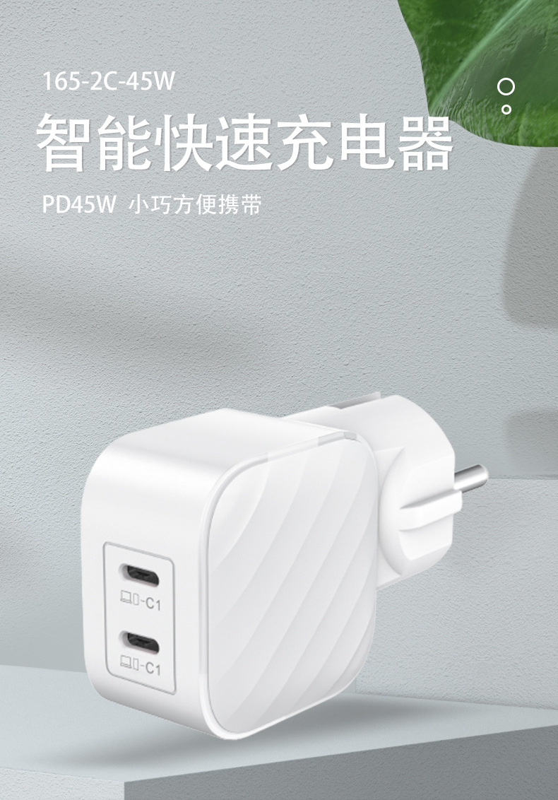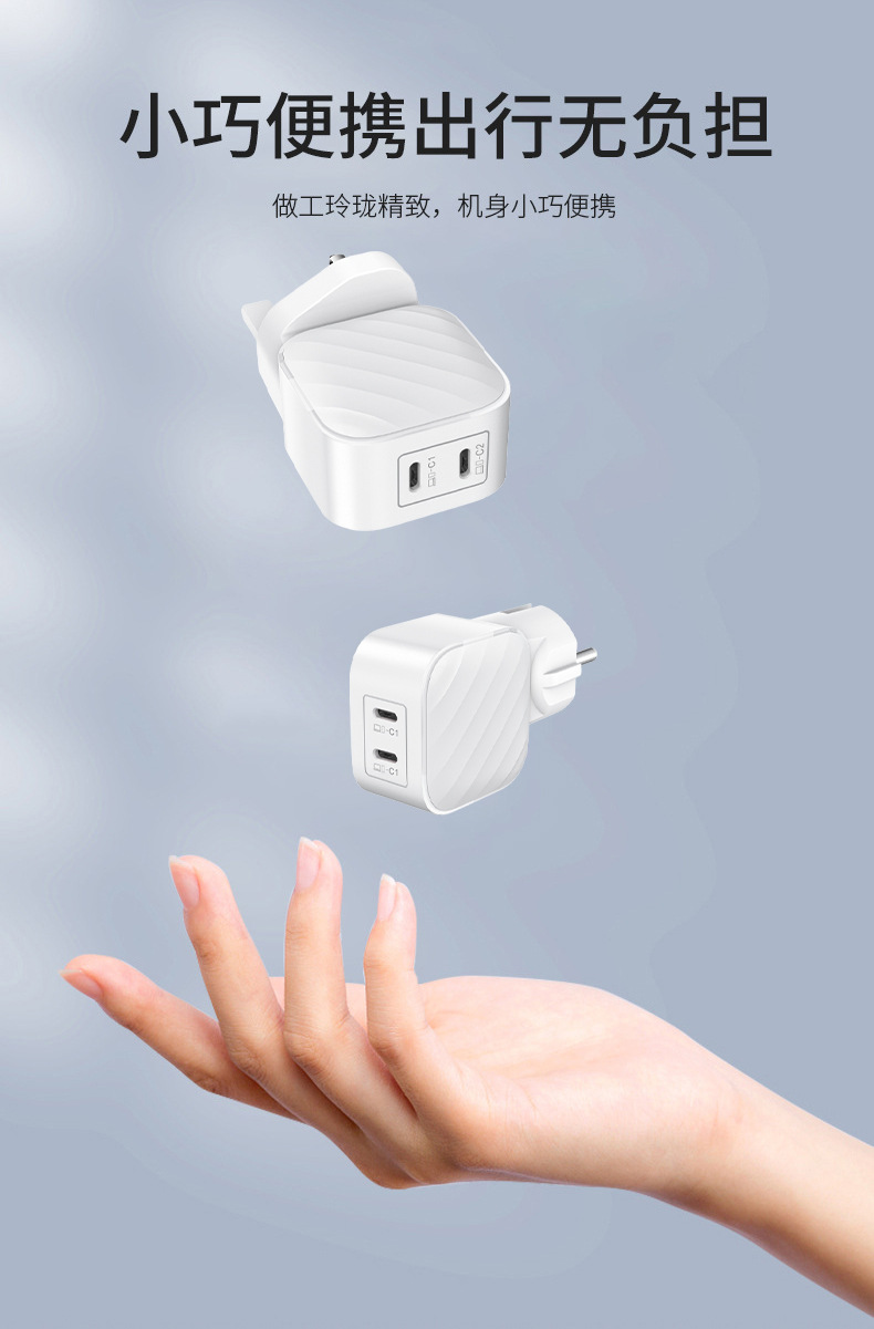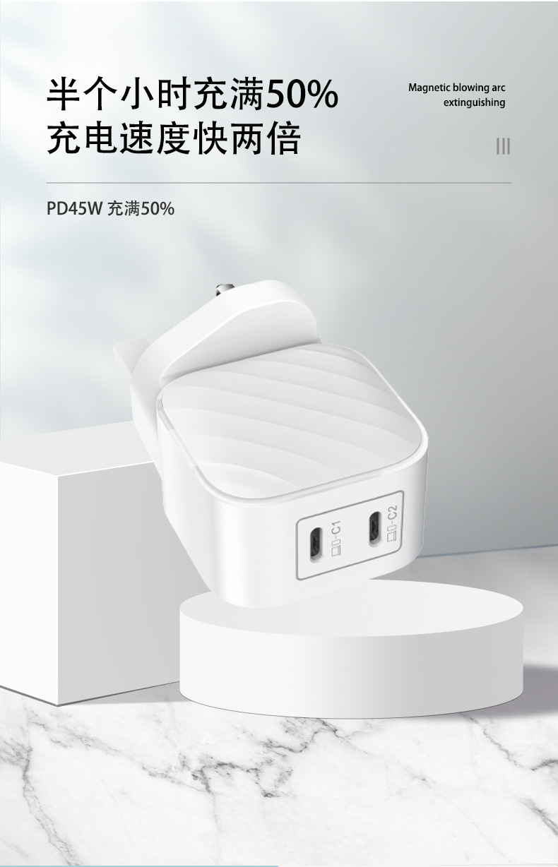 Pengisi daya Cepat GaN gallium nitrida, port C ganda 45W, pengisi daya cepat cocok untuk semua model di seluruh dunia