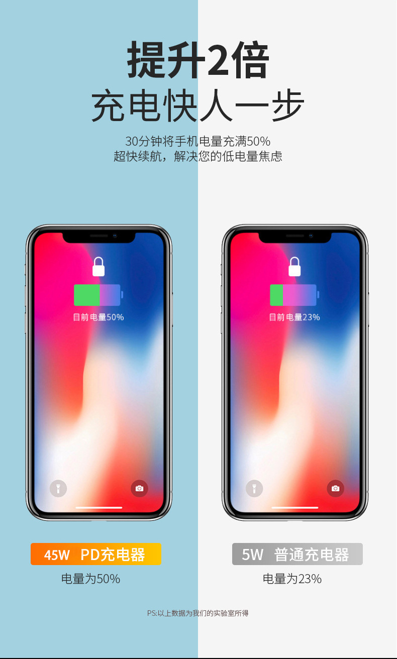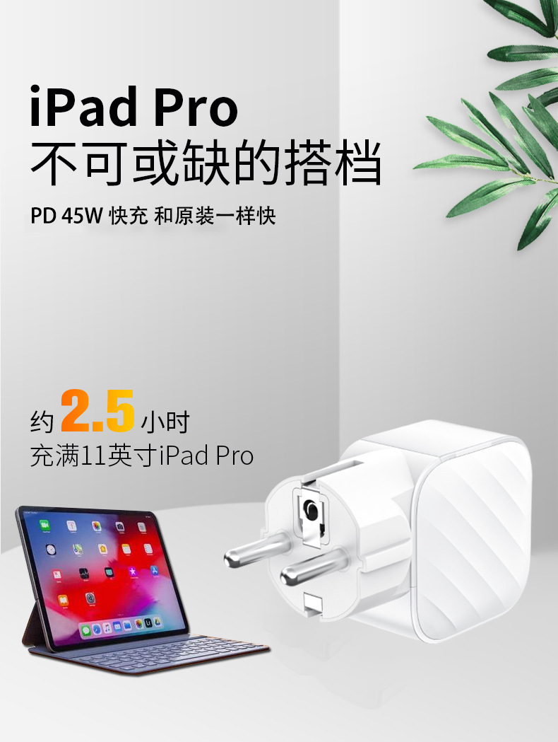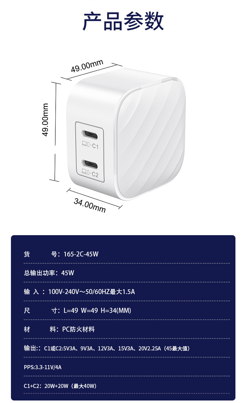 Pengisi daya Cepat GaN gallium nitrida, port C ganda 45W, pengisi daya cepat cocok untuk semua model di seluruh dunia