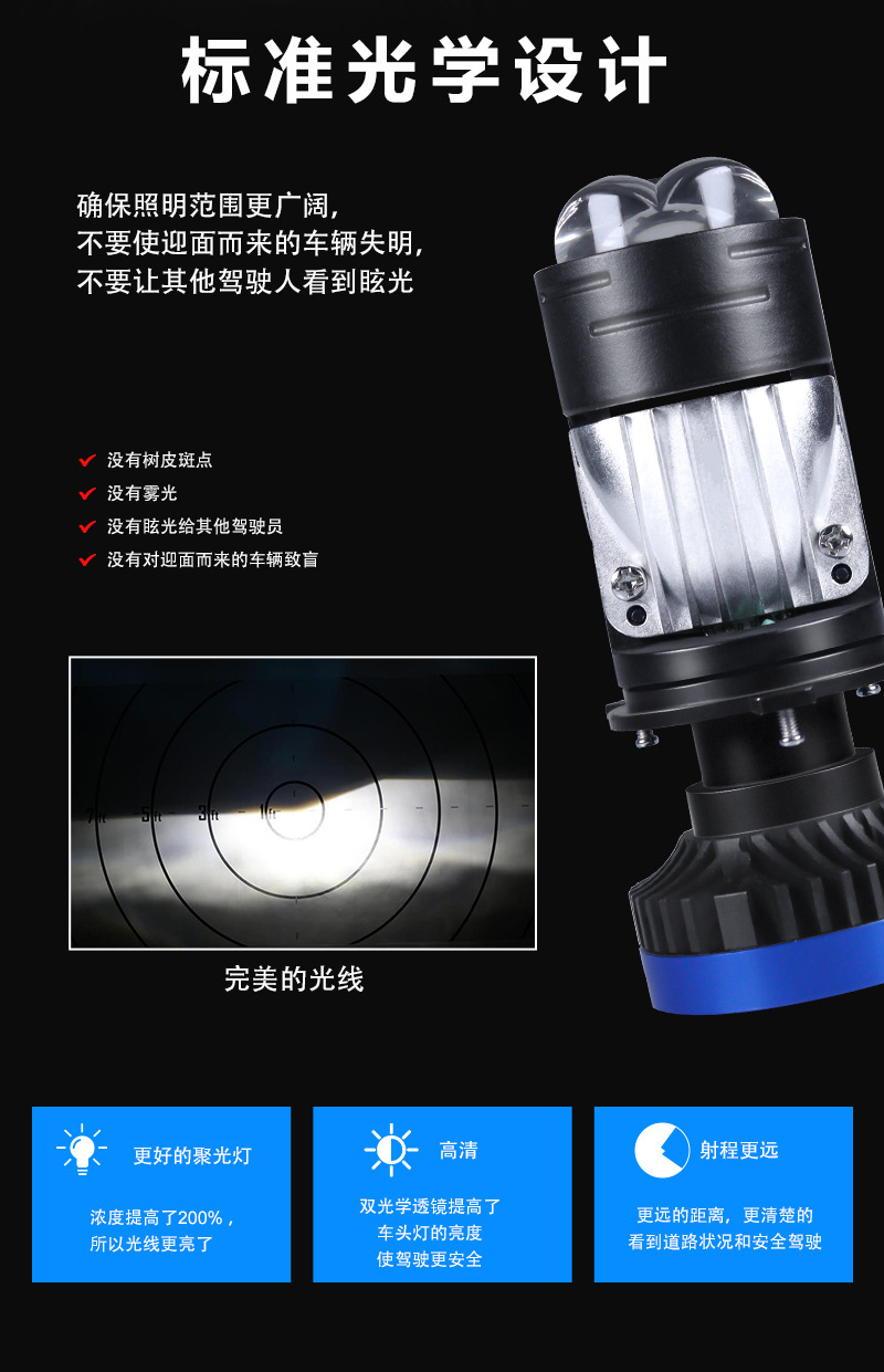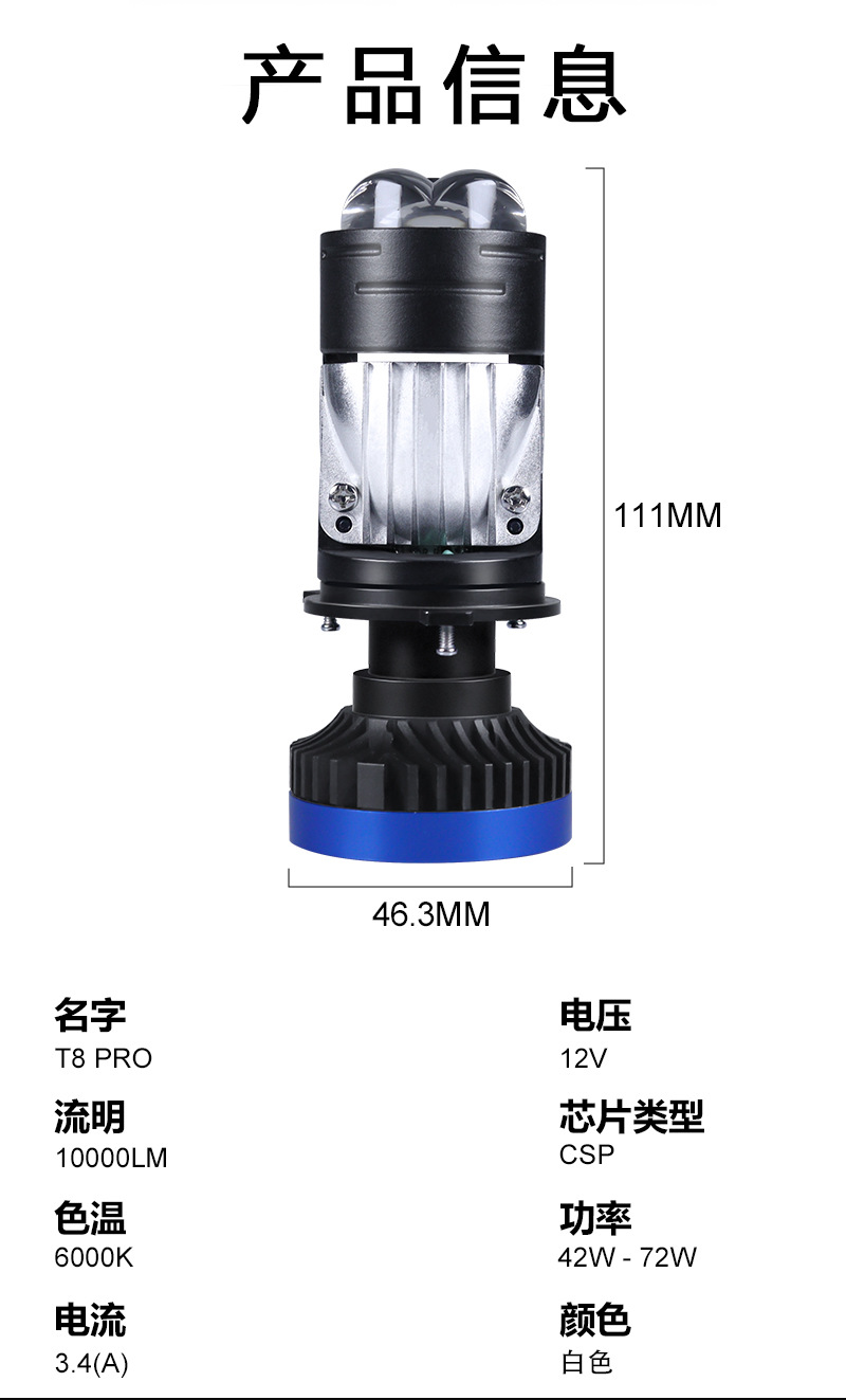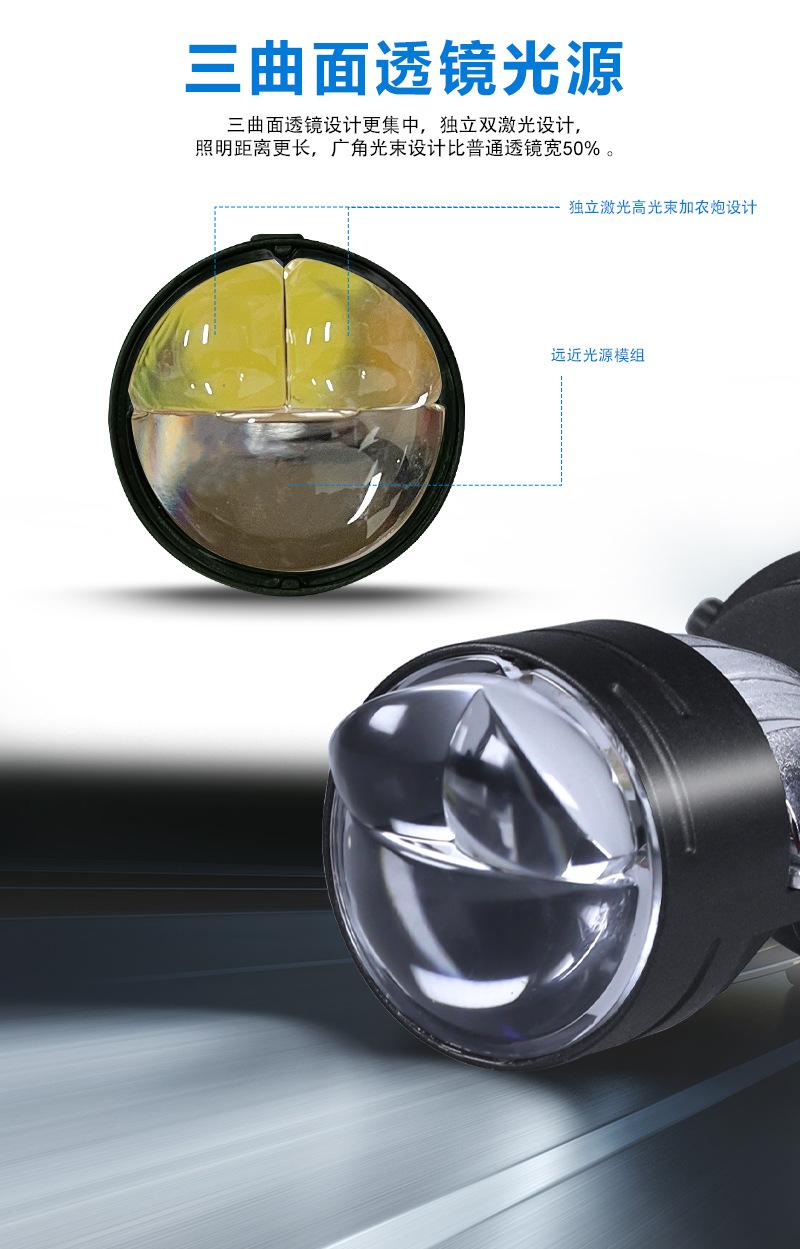 Lampu mata ikan laser ganda led, lampu depan mobil lensa T8 h4led, lampu sorot sepeda motor, lampu depan lensa cahaya ganda